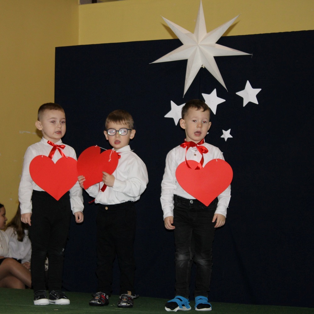 Z tej okazji przedszkolaki oraz dzieci z klas młodszych przygotowały wzruszające wiersze i piosenki, pełne ciepła i miłości, które wywołały uśmiechy na twarzach wszystkich zebranych. Starsi uczniowie przypomnieli magiczny klimat świąt, prezentując pełne radości jasełka przy pięknych dźwiękach kolęd.