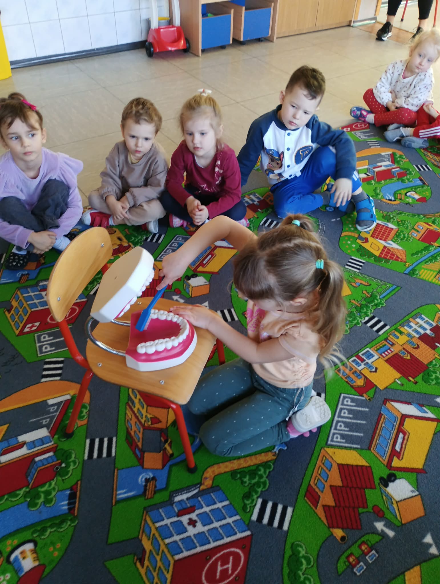 5 marca naszym przedszkolu obchodziliśmy Dzień Dentysty! To była świetna okazja, aby bliżej poznać ten bardzo ważny zawód. Podczas zajęć przedszkolaki dowiedziały się, kim jest dentysta i na czym polega jego praca. Dzieci rozmawiały także o tym, dlaczego tak ważne jest dbanie o zęby i całą jamę ustną oraz jak często powinniśmy kontrolować nasze ząbki. Przedszkolaki i przekonały się, że wizyta u stomatologa wcale nie musi być straszna, a regularne sprawdzanie ząbków jest bardzo ważne. Wychowawczynie pokazały dzieciom, jak prawidłowo myć zęby, aby były zdrowe i mocne.
