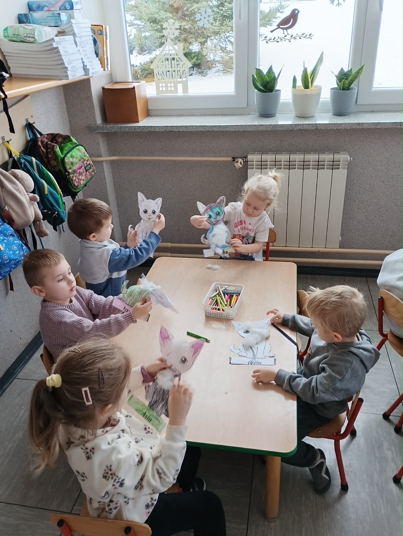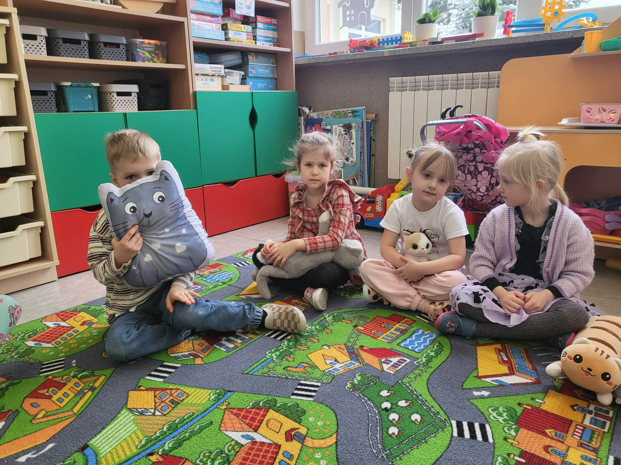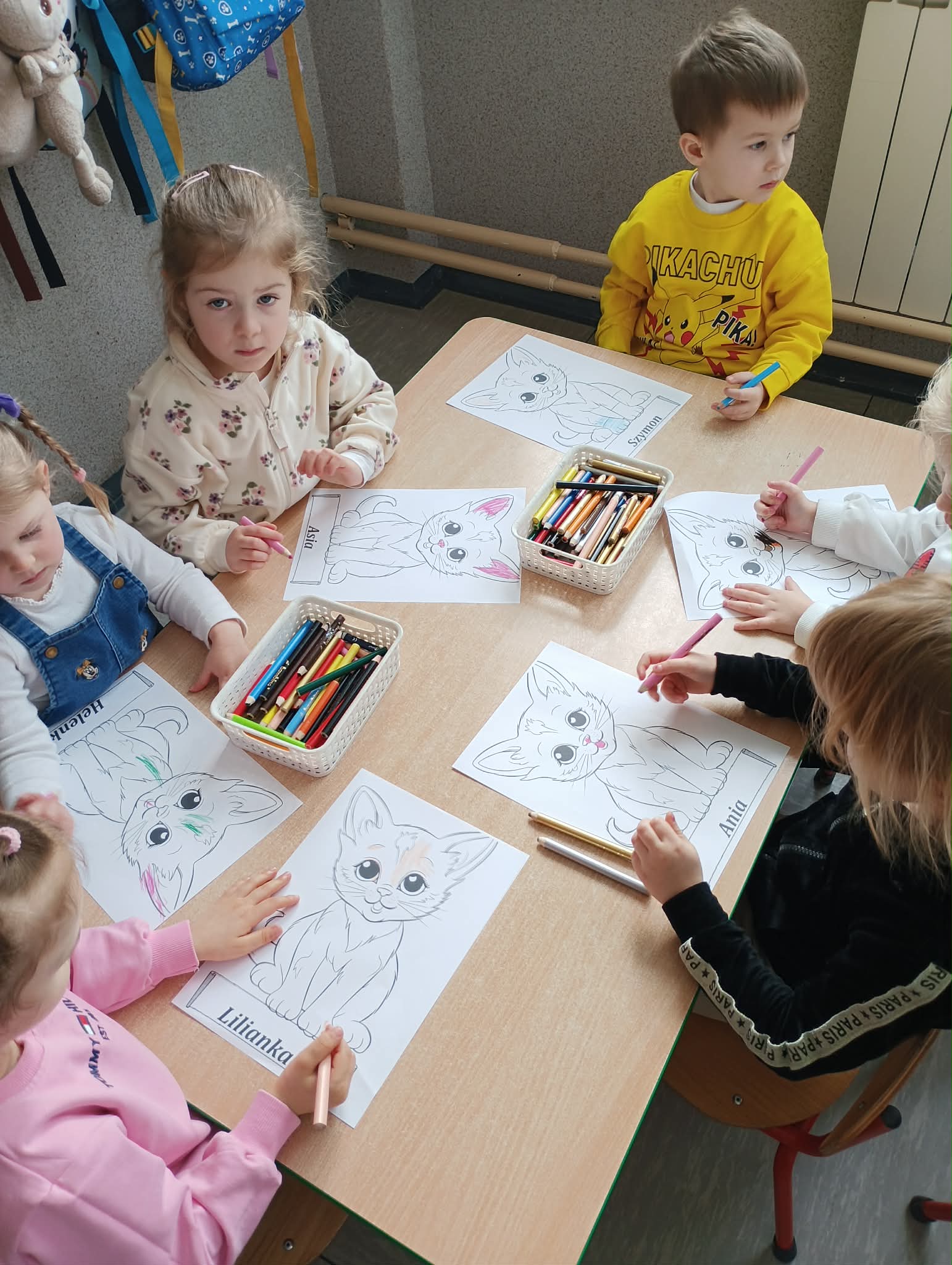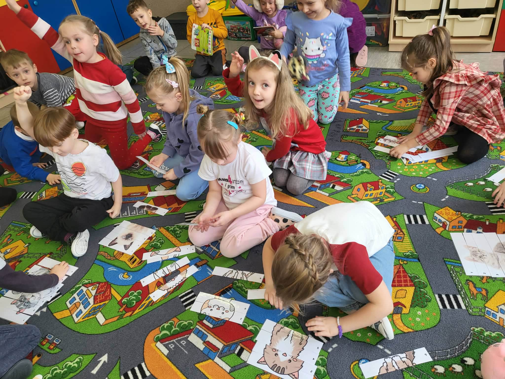 W tym dniu niektóre dzieci przyniosły swoje kotki maskotki. Oprócz zabaw muzyczno-ruchowych do piosenek o kotach, kociej gimnastyki, przedszkolaki obejrzały także film edukacyjny o kotach, podczas którego poznały kocie zwyczaje, ciekawostki oraz najbardziej znane rasy kotów. Dzieci swoją wiedzę uporządkowały podczas wykonania plakatu związanego z kocimi zwyczajami. Każda grupa tworzyła piękne prace plastyczne, gdzie głównym bohaterem był oczywiście kot – ulubieniec wszystkich dzieci.