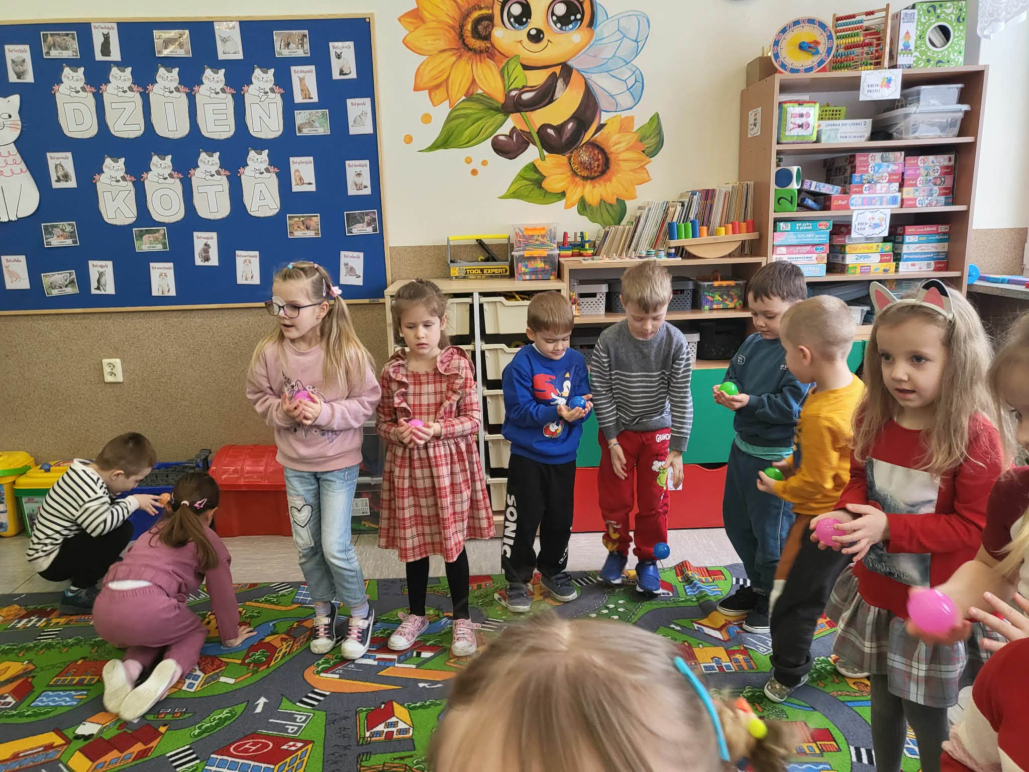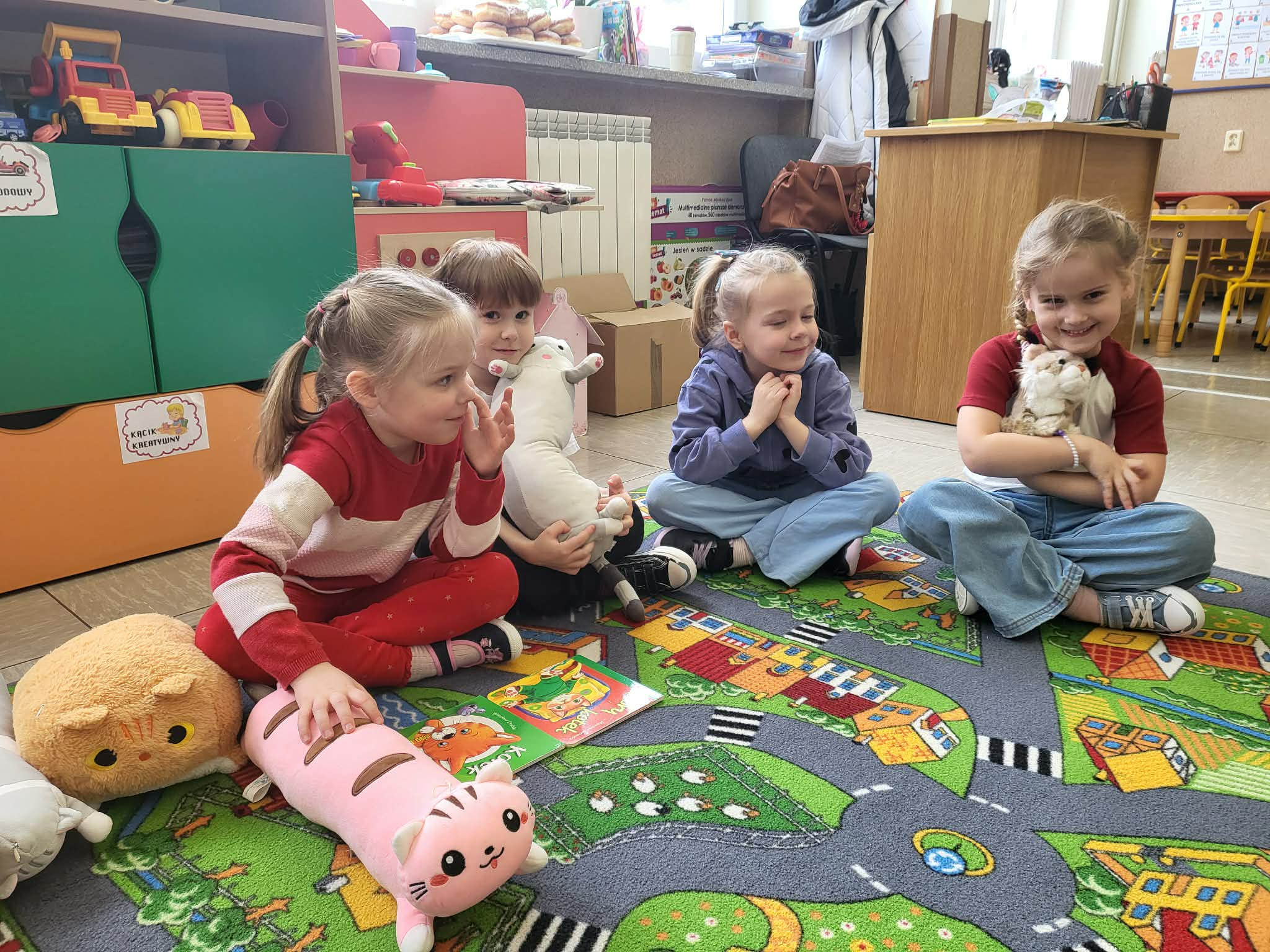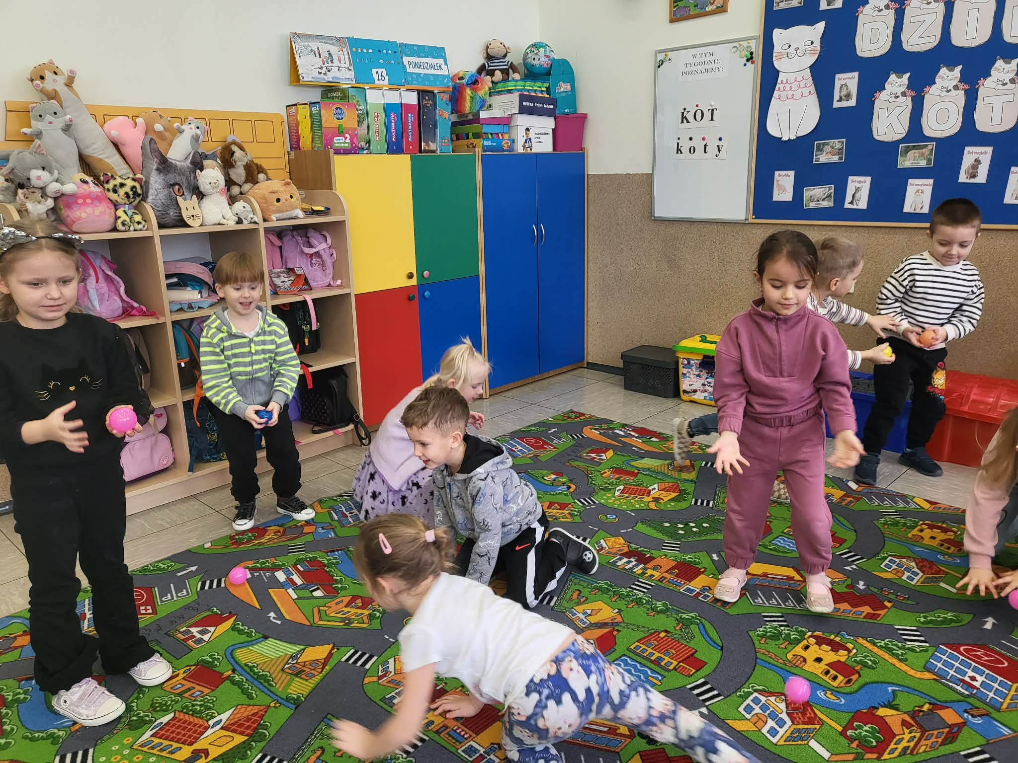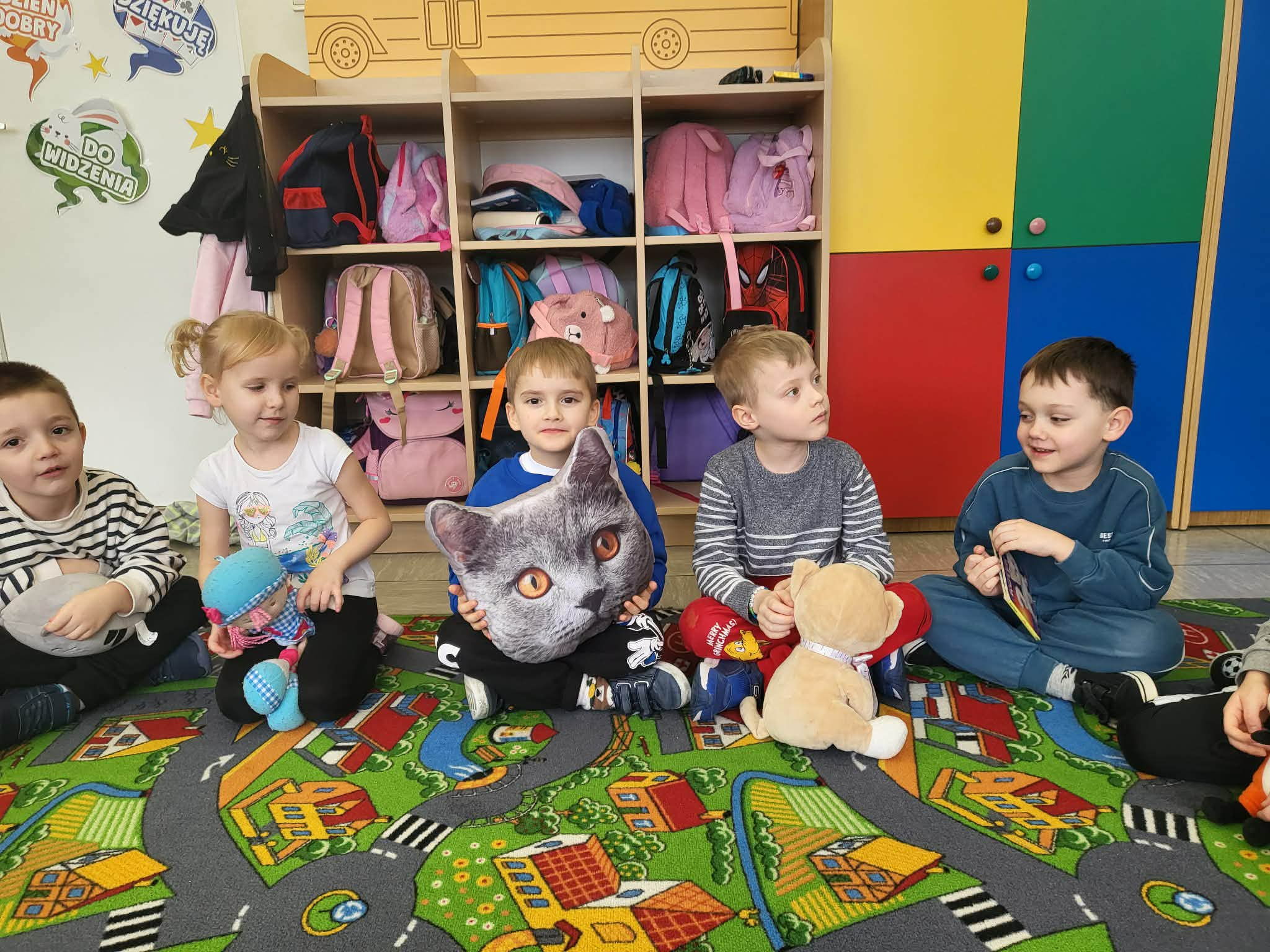 W tym dniu niektóre dzieci przyniosły swoje kotki maskotki. Oprócz zabaw muzyczno-ruchowych do piosenek o kotach, kociej gimnastyki, przedszkolaki obejrzały także film edukacyjny o kotach, podczas którego poznały kocie zwyczaje, ciekawostki oraz najbardziej znane rasy kotów. Dzieci swoją wiedzę uporządkowały podczas wykonania plakatu związanego z kocimi zwyczajami. Każda grupa tworzyła piękne prace plastyczne, gdzie głównym bohaterem był oczywiście kot – ulubieniec wszystkich dzieci.