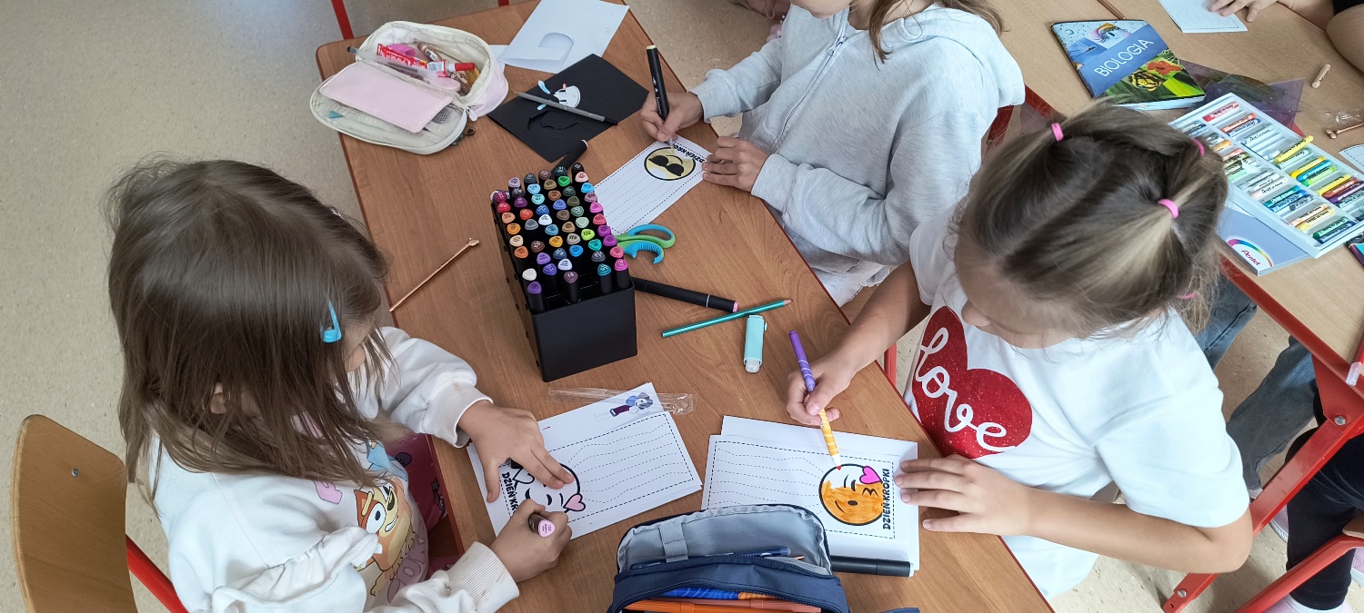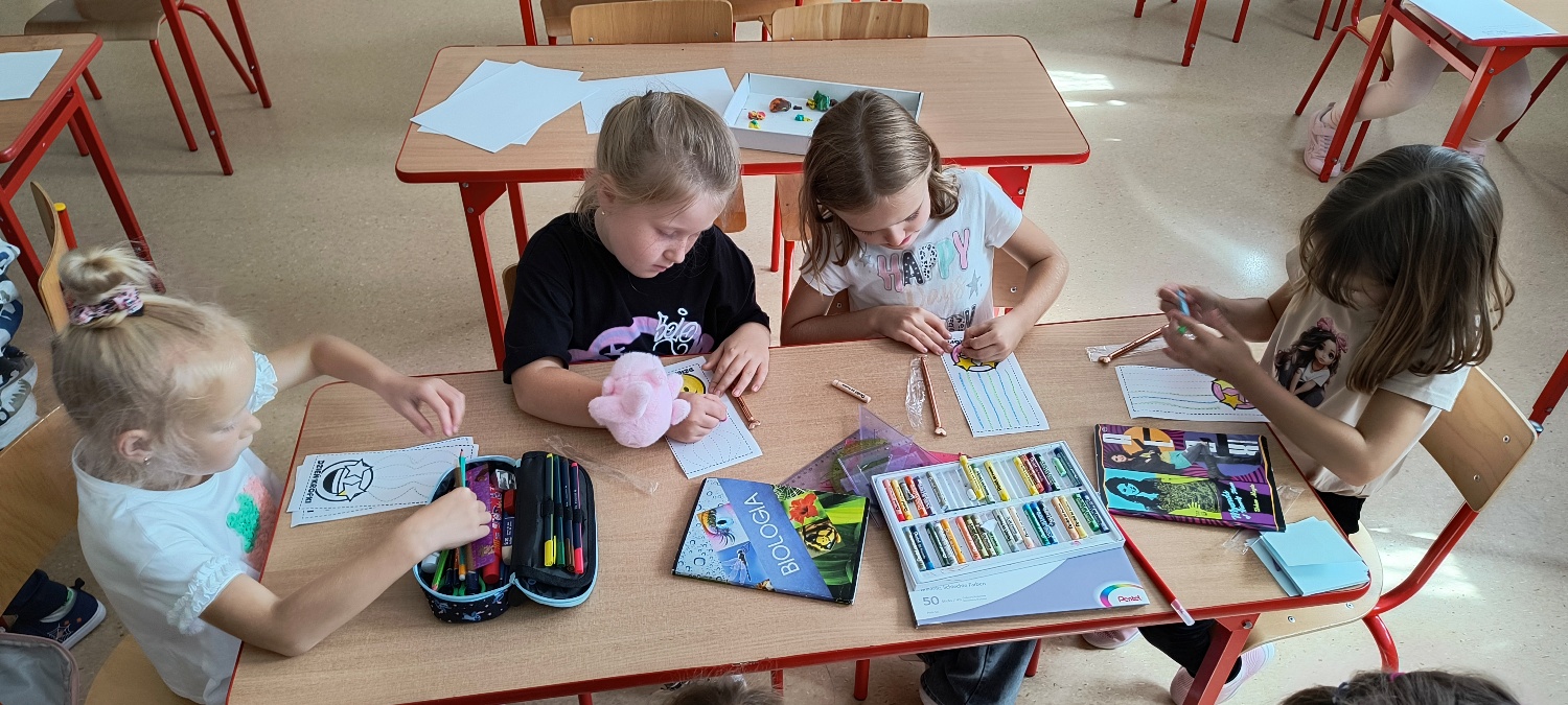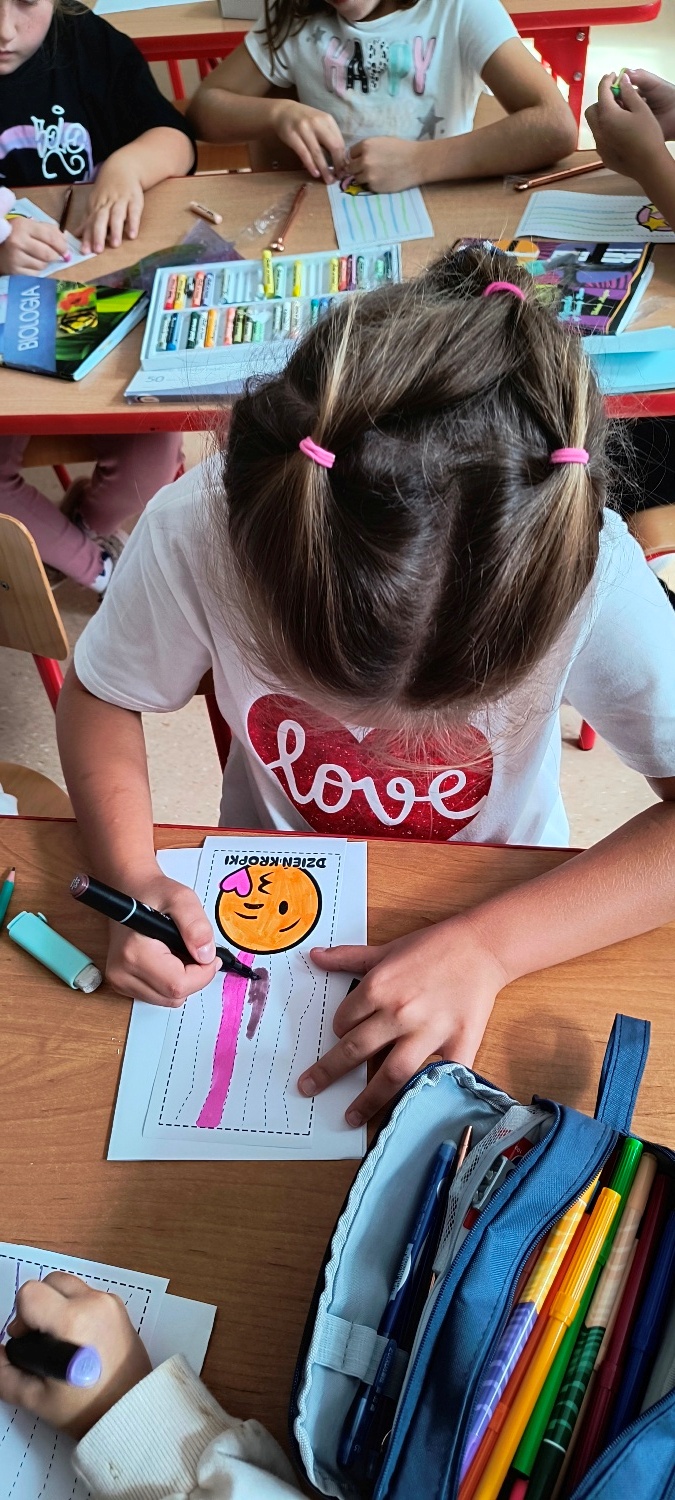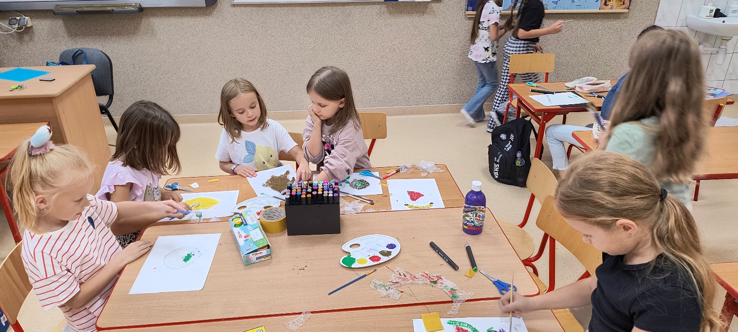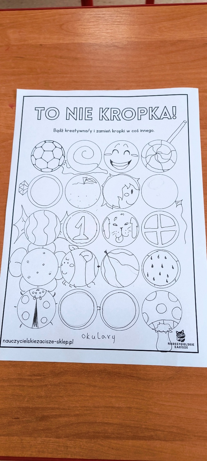 W poniedziałek 15 września w świetlicy szkolnej obchodziliśmy Dzień Kropki. Uczniowie poznali historię Vahsti – dziewczynki, która nie wierzyła we własne możliwości, a dzięki swojej nauczycielce odkryła talent do malowania. Historia ta była okazją do rozmowy na temat talentów i indywidualnych możliwości każdego ucznia. Następnie uczniowie podczas różnych aktywności odkrywali swoje ukryte talenty. Wykonali kropkowe fryzury, owoce z folii bąbelkowej, uczestniczyli w zabawach ruchowych z kropką, ćwiczyli spostrzegawczość oraz usprawniali umiejętności motoryczne podczas zabawy sensorycznej z kuleczkami. Udowodnili również, że są bardzo kreatywni i zwykłą kropkę potrafią zamienić w niesamowite rzeczy.