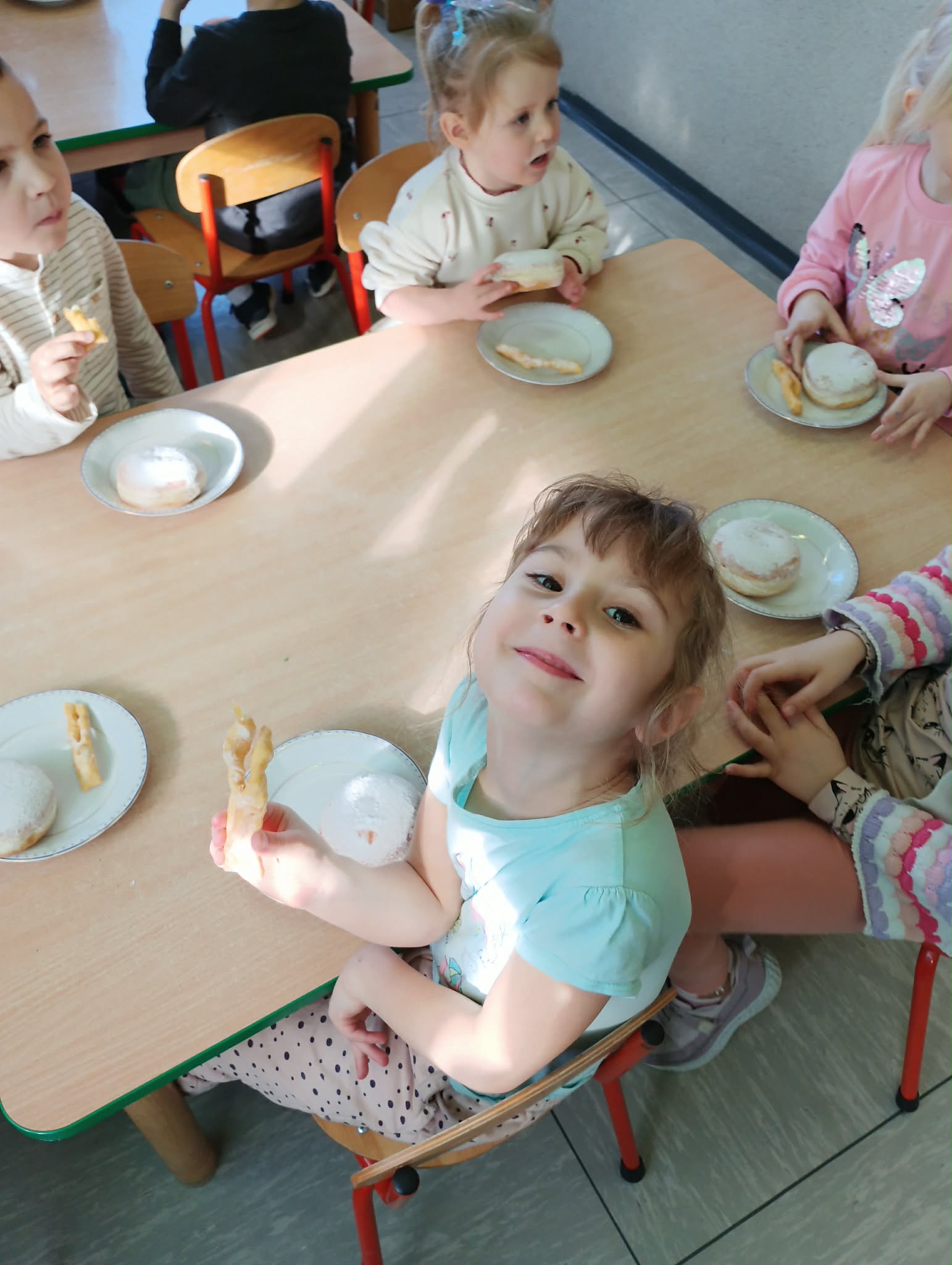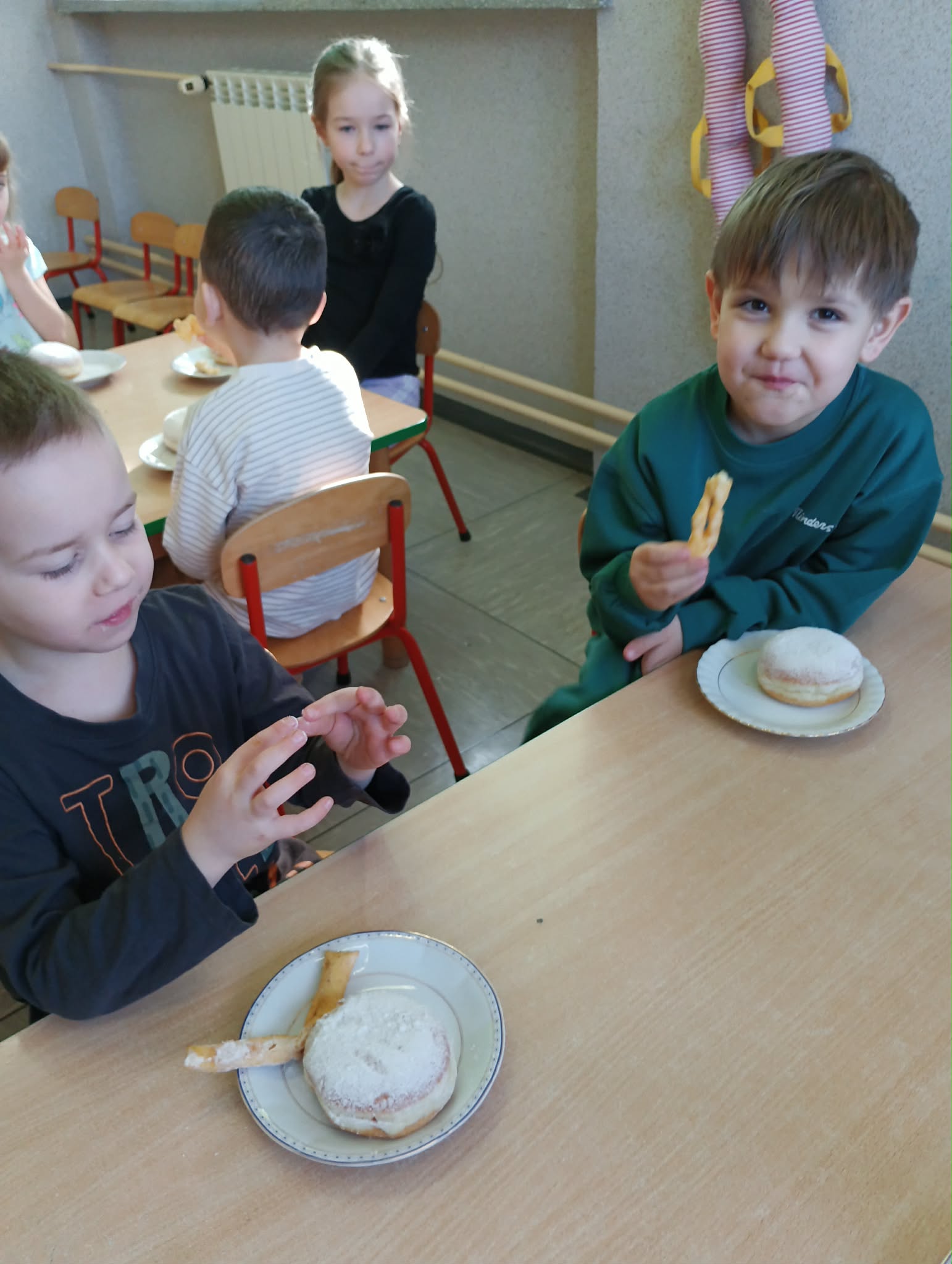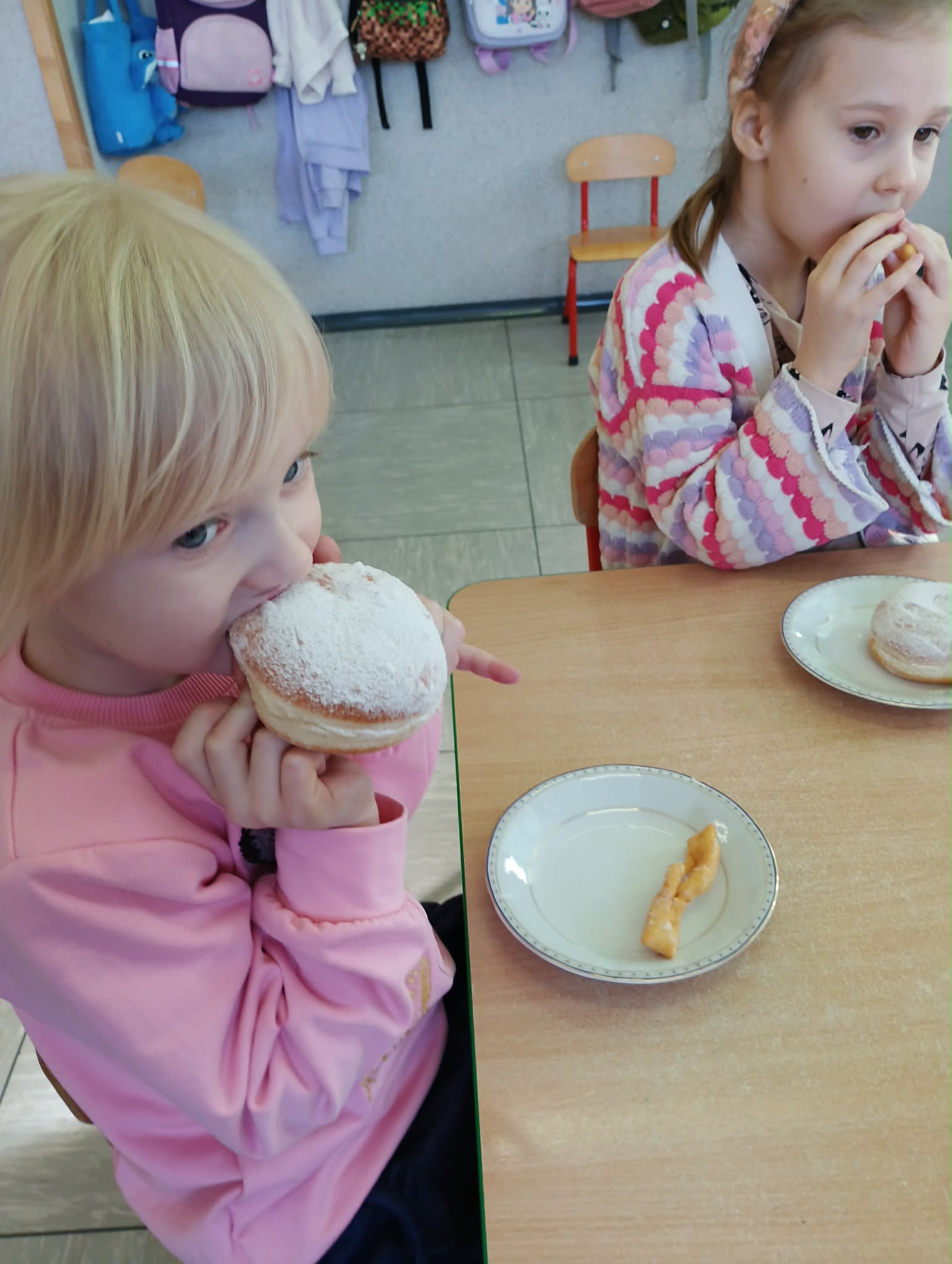 Każde dziecko otrzymało pączka, który zjadany był z wielkim apetytem oraz uśmiechem na buzi.
