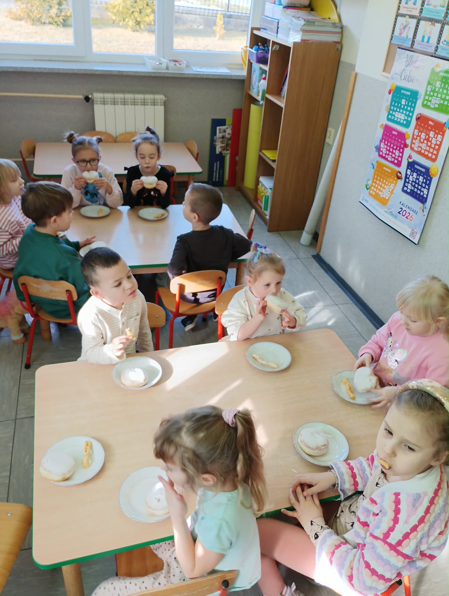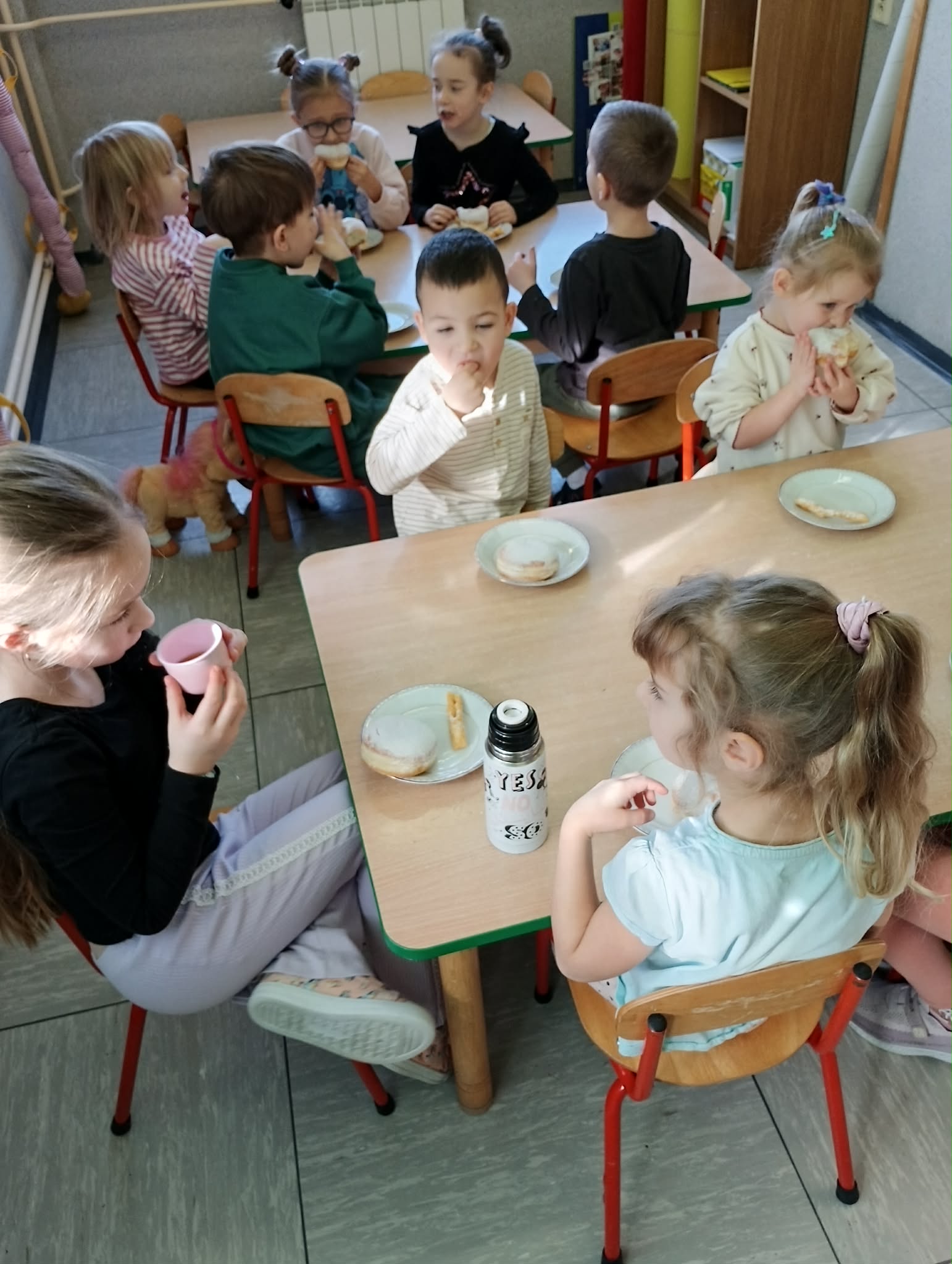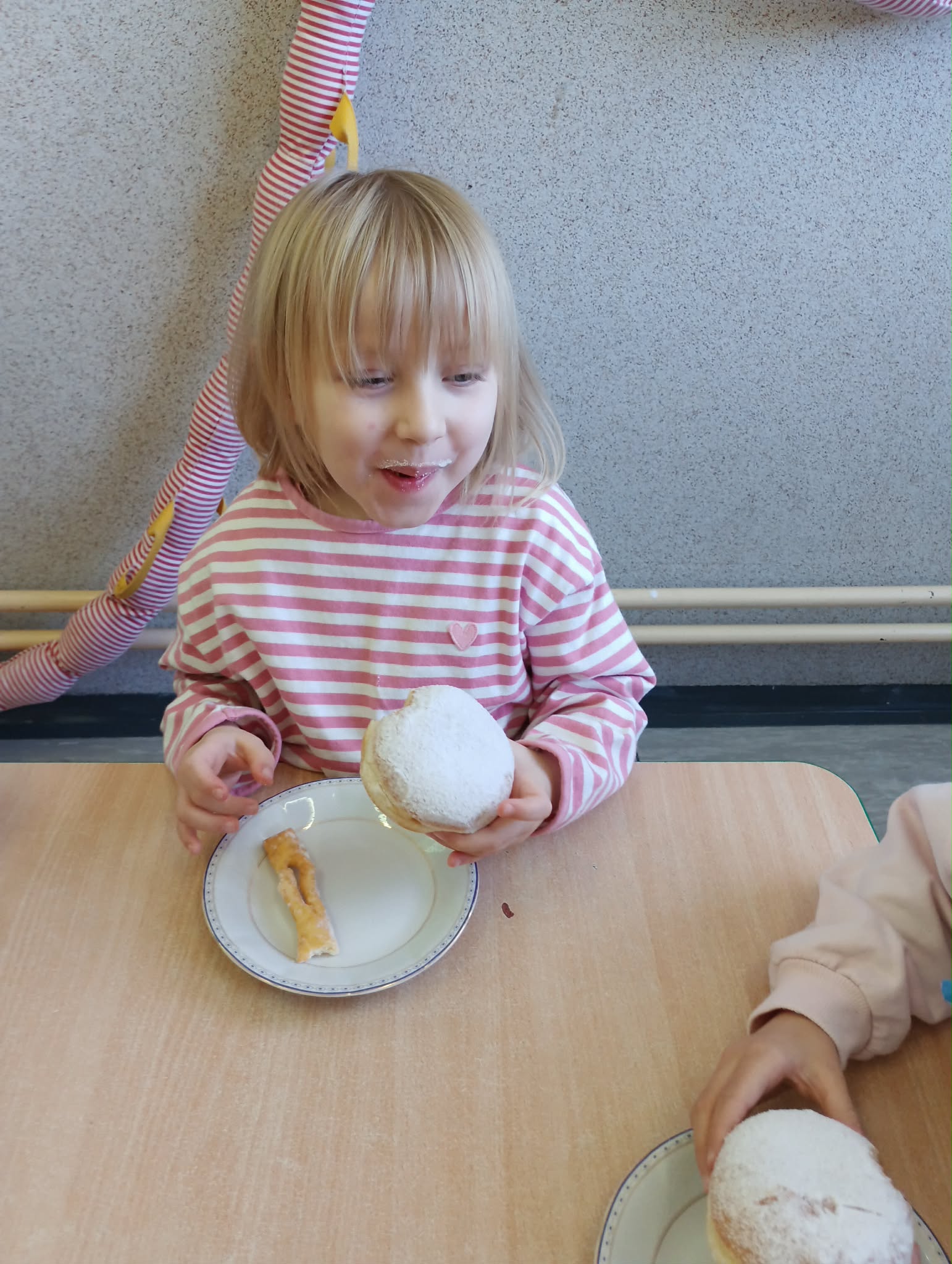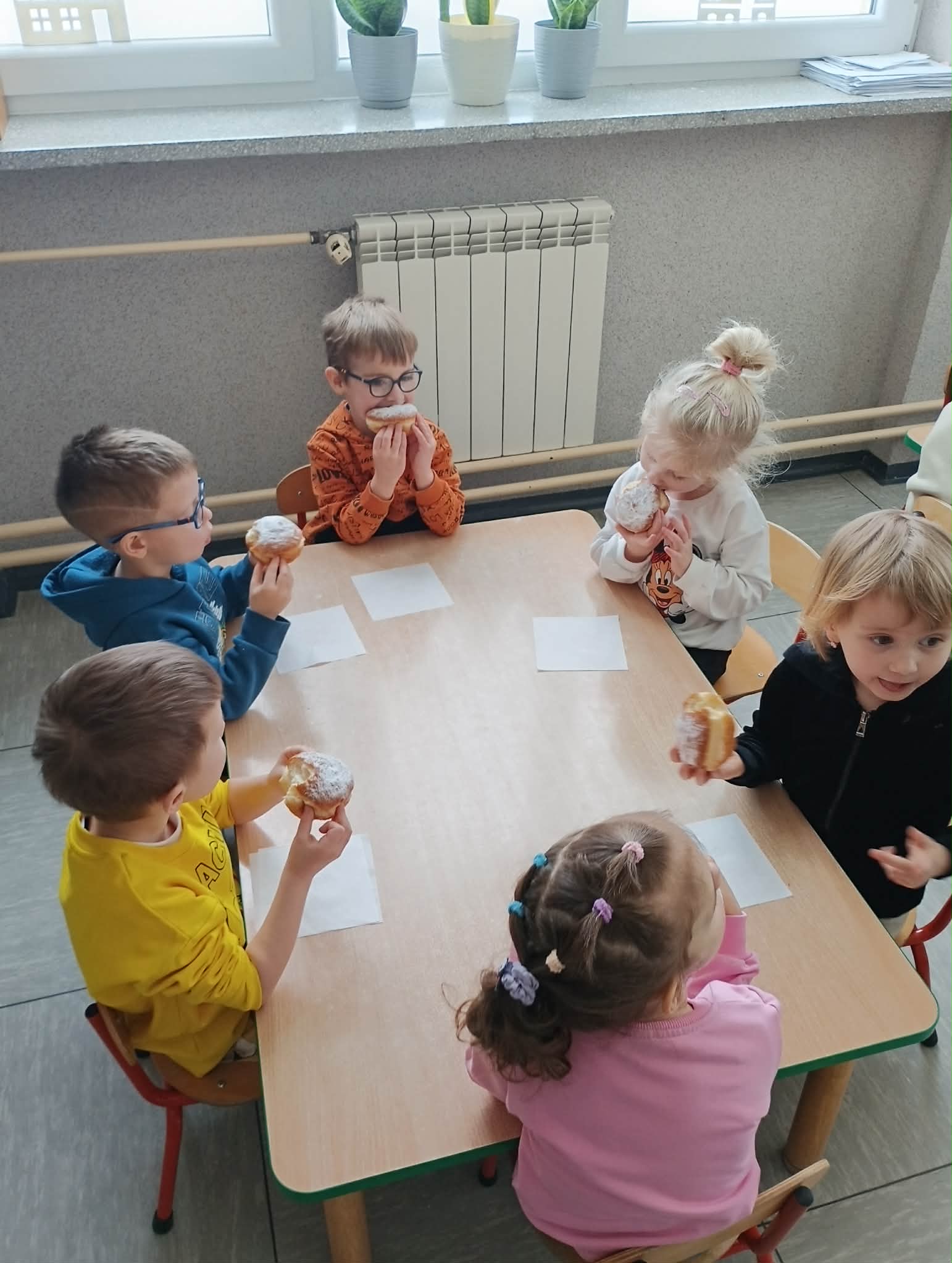 Każde dziecko otrzymało pączka, który zjadany był z wielkim apetytem oraz uśmiechem na buzi.