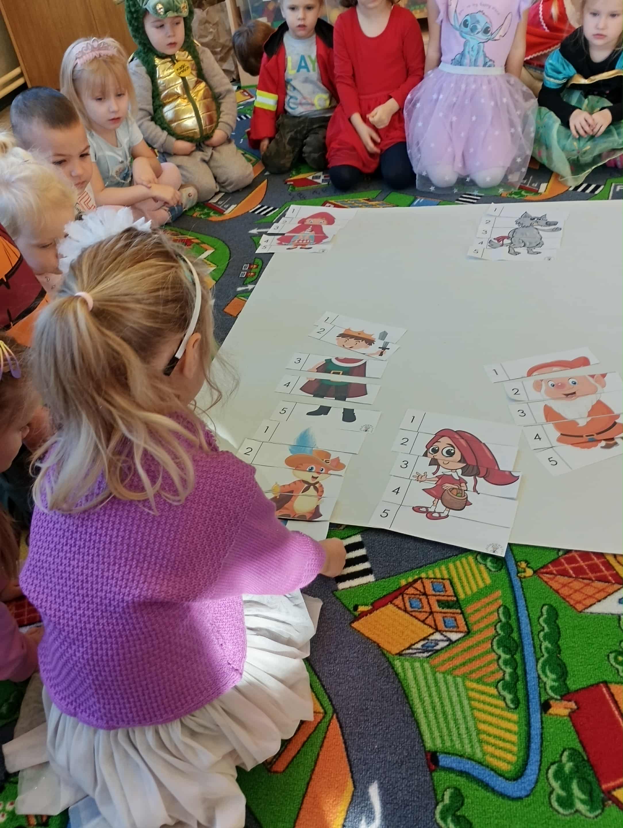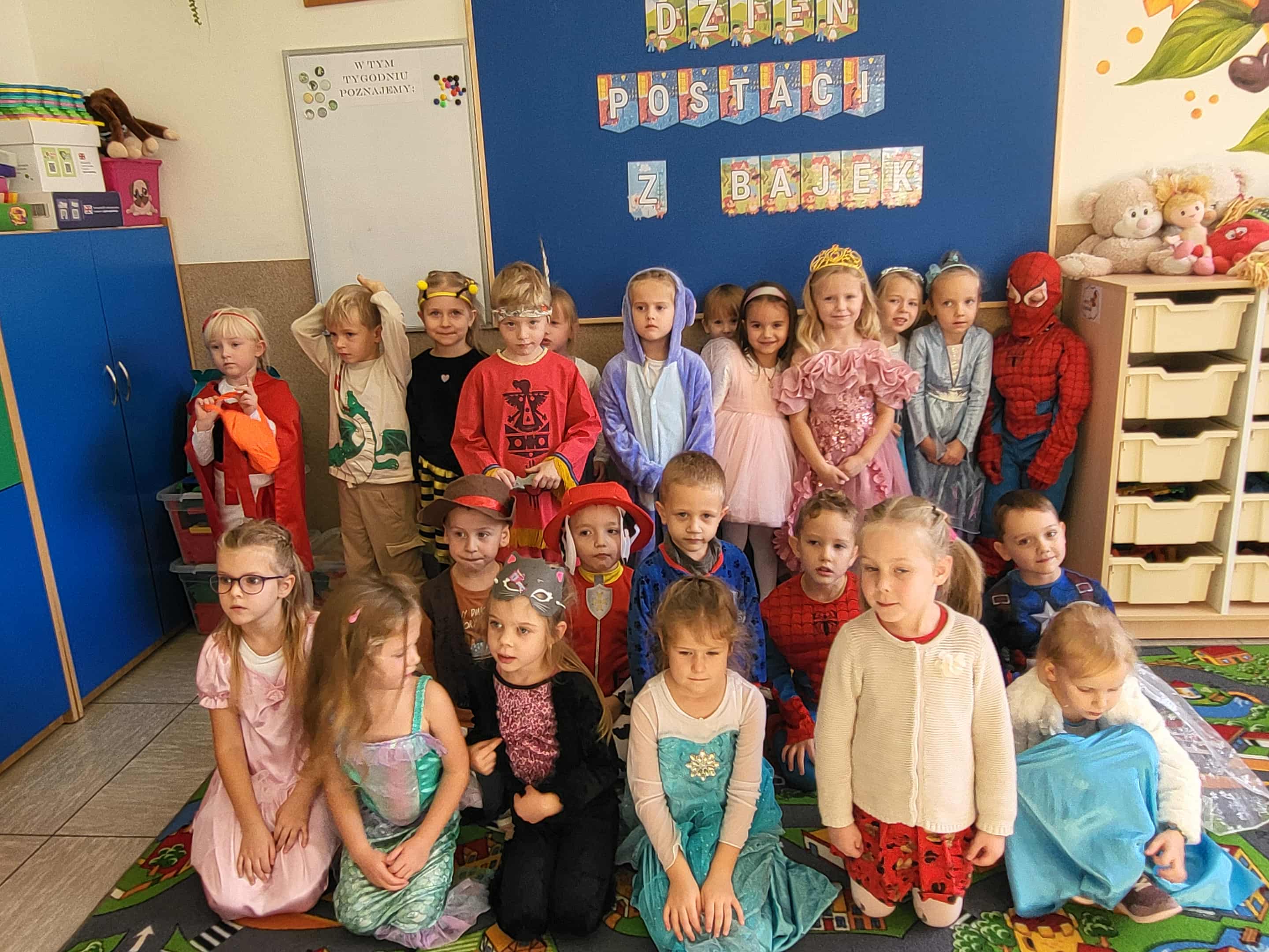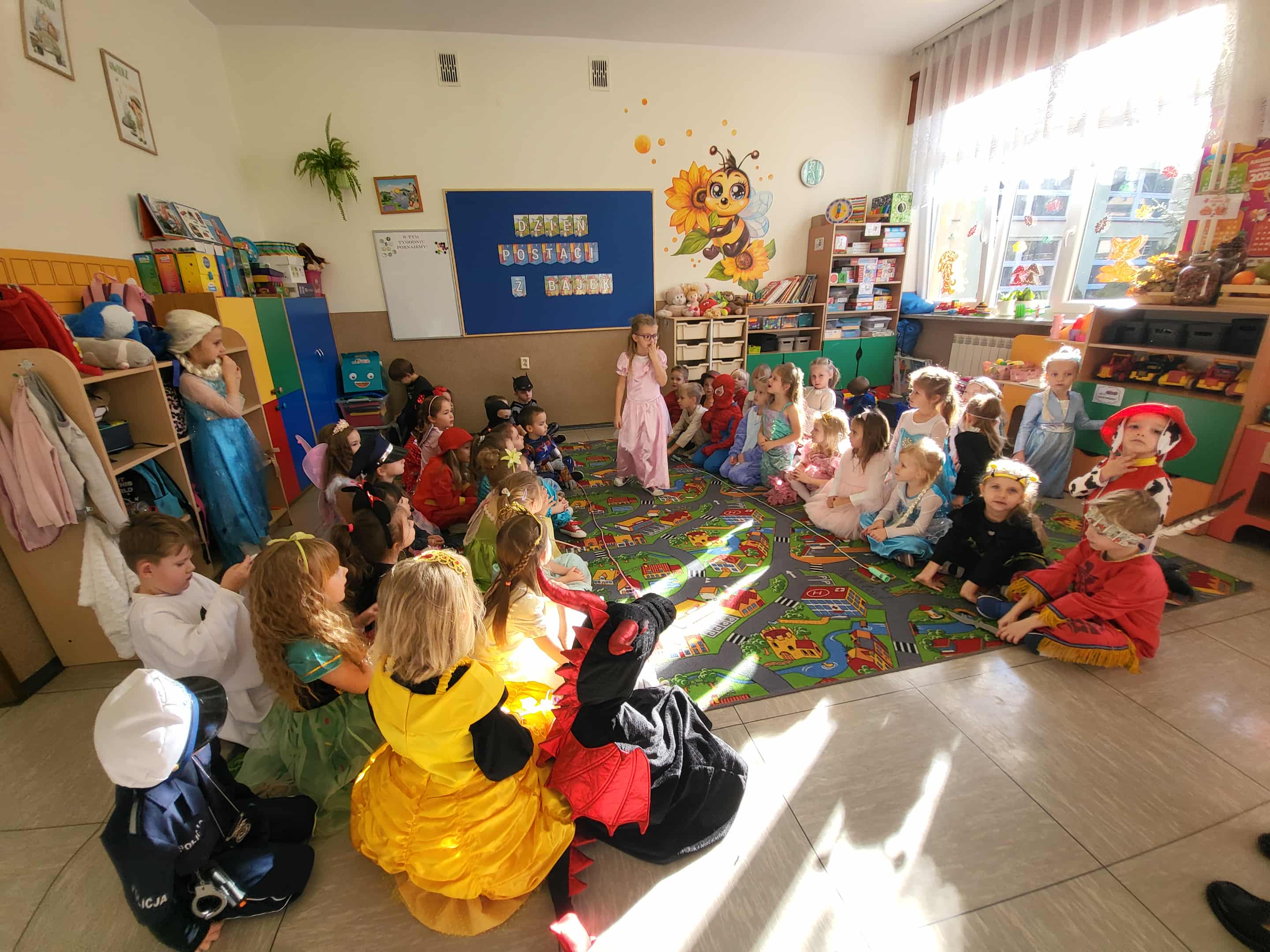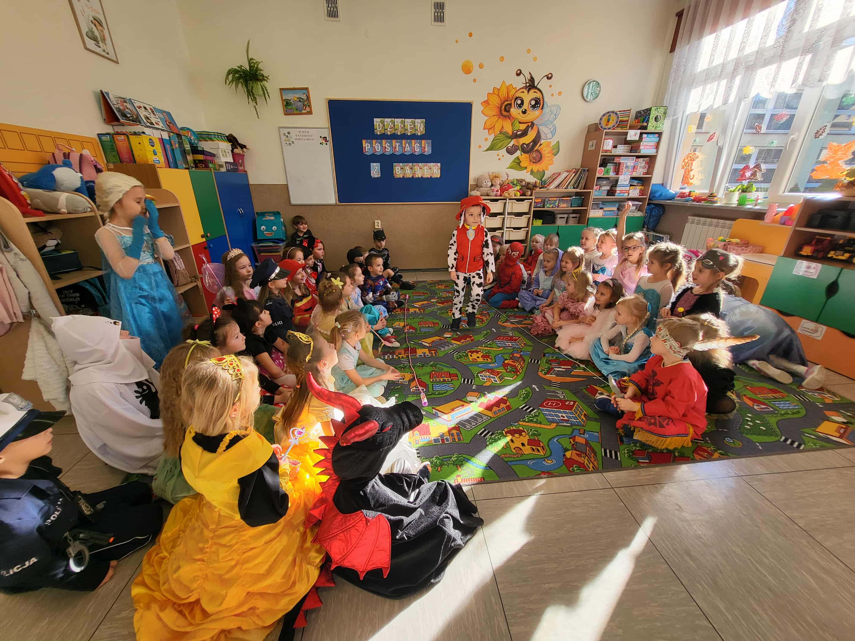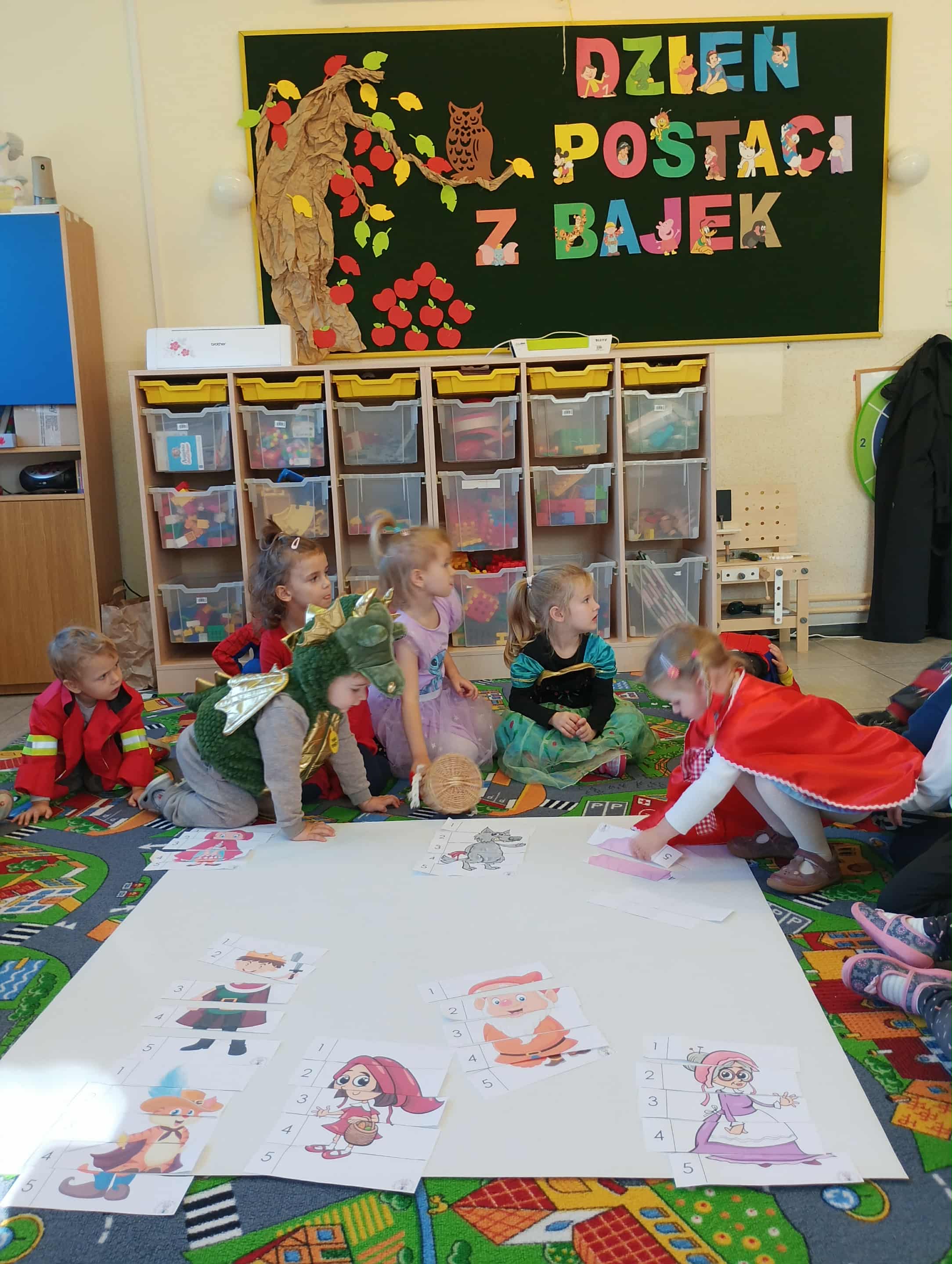 Z tej okazji 5 listopada dzieci z naszego przedszkola wyruszyły w podróż do krainy bajek. Był to dzień kolorowy i wesoły! Przedszkolaki przebrały się w bajkowe stroje, uczestniczyły w konkursach, z dumą prezentowały swoje stroje. Wysłuchały fragmentów znanych bajek, a następnie rozpoznawały ich tytuły. Trafnie segregowały bajkowe rekwizyty oraz układały bajkowe puzzle.
