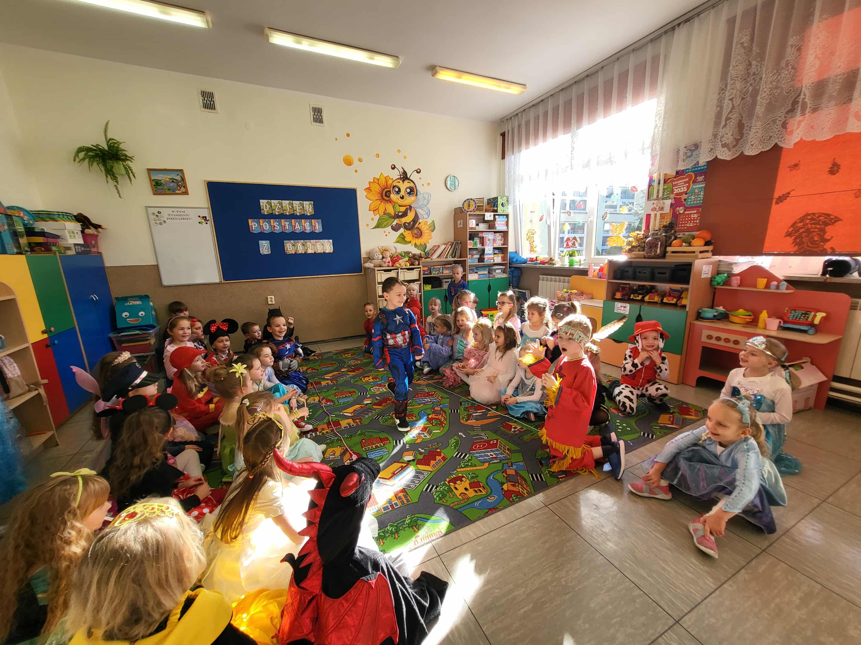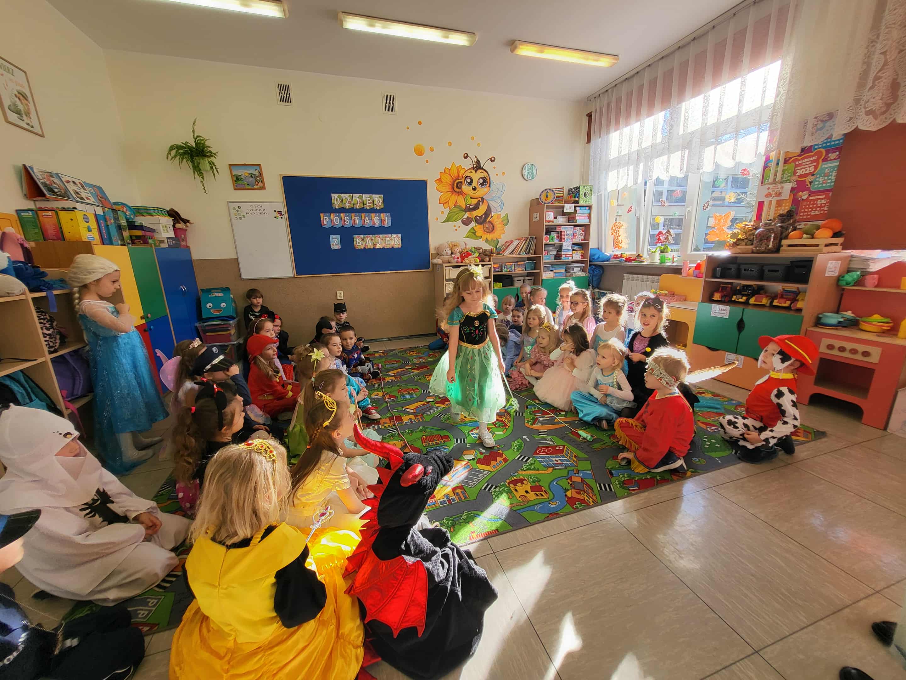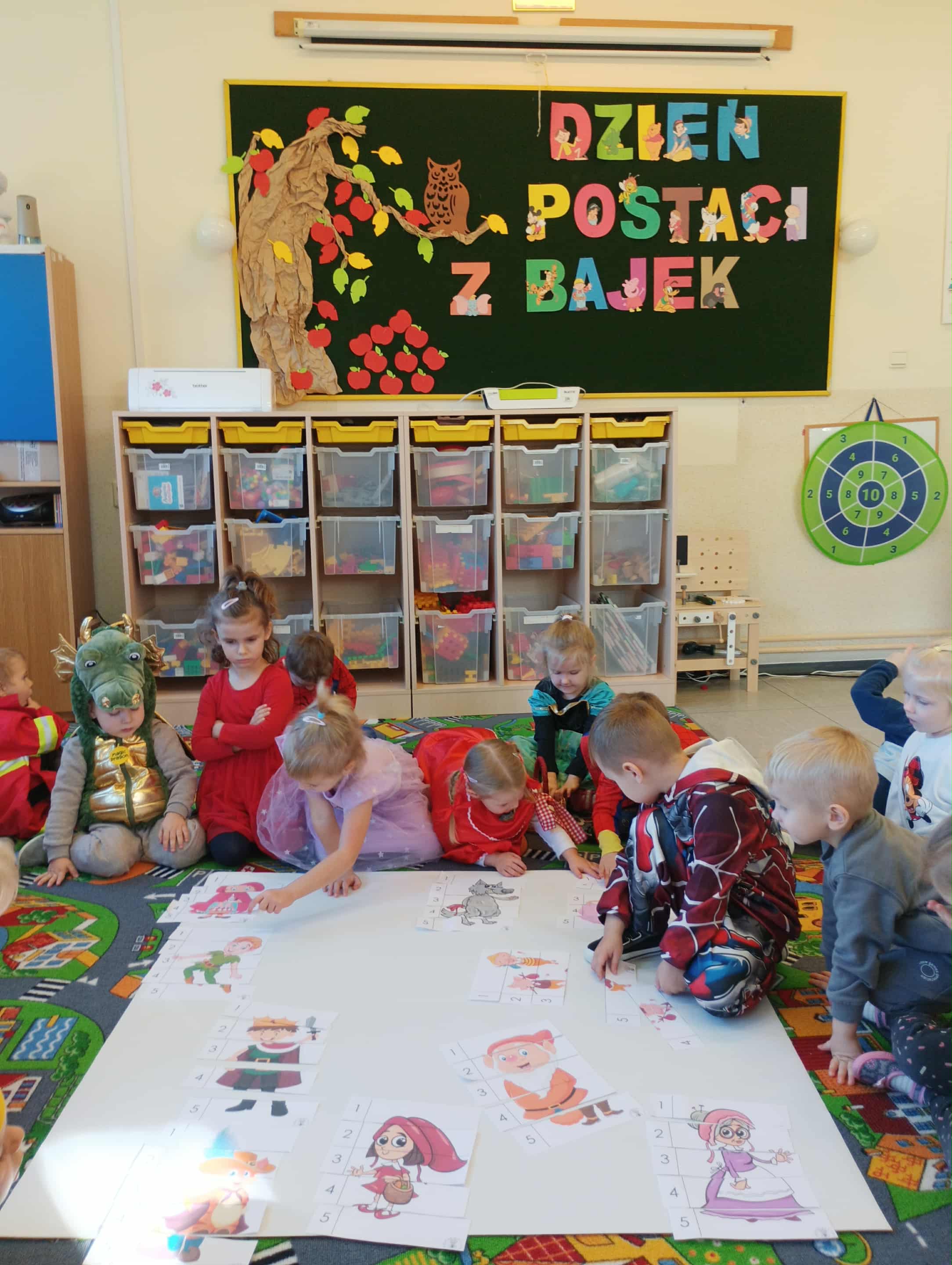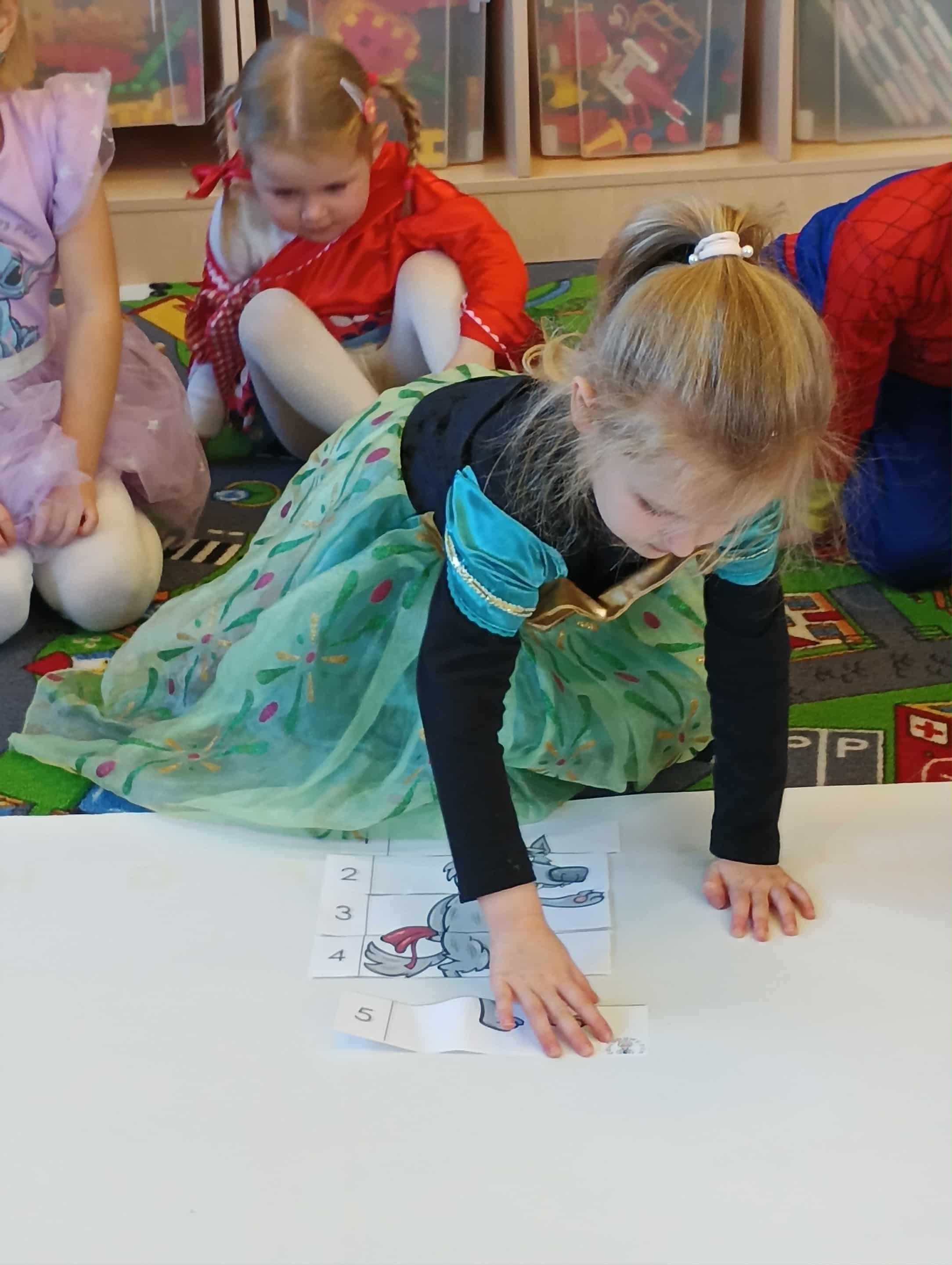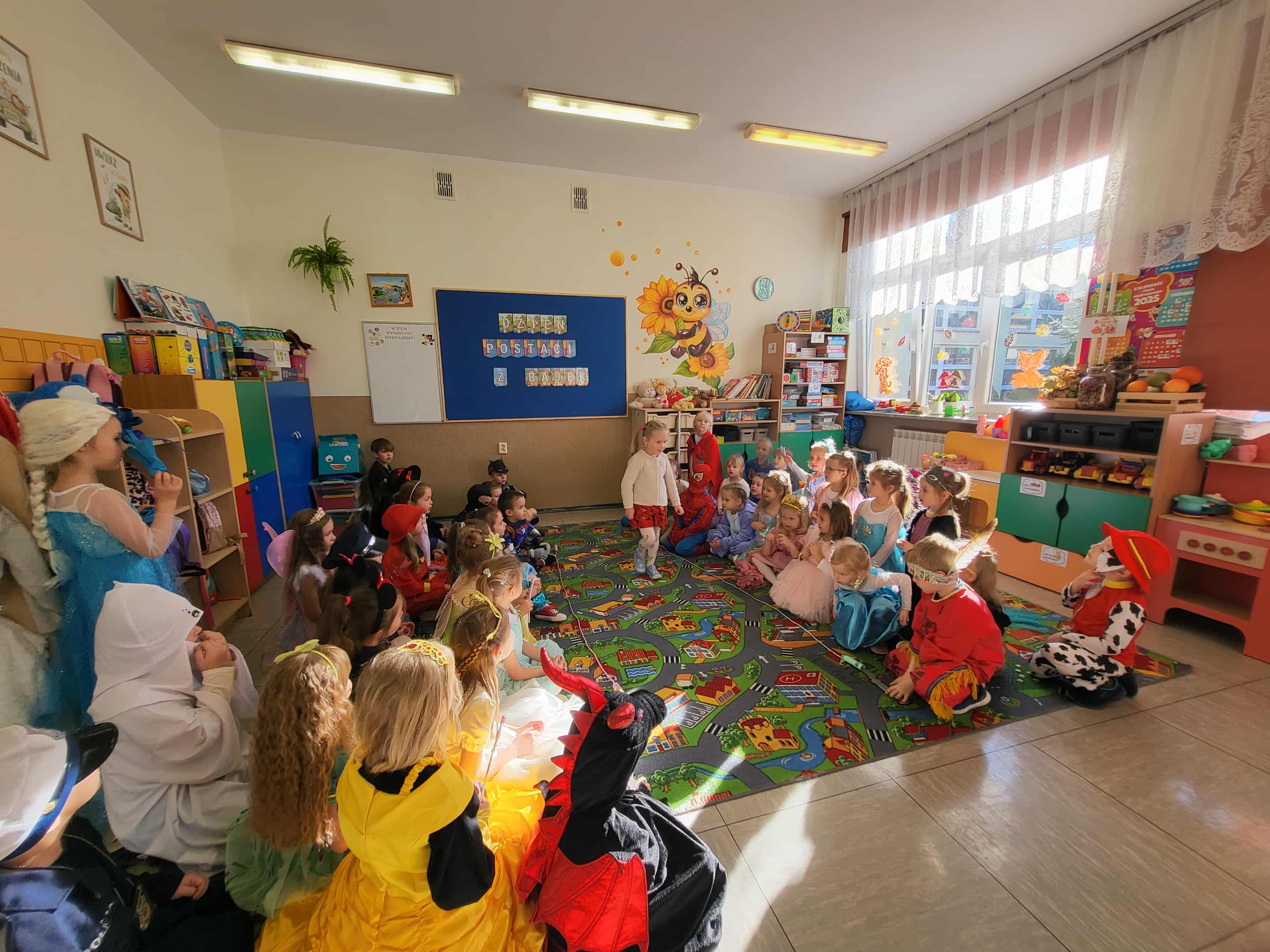 Z tej okazji 5 listopada dzieci z naszego przedszkola wyruszyły w podróż do krainy bajek. Był to dzień kolorowy i wesoły! Przedszkolaki przebrały się w bajkowe stroje, uczestniczyły w konkursach, z dumą prezentowały swoje stroje. Wysłuchały fragmentów znanych bajek, a następnie rozpoznawały ich tytuły. Trafnie segregowały bajkowe rekwizyty oraz układały bajkowe puzzle.