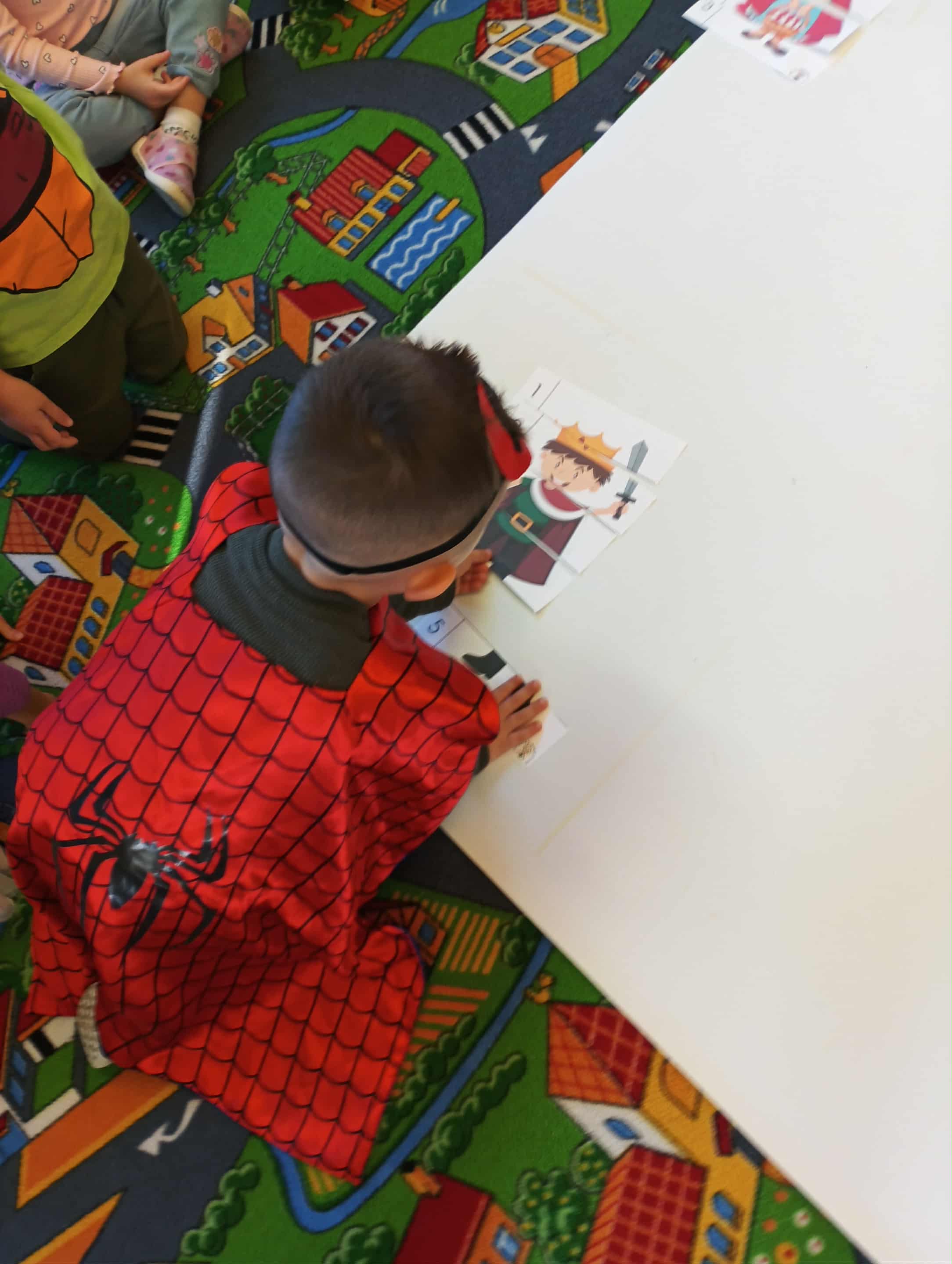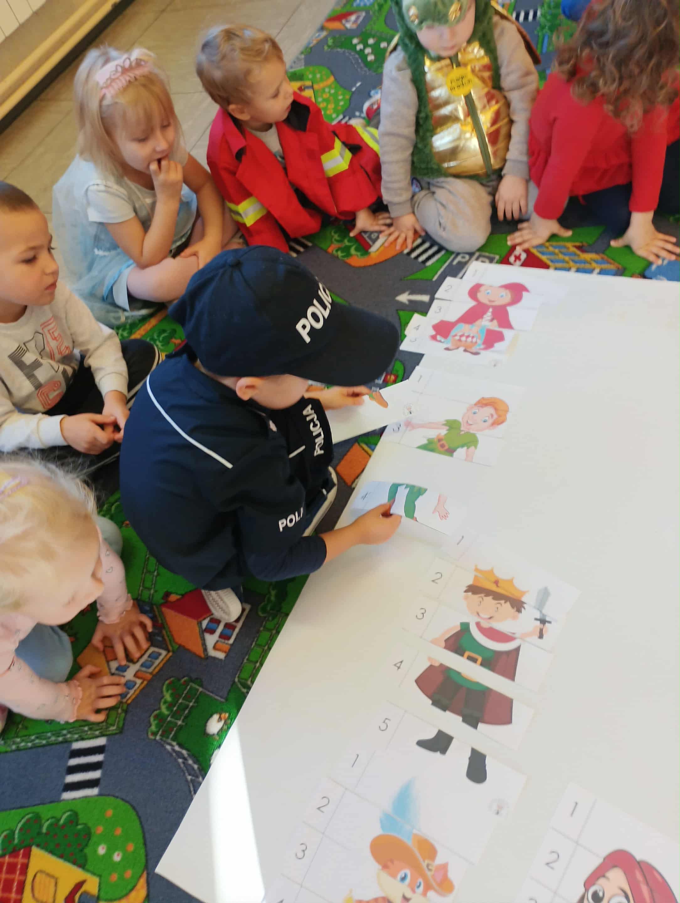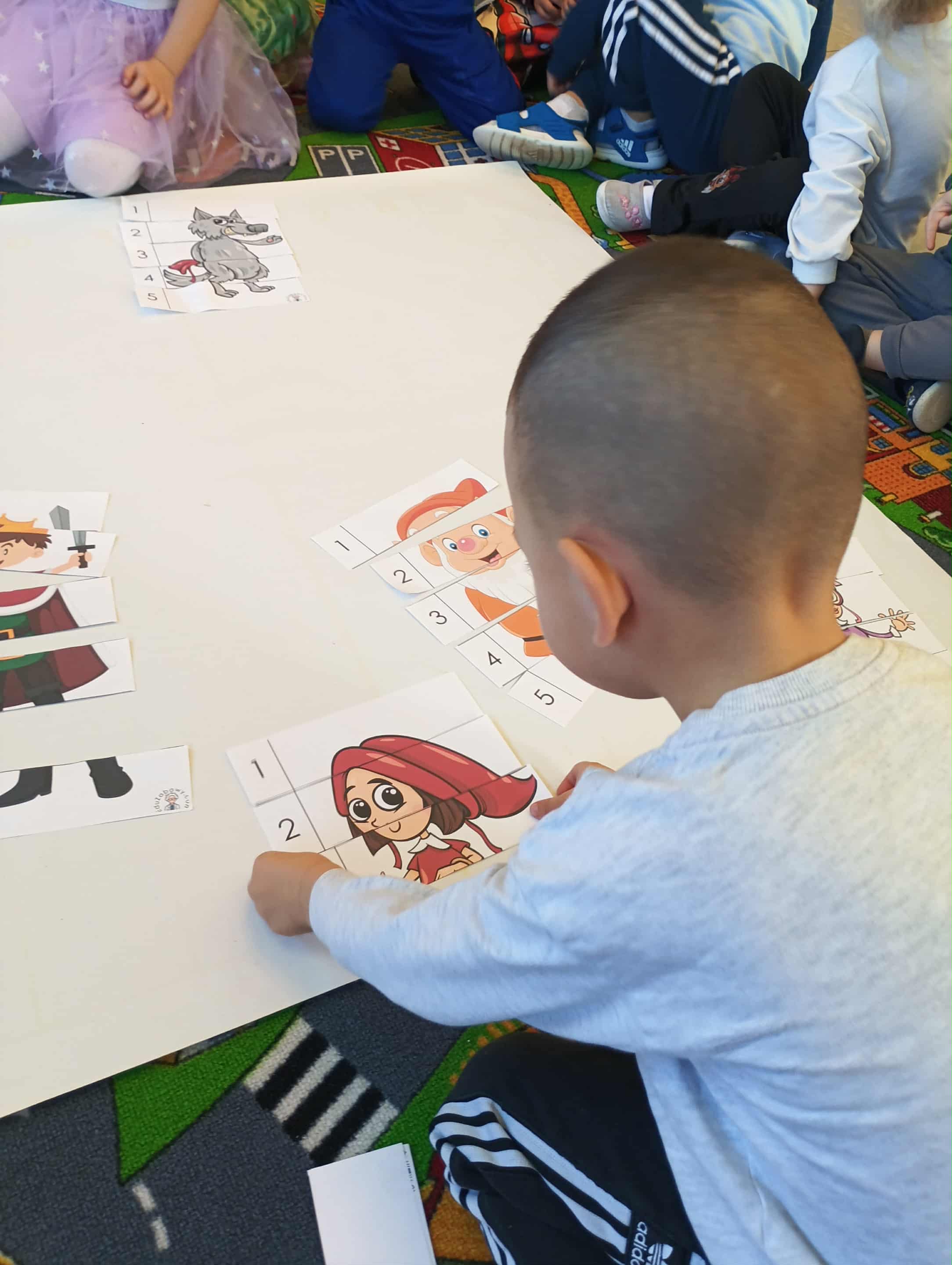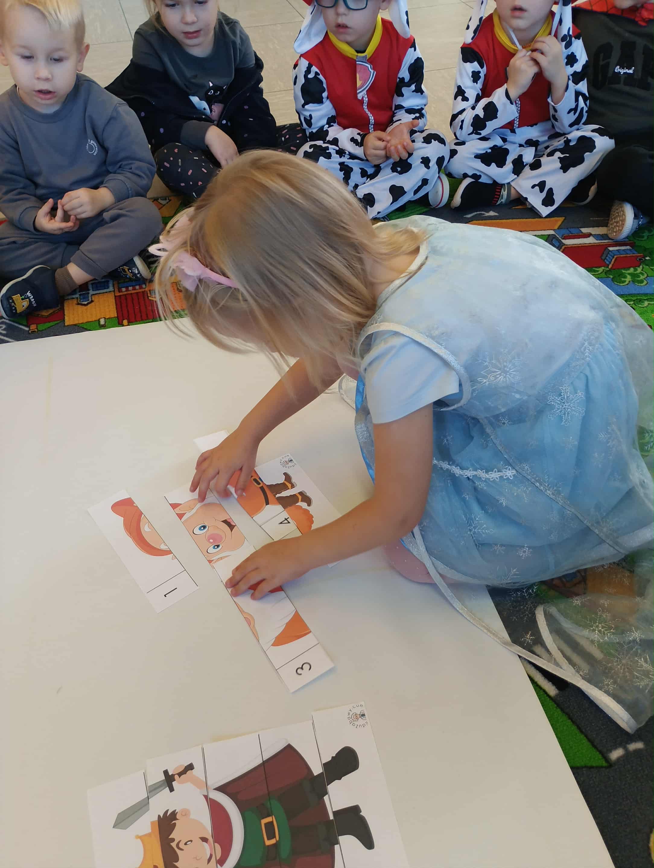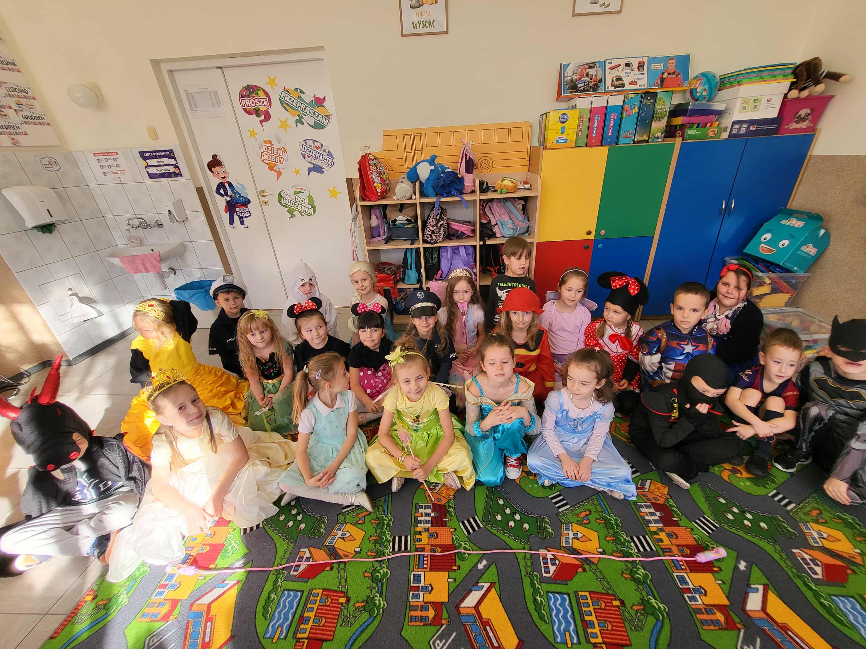Z tej okazji 5 listopada dzieci z naszego przedszkola wyruszyły w podróż do krainy bajek. Był to dzień kolorowy i wesoły! Przedszkolaki przebrały się w bajkowe stroje, uczestniczyły w konkursach, z dumą prezentowały swoje stroje. Wysłuchały fragmentów znanych bajek, a następnie rozpoznawały ich tytuły. Trafnie segregowały bajkowe rekwizyty oraz układały bajkowe puzzle.