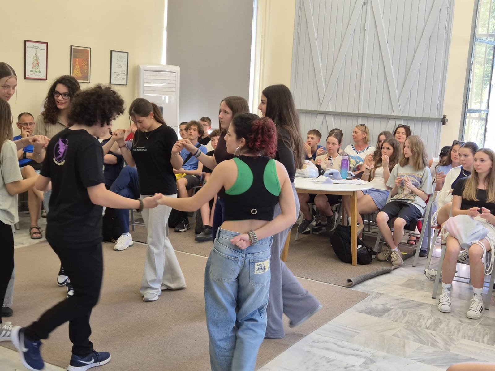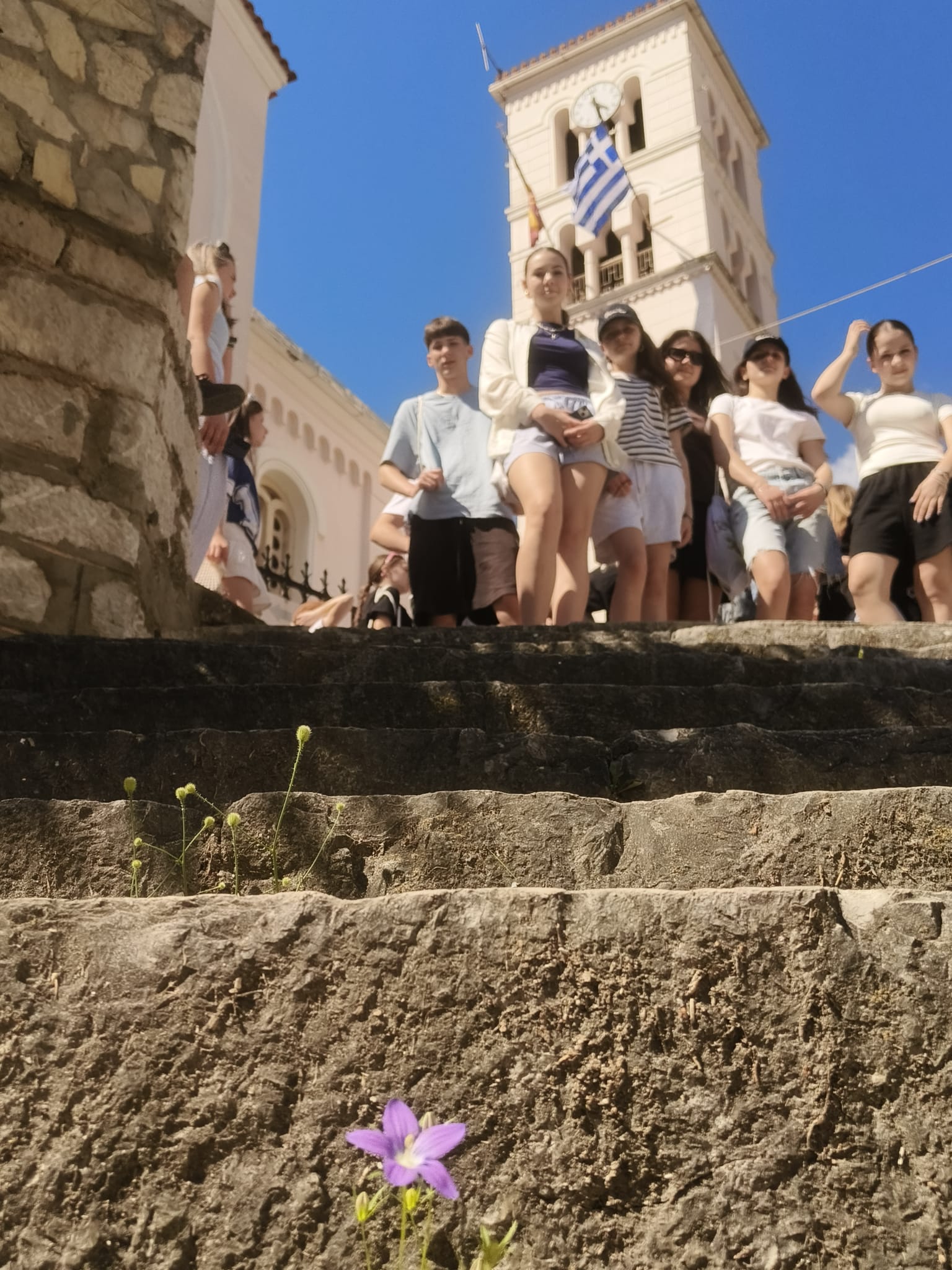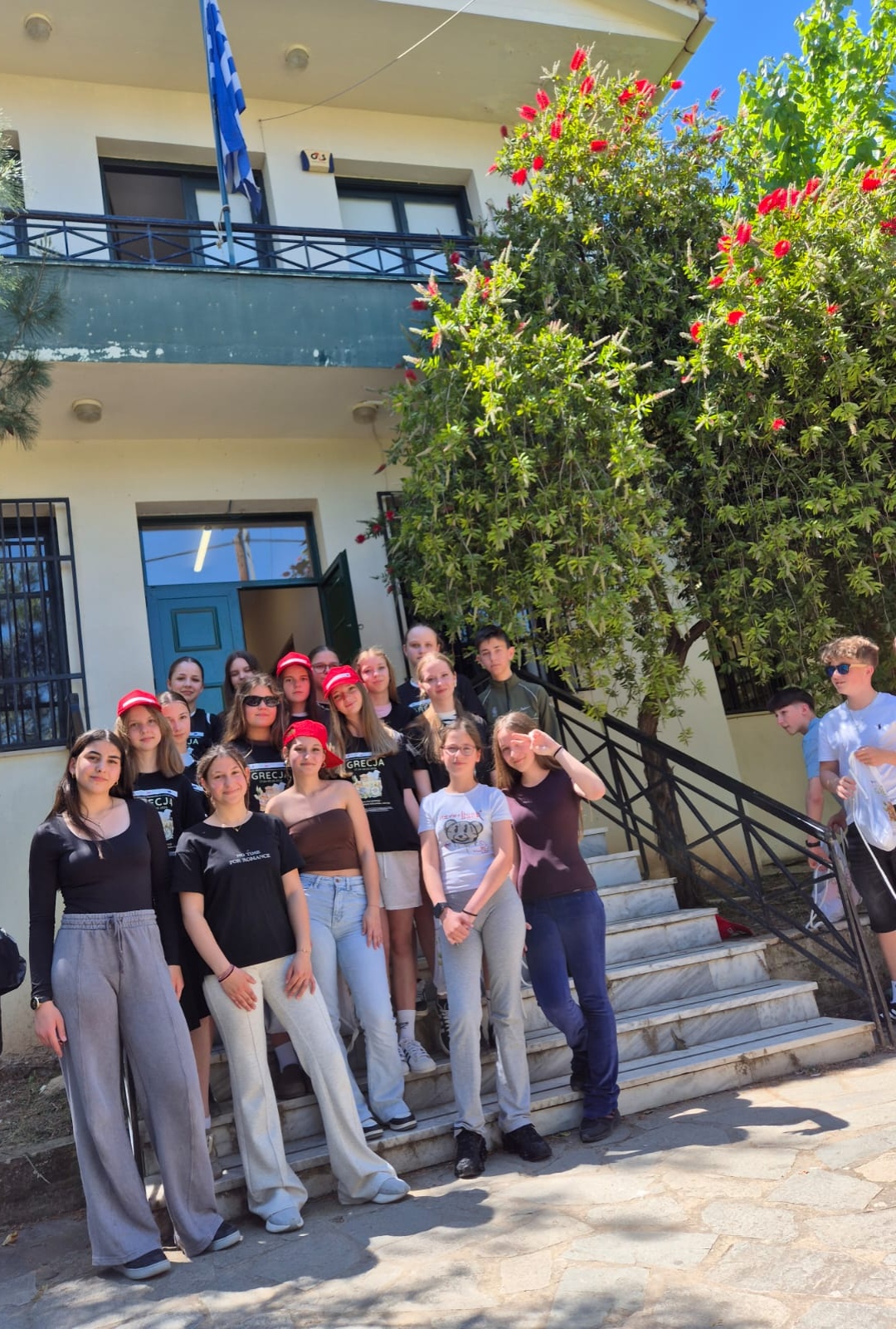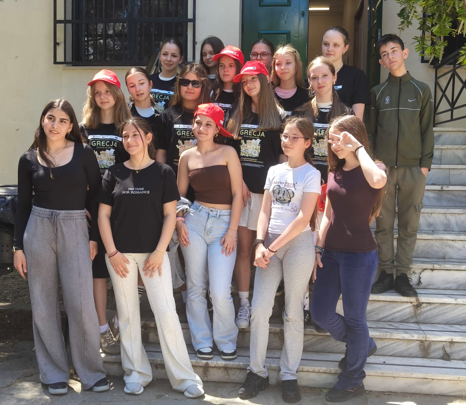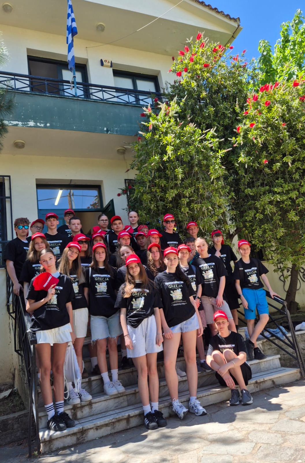 Trzeci dzień wyjazdu upłynął pod znakiem oficjalnego rozpoczęcia działań w szkole partnerskiej. Uczniowie wzięli udział w ceremonii powitalnej, po której nadszedł czas na zajęcia językowe, muzyczne oraz gry integracyjne. Pozwoliły one całej grupie przełamać pierwsze lody i zacieśnić relacje z rówieśnikami z Grecji. Ważnym punktem programu były występy artystyczne naszych uczniów. Krzysztof z klasy VII zaprezentował swój talent, grając na perkusji, natomiast dziewczęta z klasy VI zawchwyciły publiczność duetem w utworze „Tell him”. Spotkanie zakończyły wspólne rozmowy i wzajemna nauka podstawowych zwrotów- nasi uczniowie uczyli kolegów języka polskiego, sami poznając tajniki języka greckiego. Dalsza część dnia upłynęła pod znakiem odkrywania malowniczych wzgórz i ruin. Amfissa zachwyciła nas unikalnym układem- kamienne schody prowadzą tu niemal do każdego budynku. Klimatu dodawały stare pojazdy na uliczkach oraz piękne kościoły ukryte w soczystej zieleni. Całe miasto tonie w kwiatach, tworząc wyjątkową, pełną energii atmosferę. Popołudnie młodzież spędziła aktywnie, relaksując się na basenie. Zwieńczeniem dnia był nastrojowy wieczór- uczniowie korzystając z pięknej pogody, wybrali się na wspólne „spotkanie z księżycem” ciesząc się greckim, morskim krajobrazem po zmroku.