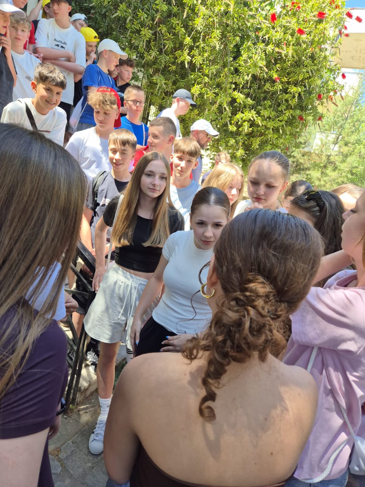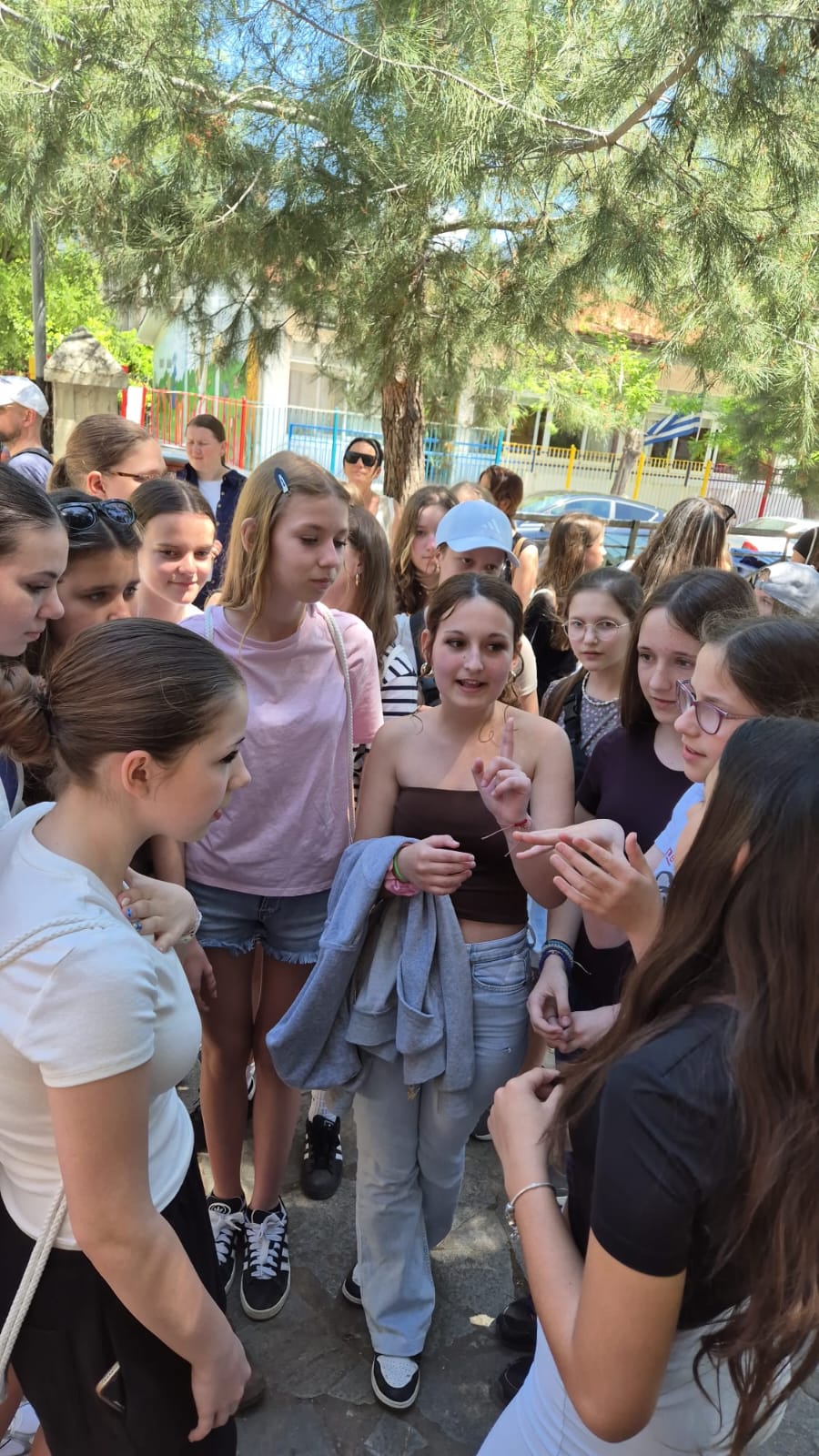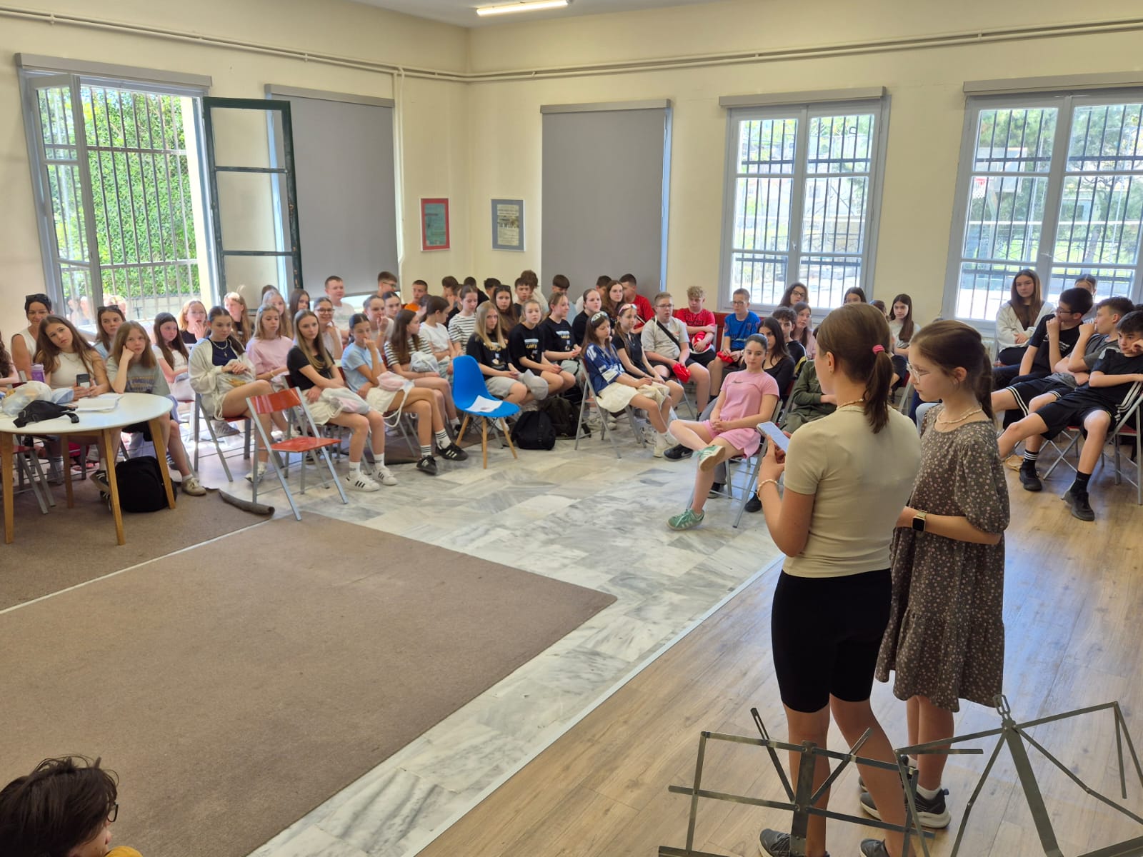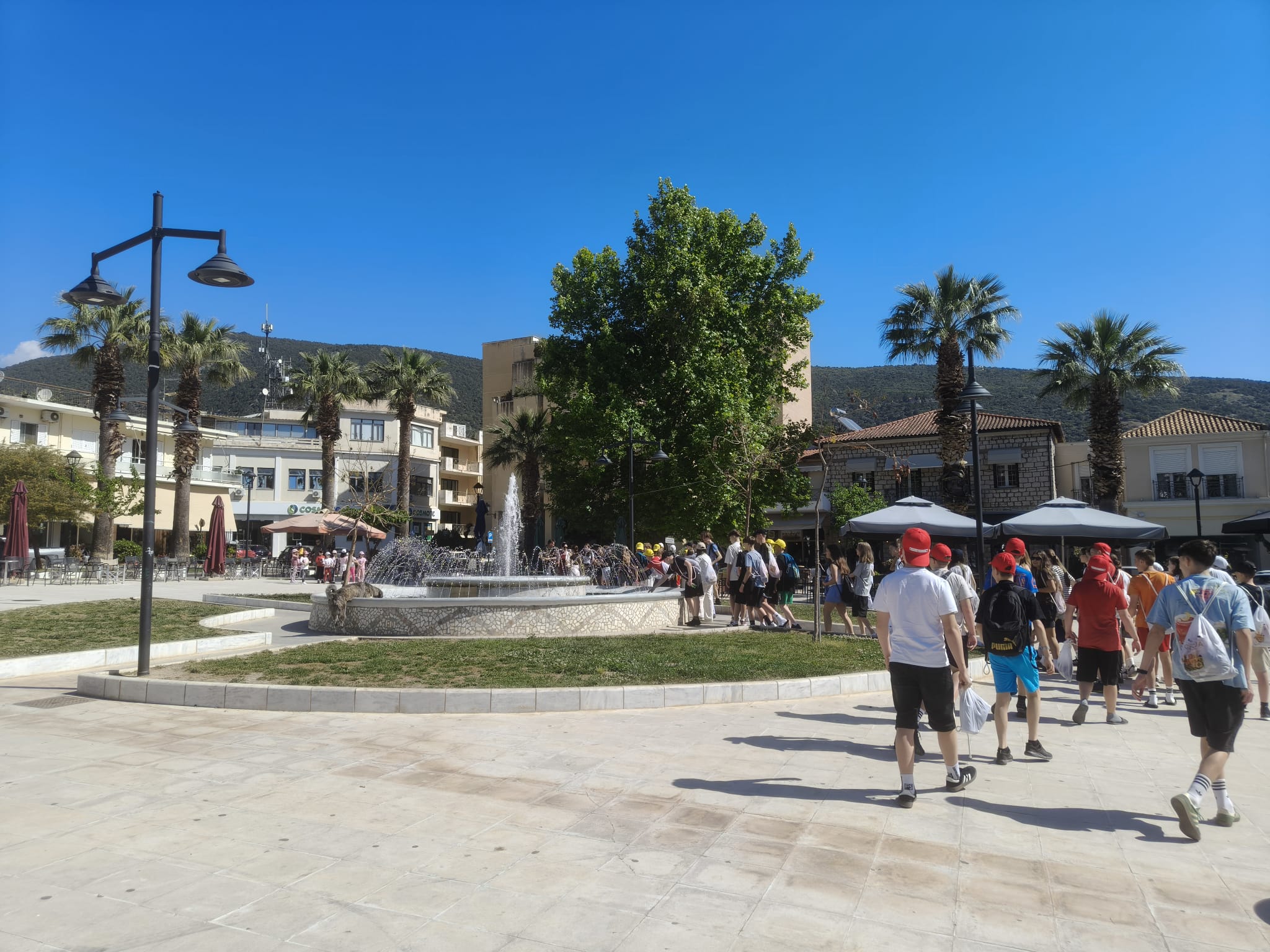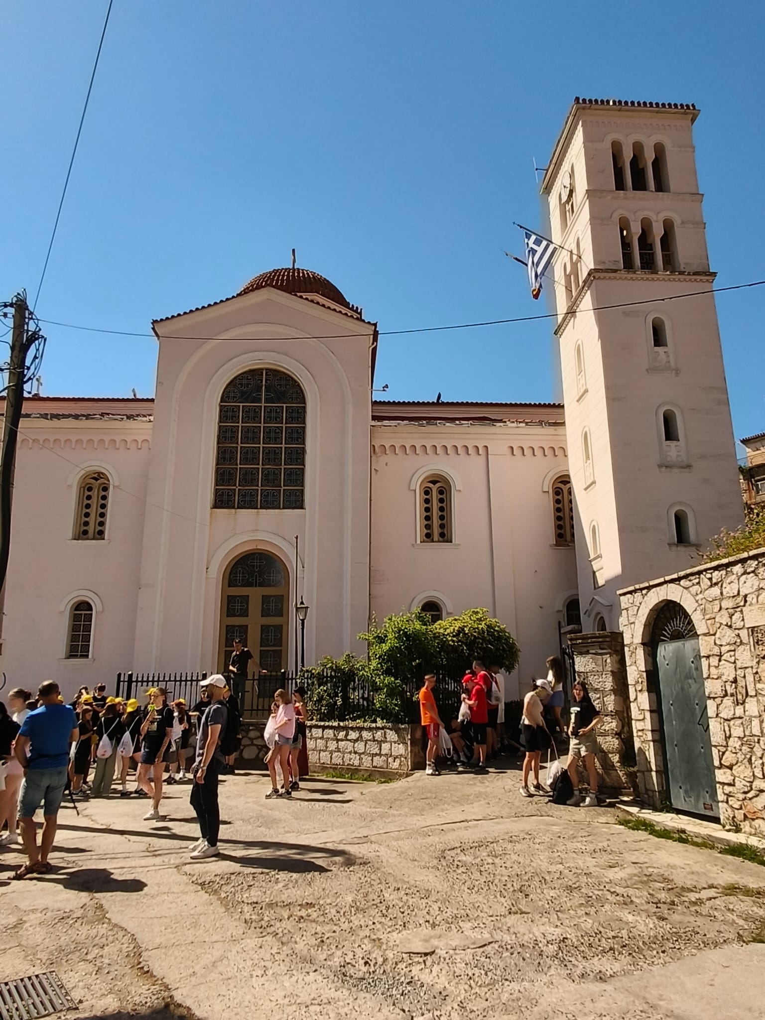 Trzeci dzień wyjazdu upłynął pod znakiem oficjalnego rozpoczęcia działań w szkole partnerskiej. Uczniowie wzięli udział w ceremonii powitalnej, po której nadszedł czas na zajęcia językowe, muzyczne oraz gry integracyjne. Pozwoliły one całej grupie przełamać pierwsze lody i zacieśnić relacje z rówieśnikami z Grecji. Ważnym punktem programu były występy artystyczne naszych uczniów. Krzysztof z klasy VII zaprezentował swój talent, grając na perkusji, natomiast dziewczęta z klasy VI zawchwyciły publiczność duetem w utworze „Tell him”. Spotkanie zakończyły wspólne rozmowy i wzajemna nauka podstawowych zwrotów- nasi uczniowie uczyli kolegów języka polskiego, sami poznając tajniki języka greckiego. Dalsza część dnia upłynęła pod znakiem odkrywania malowniczych wzgórz i ruin. Amfissa zachwyciła nas unikalnym układem- kamienne schody prowadzą tu niemal do każdego budynku. Klimatu dodawały stare pojazdy na uliczkach oraz piękne kościoły ukryte w soczystej zieleni. Całe miasto tonie w kwiatach, tworząc wyjątkową, pełną energii atmosferę. Popołudnie młodzież spędziła aktywnie, relaksując się na basenie. Zwieńczeniem dnia był nastrojowy wieczór- uczniowie korzystając z pięknej pogody, wybrali się na wspólne „spotkanie z księżycem” ciesząc się greckim, morskim krajobrazem po zmroku.