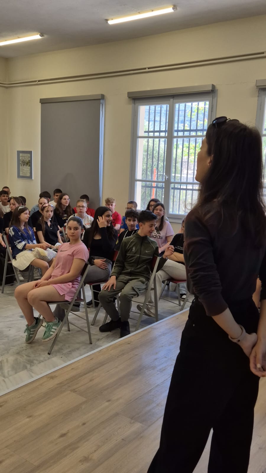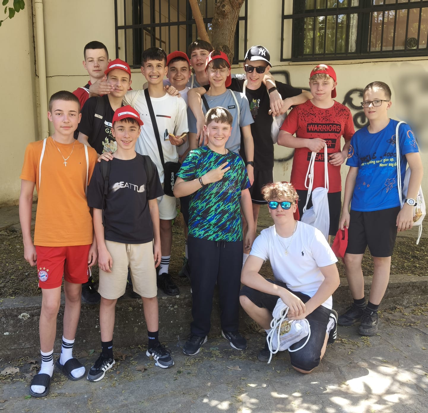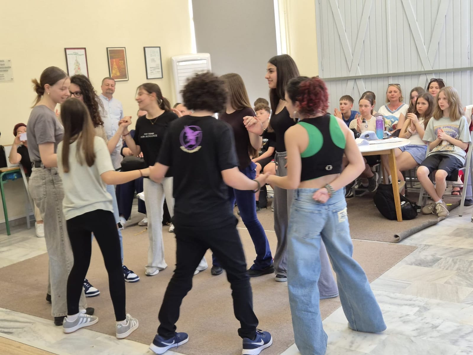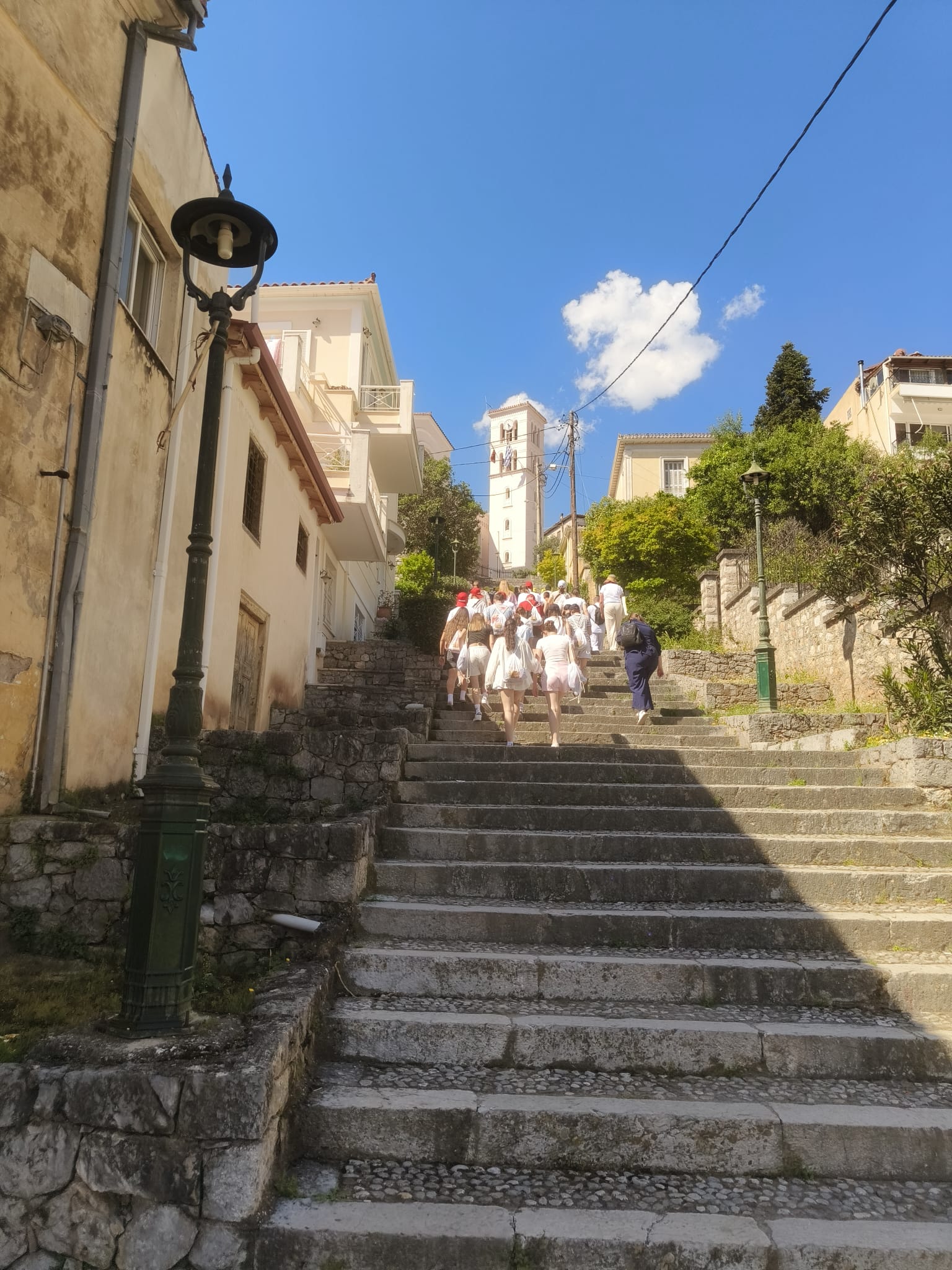 Trzeci dzień wyjazdu upłynął pod znakiem oficjalnego rozpoczęcia działań w szkole partnerskiej. Uczniowie wzięli udział w ceremonii powitalnej, po której nadszedł czas na zajęcia językowe, muzyczne oraz gry integracyjne. Pozwoliły one całej grupie przełamać pierwsze lody i zacieśnić relacje z rówieśnikami z Grecji. Ważnym punktem programu były występy artystyczne naszych uczniów. Krzysztof z klasy VII zaprezentował swój talent, grając na perkusji, natomiast dziewczęta z klasy VI zawchwyciły publiczność duetem w utworze „Tell him”. Spotkanie zakończyły wspólne rozmowy i wzajemna nauka podstawowych zwrotów- nasi uczniowie uczyli kolegów języka polskiego, sami poznając tajniki języka greckiego. Dalsza część dnia upłynęła pod znakiem odkrywania malowniczych wzgórz i ruin. Amfissa zachwyciła nas unikalnym układem- kamienne schody prowadzą tu niemal do każdego budynku. Klimatu dodawały stare pojazdy na uliczkach oraz piękne kościoły ukryte w soczystej zieleni. Całe miasto tonie w kwiatach, tworząc wyjątkową, pełną energii atmosferę. Popołudnie młodzież spędziła aktywnie, relaksując się na basenie. Zwieńczeniem dnia był nastrojowy wieczór- uczniowie korzystając z pięknej pogody, wybrali się na wspólne „spotkanie z księżycem” ciesząc się greckim, morskim krajobrazem po zmroku.