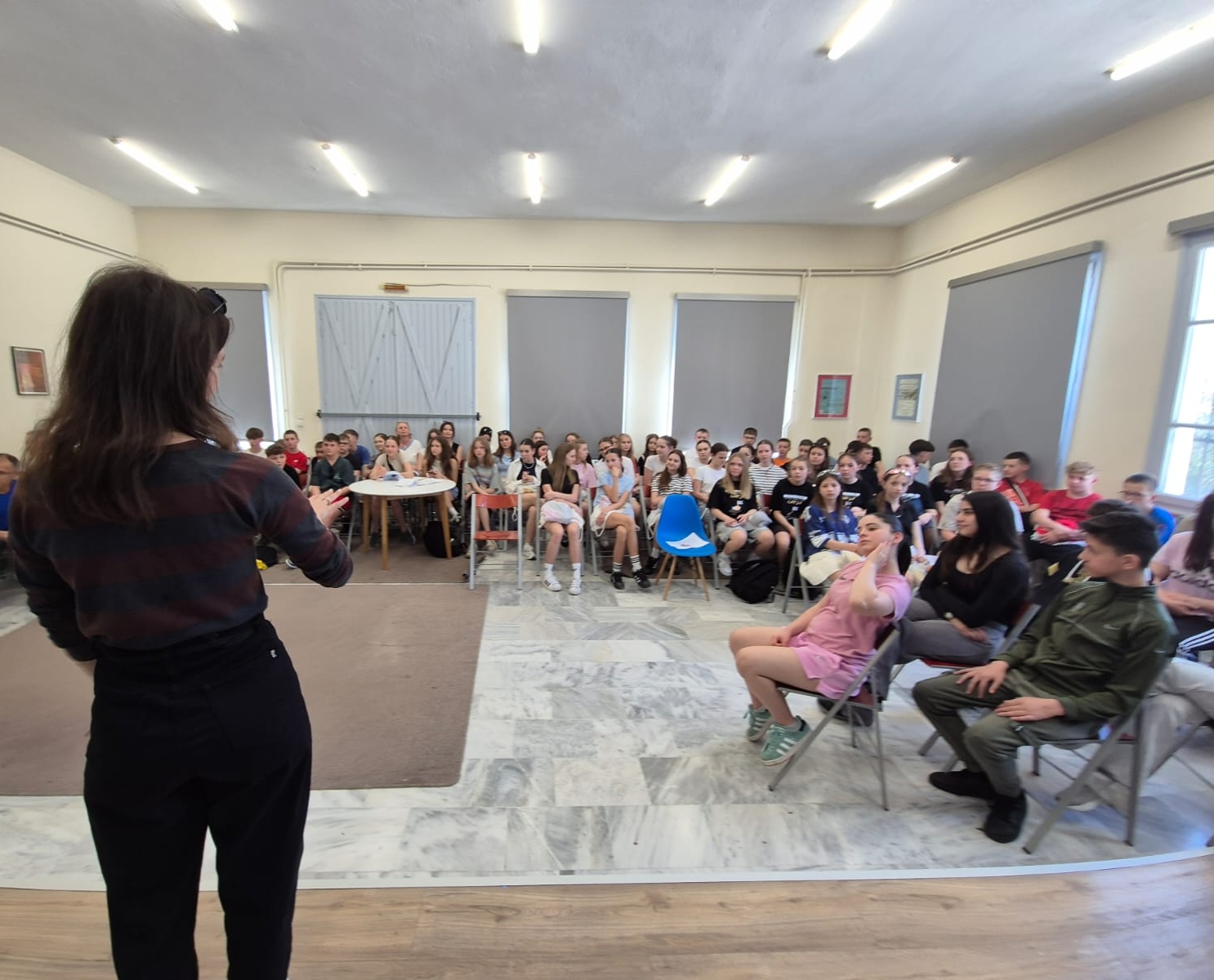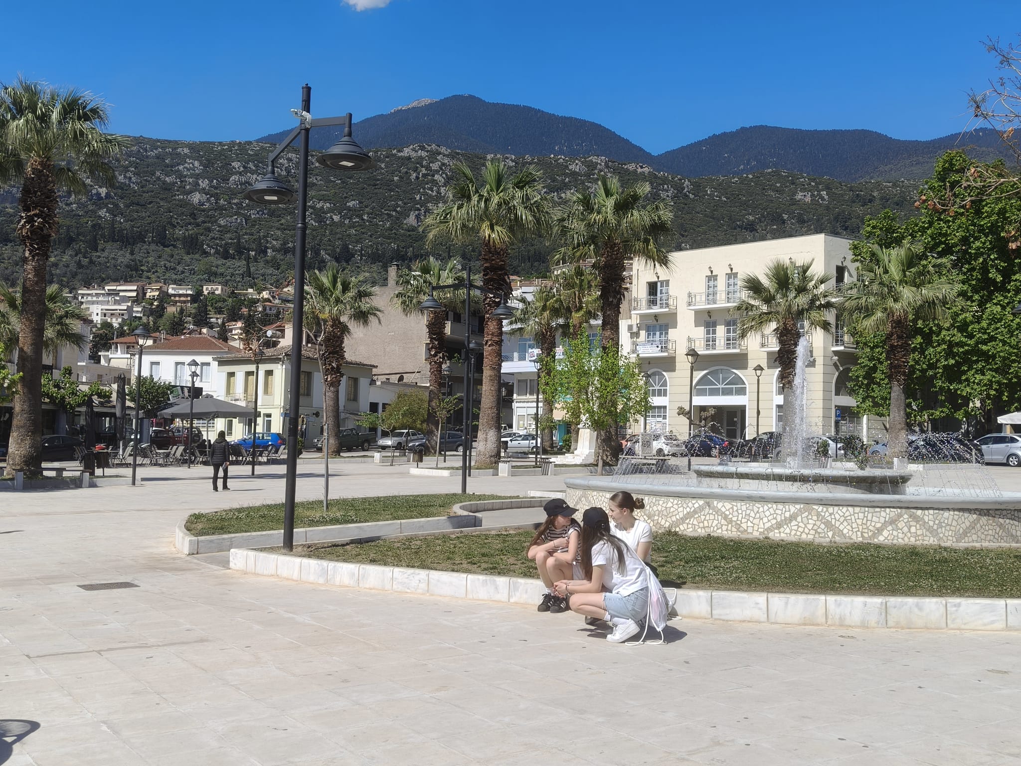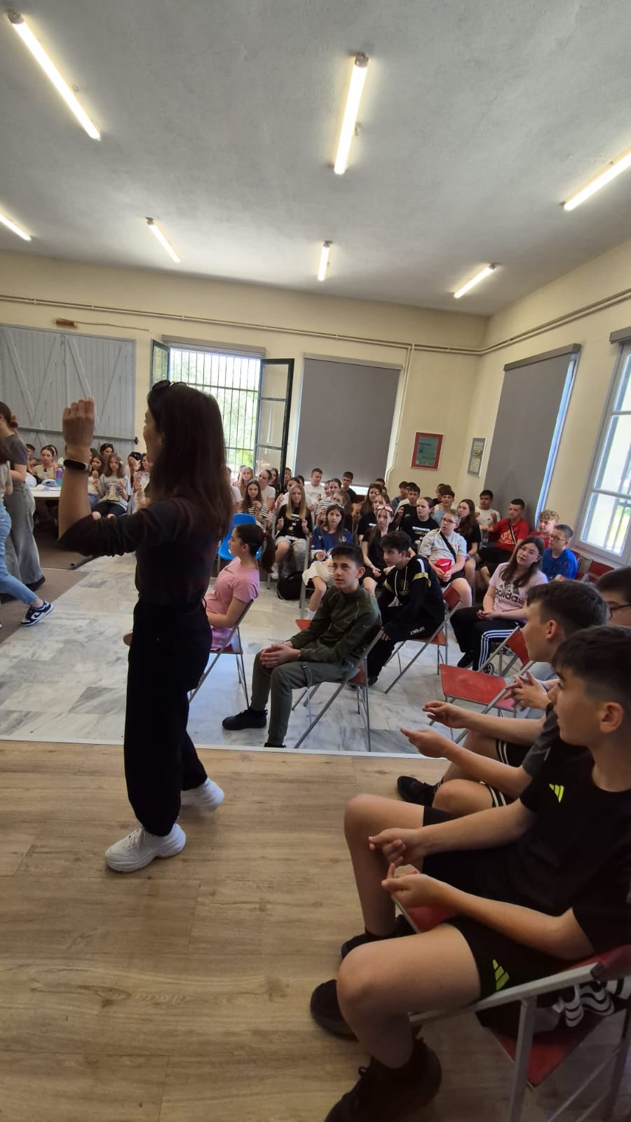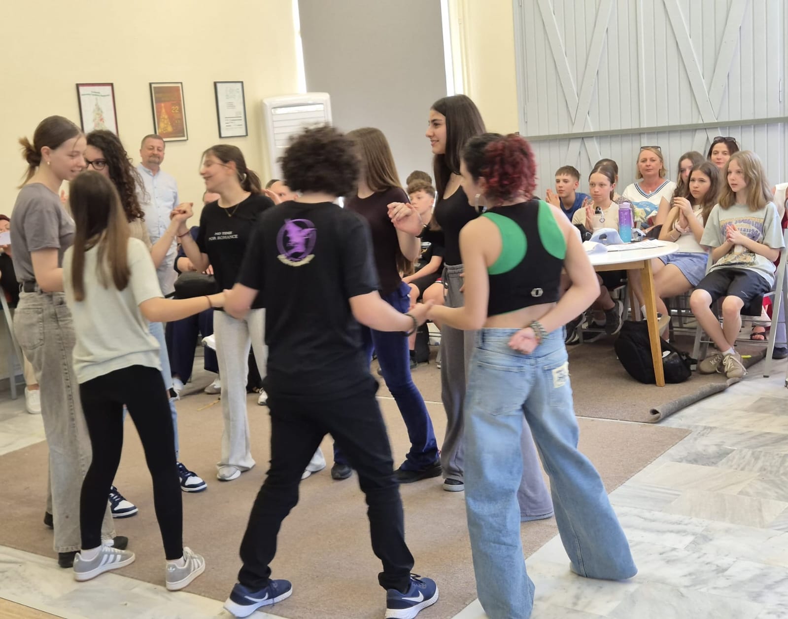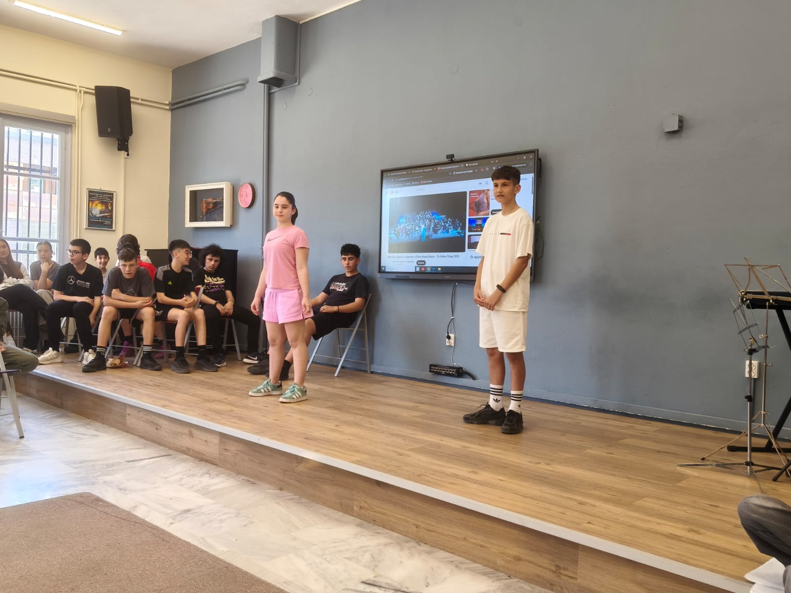 Trzeci dzień wyjazdu upłynął pod znakiem oficjalnego rozpoczęcia działań w szkole partnerskiej. Uczniowie wzięli udział w ceremonii powitalnej, po której nadszedł czas na zajęcia językowe, muzyczne oraz gry integracyjne. Pozwoliły one całej grupie przełamać pierwsze lody i zacieśnić relacje z rówieśnikami z Grecji. Ważnym punktem programu były występy artystyczne naszych uczniów. Krzysztof z klasy VII zaprezentował swój talent, grając na perkusji, natomiast dziewczęta z klasy VI zawchwyciły publiczność duetem w utworze „Tell him”. Spotkanie zakończyły wspólne rozmowy i wzajemna nauka podstawowych zwrotów- nasi uczniowie uczyli kolegów języka polskiego, sami poznając tajniki języka greckiego. Dalsza część dnia upłynęła pod znakiem odkrywania malowniczych wzgórz i ruin. Amfissa zachwyciła nas unikalnym układem- kamienne schody prowadzą tu niemal do każdego budynku. Klimatu dodawały stare pojazdy na uliczkach oraz piękne kościoły ukryte w soczystej zieleni. Całe miasto tonie w kwiatach, tworząc wyjątkową, pełną energii atmosferę. Popołudnie młodzież spędziła aktywnie, relaksując się na basenie. Zwieńczeniem dnia był nastrojowy wieczór- uczniowie korzystając z pięknej pogody, wybrali się na wspólne „spotkanie z księżycem” ciesząc się greckim, morskim krajobrazem po zmroku.