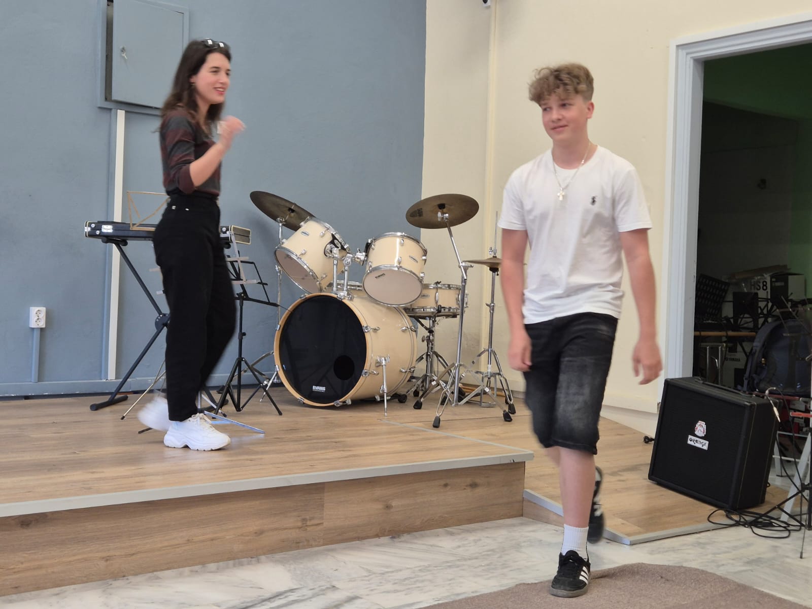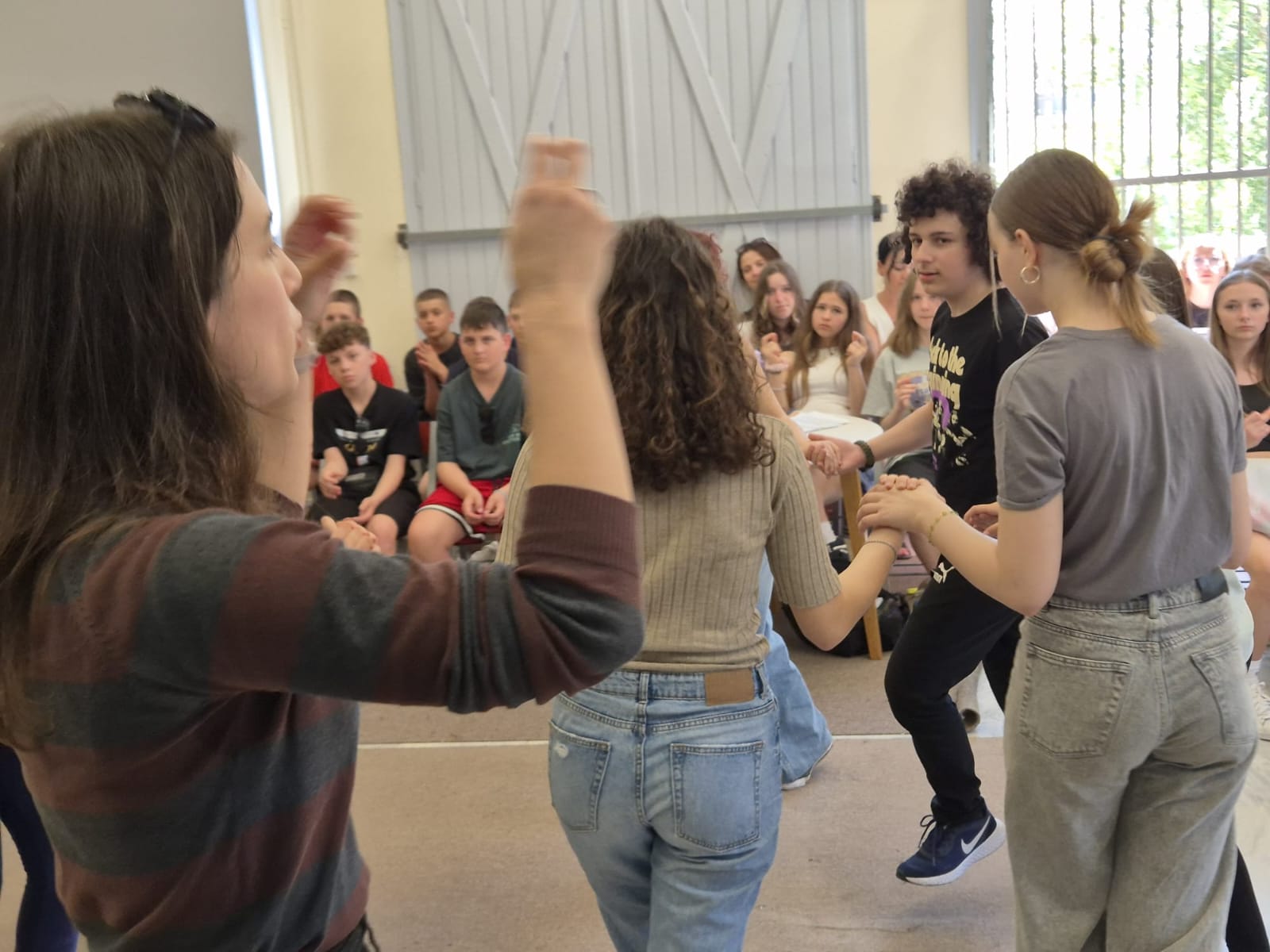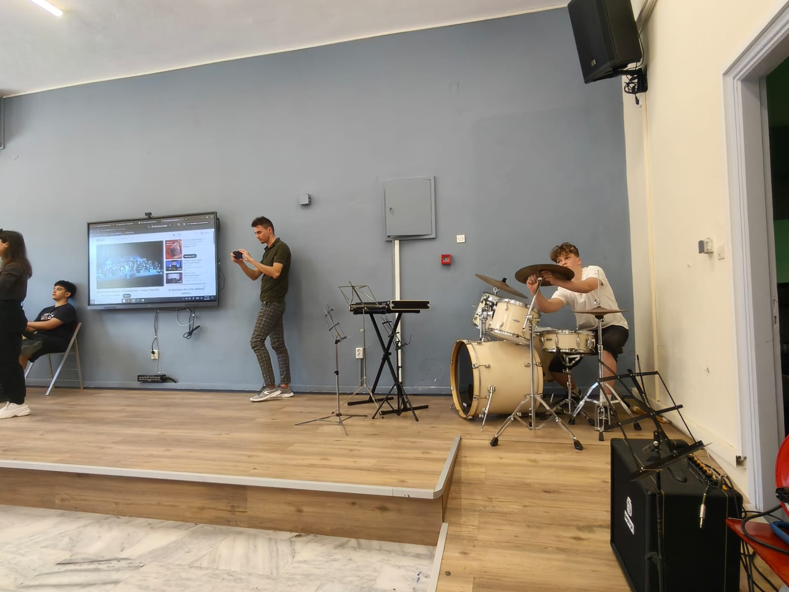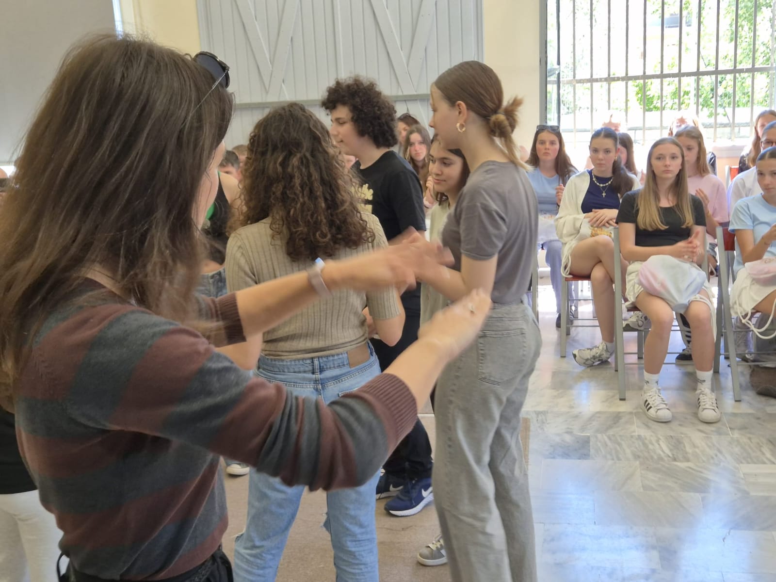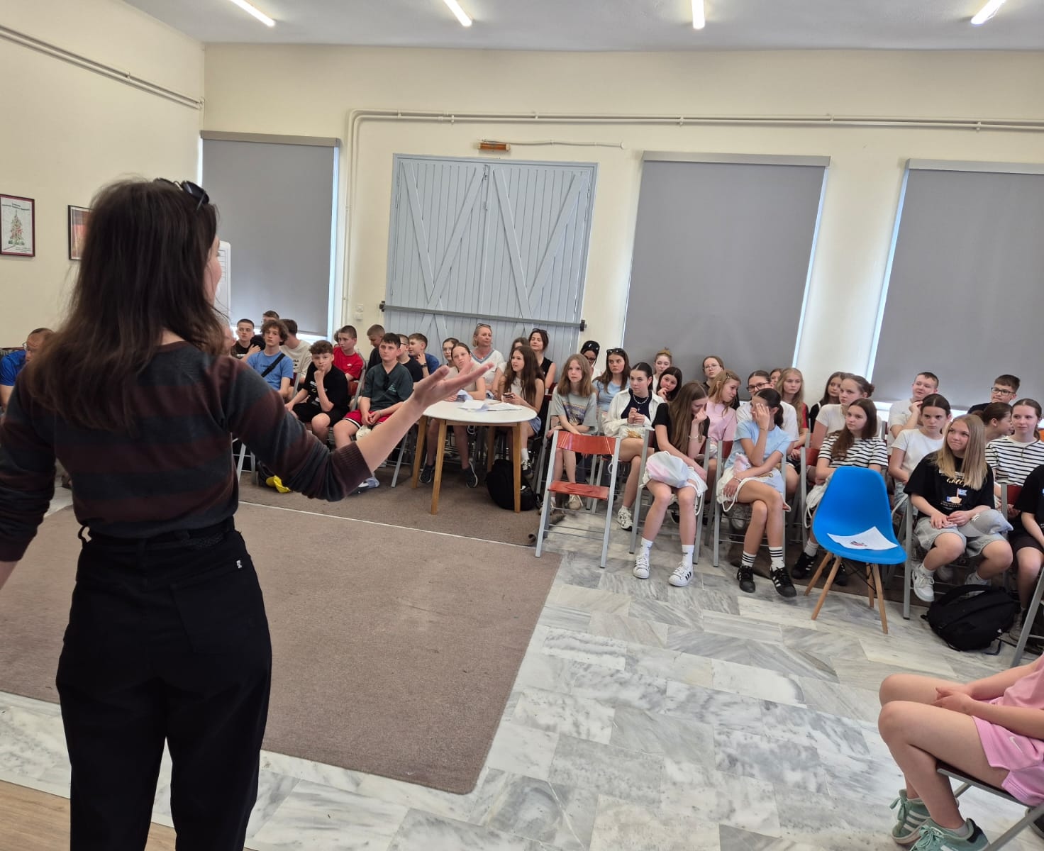 Trzeci dzień wyjazdu upłynął pod znakiem oficjalnego rozpoczęcia działań w szkole partnerskiej. Uczniowie wzięli udział w ceremonii powitalnej, po której nadszedł czas na zajęcia językowe, muzyczne oraz gry integracyjne. Pozwoliły one całej grupie przełamać pierwsze lody i zacieśnić relacje z rówieśnikami z Grecji. Ważnym punktem programu były występy artystyczne naszych uczniów. Krzysztof z klasy VII zaprezentował swój talent, grając na perkusji, natomiast dziewczęta z klasy VI zawchwyciły publiczność duetem w utworze „Tell him”. Spotkanie zakończyły wspólne rozmowy i wzajemna nauka podstawowych zwrotów- nasi uczniowie uczyli kolegów języka polskiego, sami poznając tajniki języka greckiego. Dalsza część dnia upłynęła pod znakiem odkrywania malowniczych wzgórz i ruin. Amfissa zachwyciła nas unikalnym układem- kamienne schody prowadzą tu niemal do każdego budynku. Klimatu dodawały stare pojazdy na uliczkach oraz piękne kościoły ukryte w soczystej zieleni. Całe miasto tonie w kwiatach, tworząc wyjątkową, pełną energii atmosferę. Popołudnie młodzież spędziła aktywnie, relaksując się na basenie. Zwieńczeniem dnia był nastrojowy wieczór- uczniowie korzystając z pięknej pogody, wybrali się na wspólne „spotkanie z księżycem” ciesząc się greckim, morskim krajobrazem po zmroku.