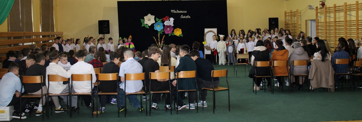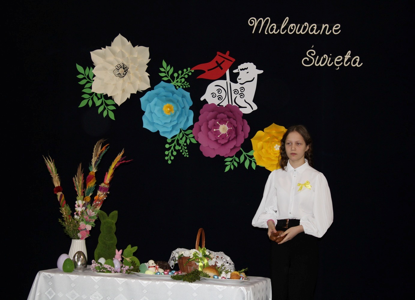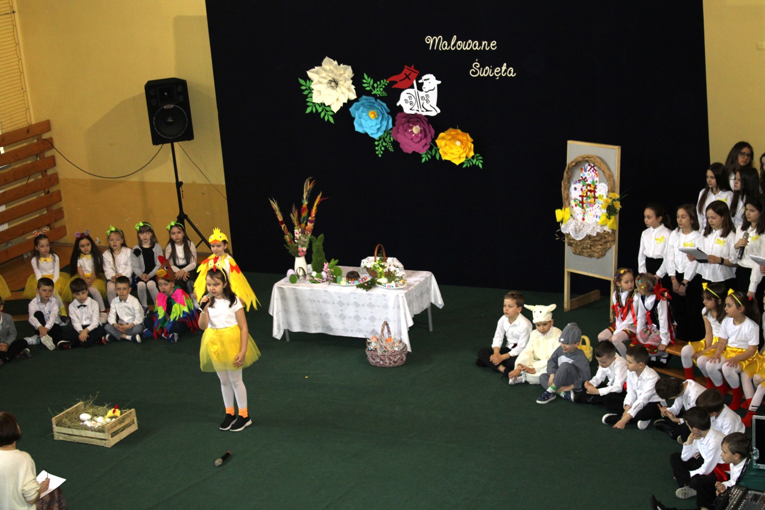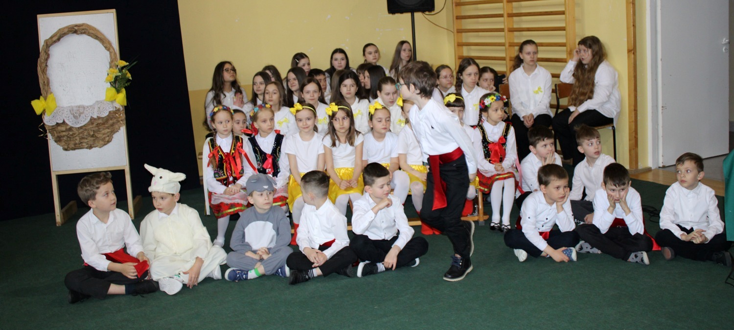 Przebiegała ona pod hasłem „Malowane Święta”. W zabawny, humorystyczny sposób przypomnieliśmy sobie świąteczne zwyczaje. Dowiedzieliśmy się czego symbolem są poszczególne pokarmy, które wkładamy do koszyka i niesiemy do święcenia. Powitaliśmy na scenie: zajączka, kurę z pisklakami, kolorowe pisanki, baranka… Każda z tych postaci miała coś ważnego do powiedzenia.