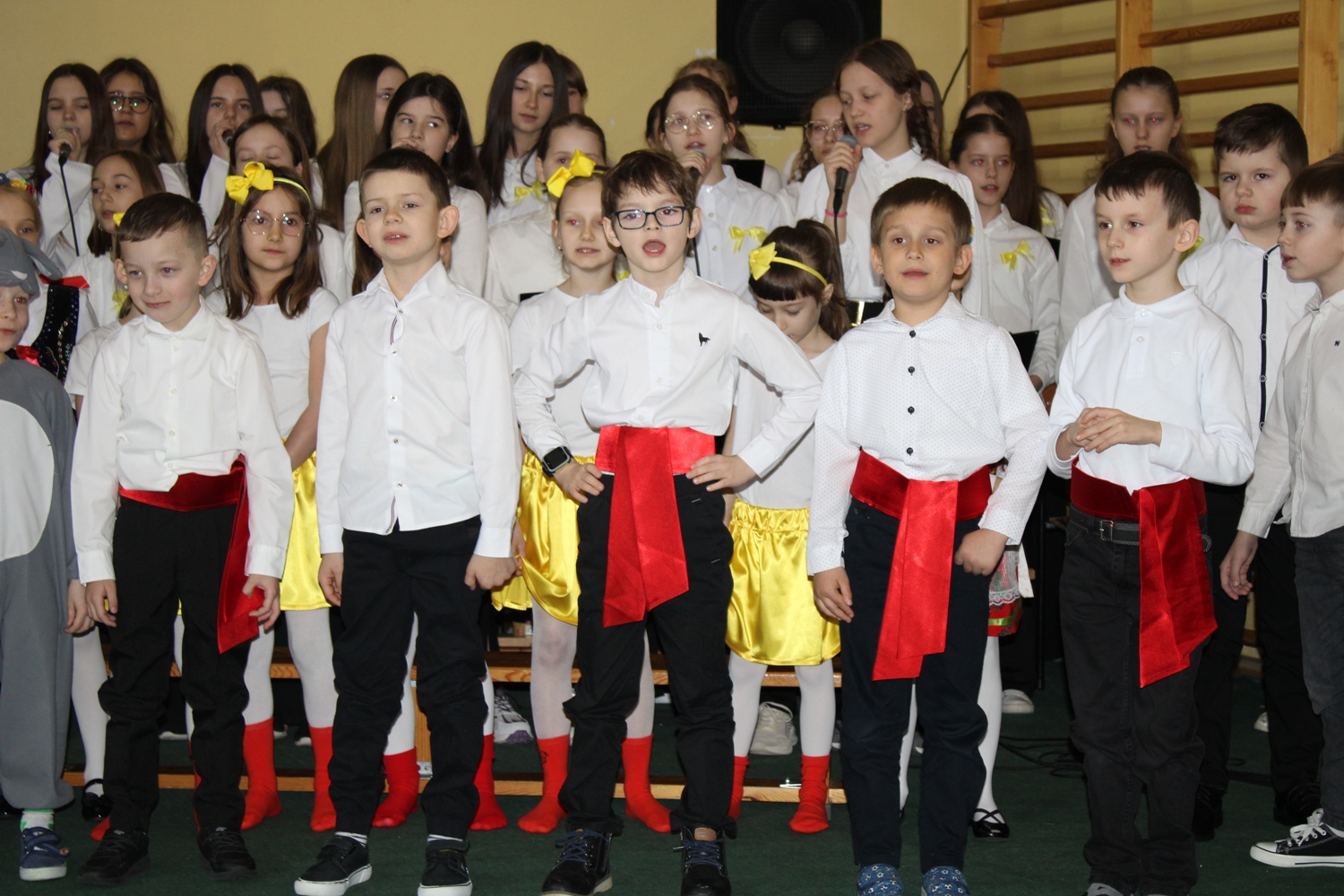 W akademii wzięli udział prawie wszyscy uczniowie szkoły, a na szczególną uwagę zasługują dzieci z klas I i II.