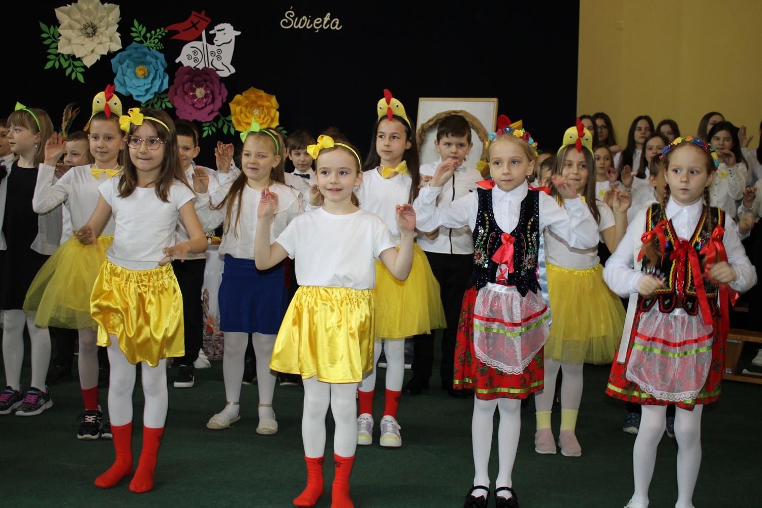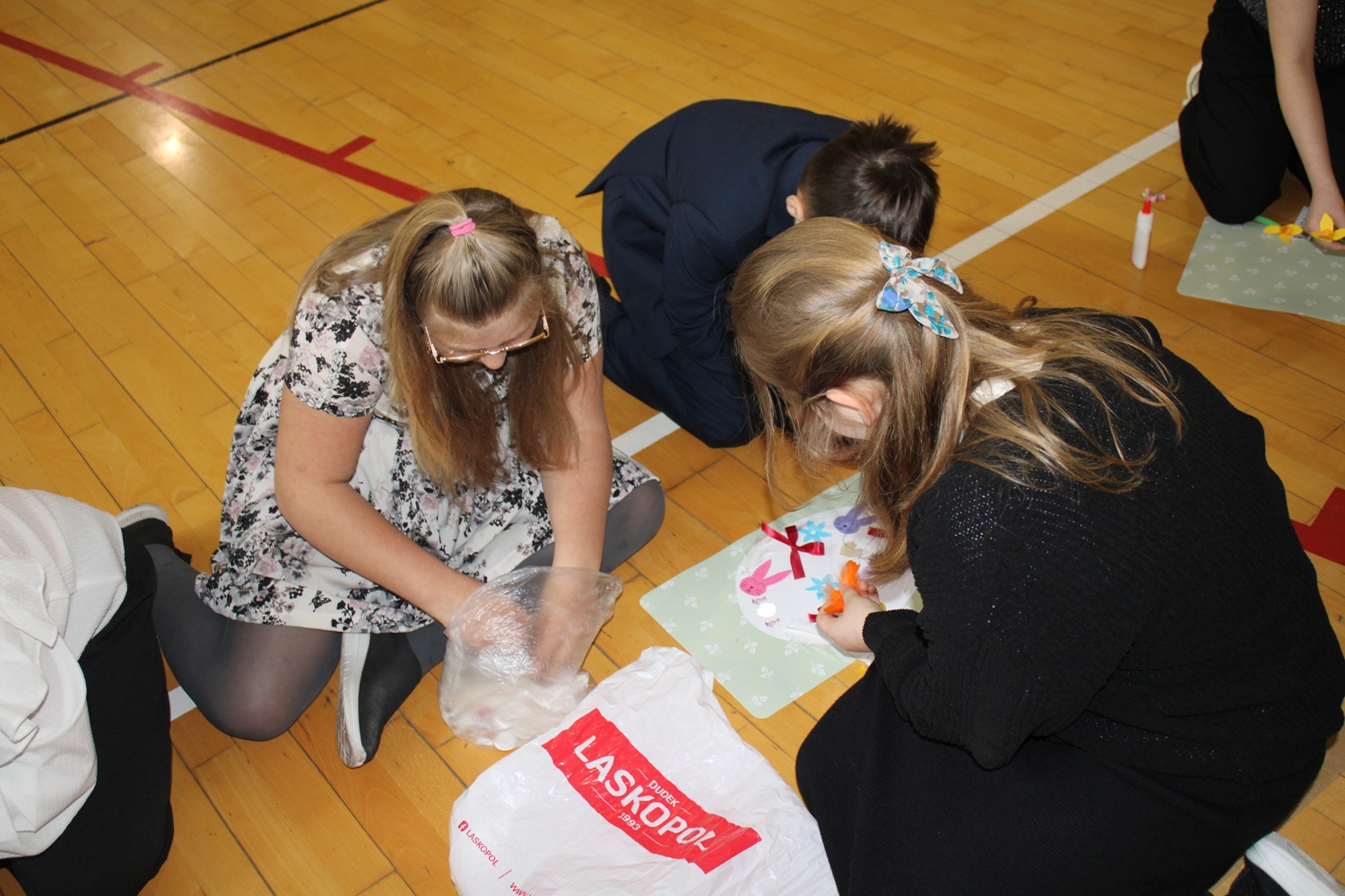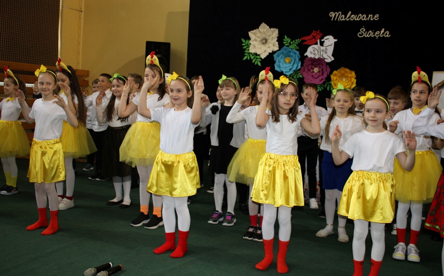Wszystkie klasy brały udział w konkursie na najpiękniejszą pisankę. Przeprowadzono również zgaduj- zgadulę na temat Wielkanocy. Tańczyliśmy z uśmiechem „Kaczuszki”