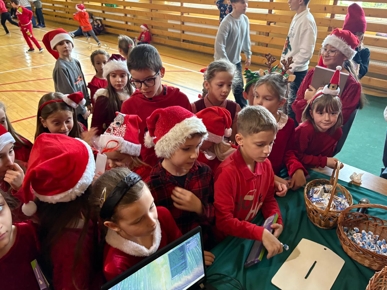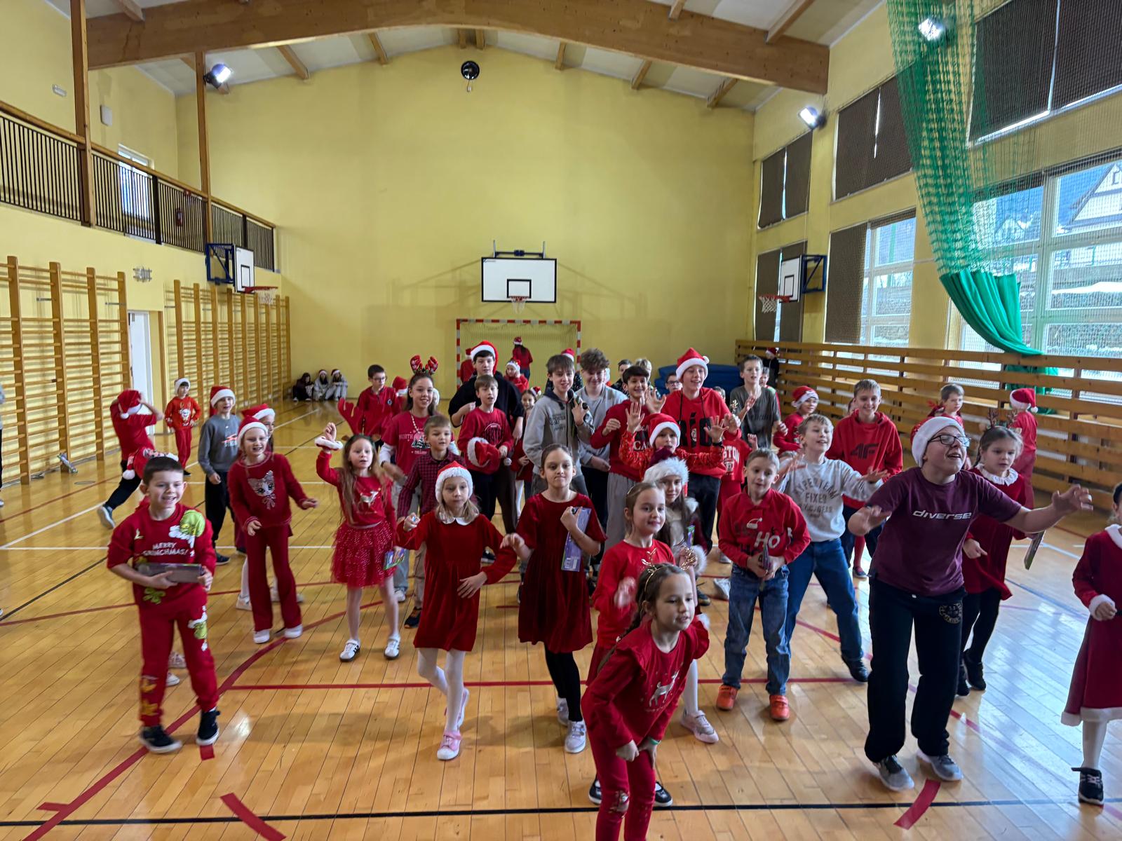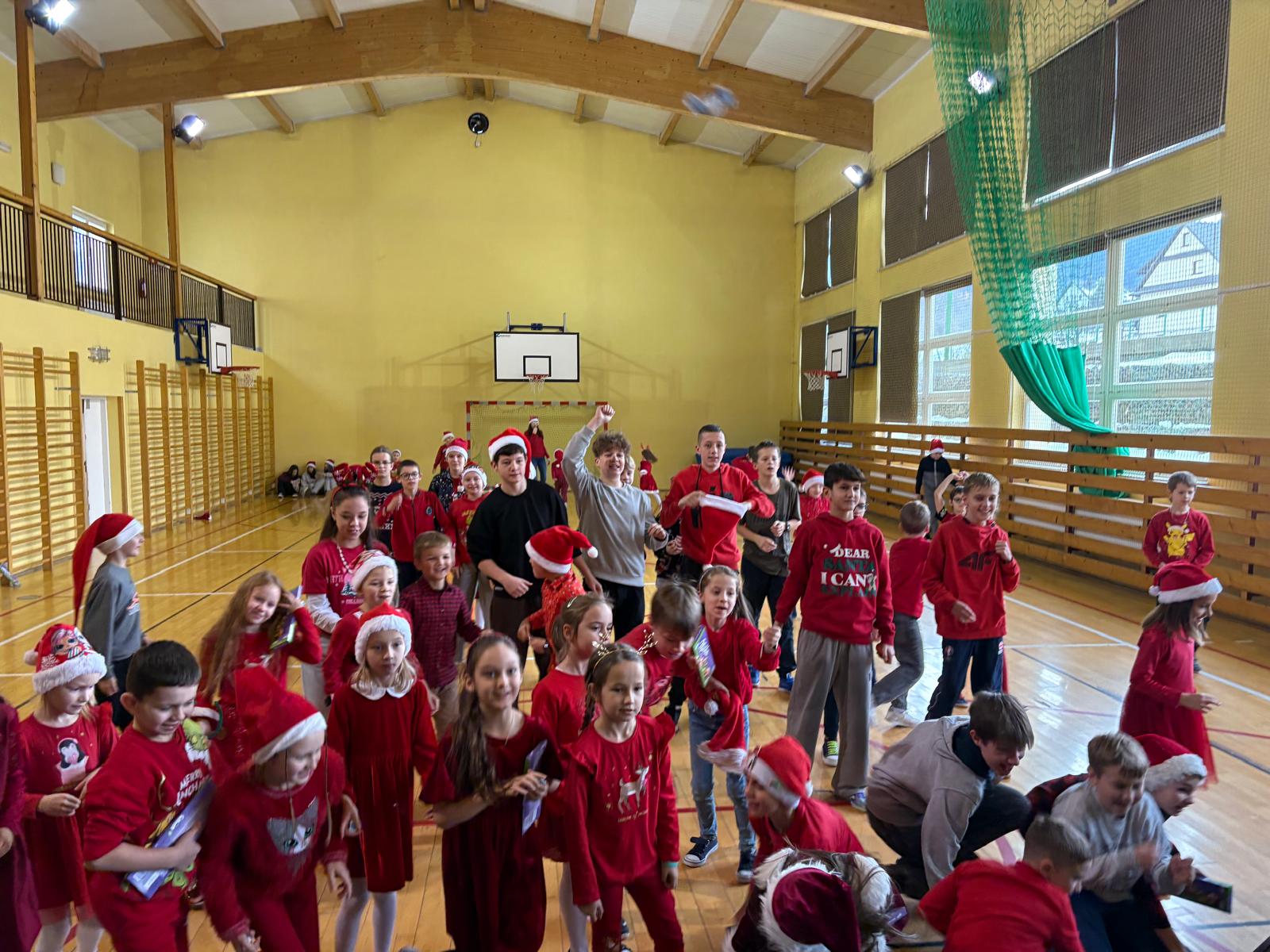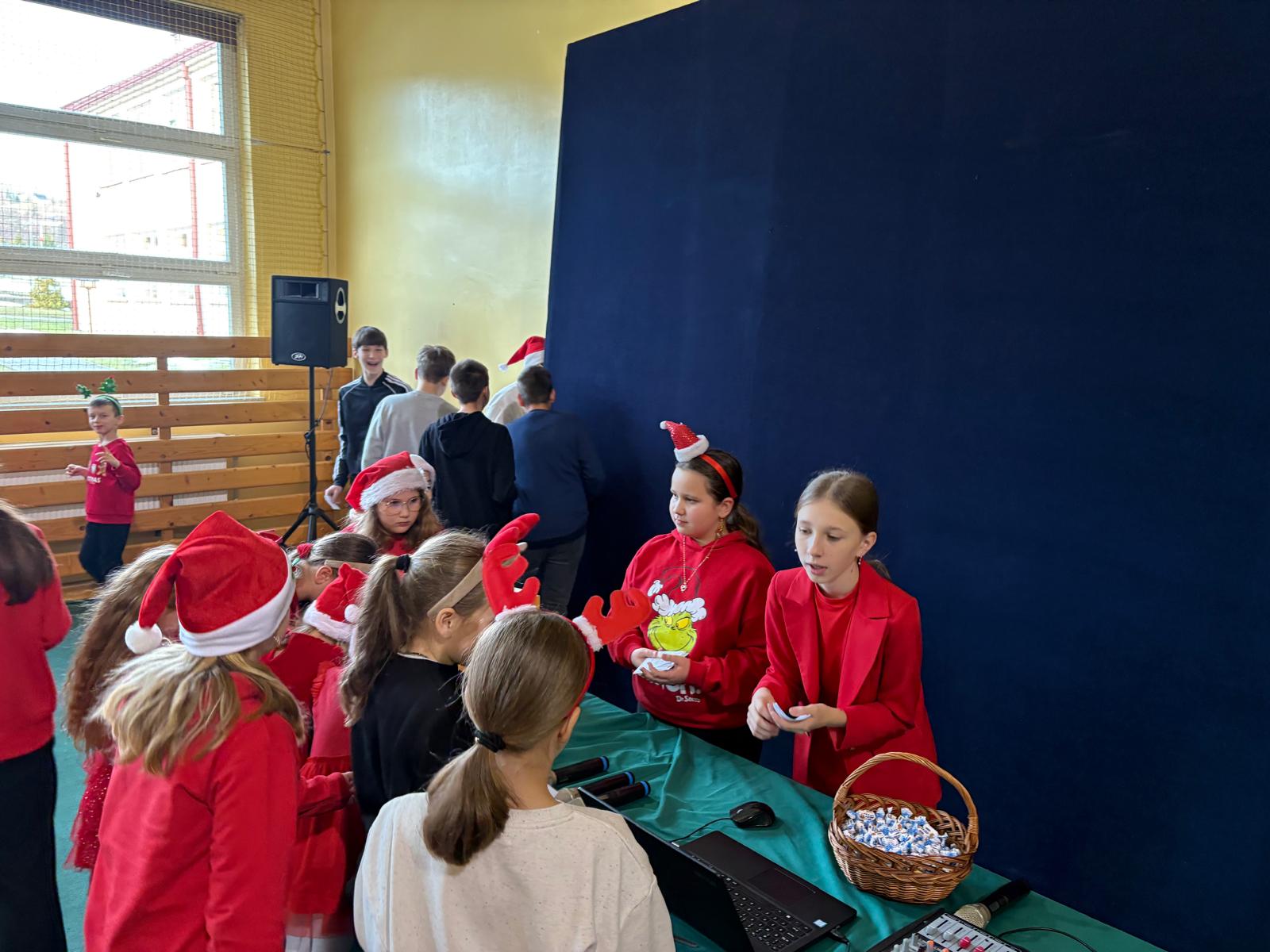 5 grudnia Samorząd Uczniowski zorganizował przerwy międzylekcyjne na sali gimnastycznej. W tym dniu cała społeczność uczniowska mogła posłuchać i potańczyć przy najbardziej znanych i lubianych przebojach świątecznych, które wprowadziły wszystkich w prawdziwie świąteczny nastrój. Dodatkowo na uczniów czekały drobne upominki i coś słodkiego za udział w konkursach i qiuzach wiedzy dotyczących życia Św. Mikołaja. Dziękujemy przedstawicielom Samorządu Uczniowskiego za wspaniałą zabawę, dużą porcję uśmiechu i zadowolenia!