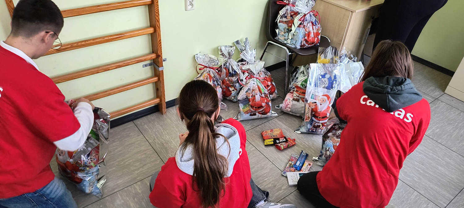 W tym roku szkolnym Szkolne Koło Cartias zorganizowało akcję chartytatywną „Paczka dla przedszkolaka”. Dzięki pomocy wszystkich uczniów, rodziców, nauczycieli oraz pracowników szkoły udało się zebrać fundusze, które zostały przeznaczone na zakup paczek mikołajkowych dla niepełnosprawnych przedszkolaków uczęszczających do Specjalnego Ośrodka Szkolno-Wychowawczego w Kobylance. Uczniowie ze Szkolnego Koła Caritas spakowali wszystkie podarunki, które następnie przekazano pomocnikom Św. Mikołaja, a oni dostarczyli je do dzieci. Bardzo serdecznie dziękujemy wszystkim za zaangażowanie oraz udział w akcji.