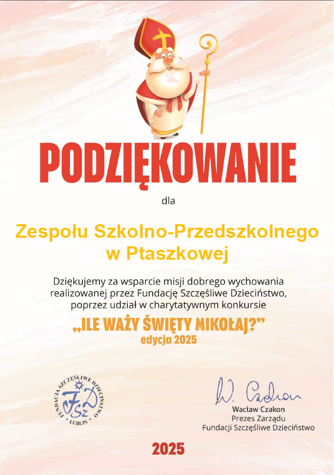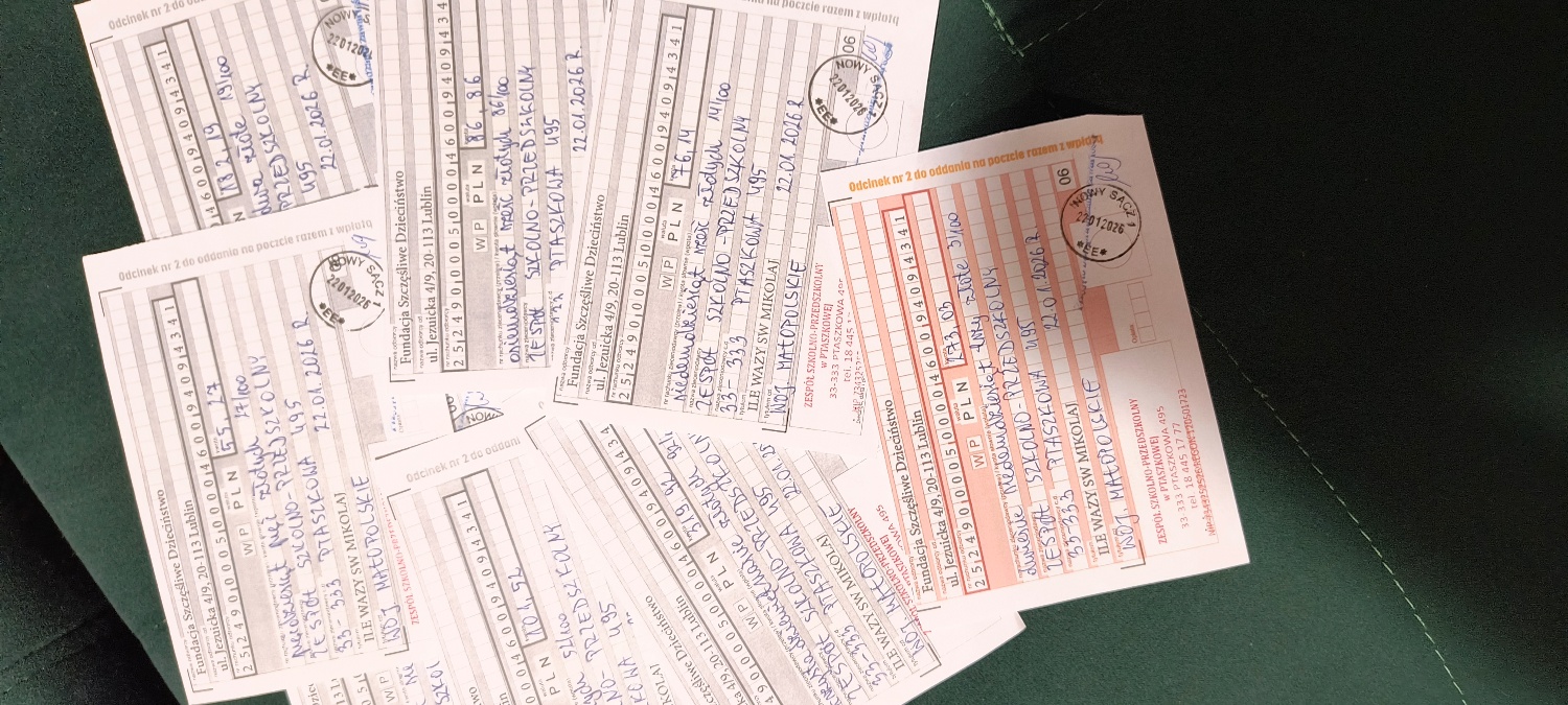 Miło nam poinformować, że akcja charytatywna „Ile waży św. Mikołaj? Edycja 2025” została zakończona i podsumowana. Mikołaj w naszej szkole ważył aż 66,20 kg! Tyle kilogramów monet wspólnie zebraliśmy w całej szkole! Dziękujemy wszystkim, którzy zaangażowali się w akcję i otworzyli swoje serca (i portfele) na pomoc innym. Uczniowie ze Szkolnego Koła „Caritas” zważyli, posortowali i przygotowali monety do wysyłki. Łącznie zebraliśmy 1139,57 zł. Było więc co liczyć i nosić! :) Pieniądze za pośrednictwem Poczty Polskiej zostały wpłacone na konto organizatora akcji - Fundacji Szczęśliwe Dzieciństwo. Ilość zebranych pieniędzy w poszczególnych oddziałach została przeliczona na liczbę uczniów uczęszczających do poszczególnych klas. Na podium uplasowały się następujące klasy: