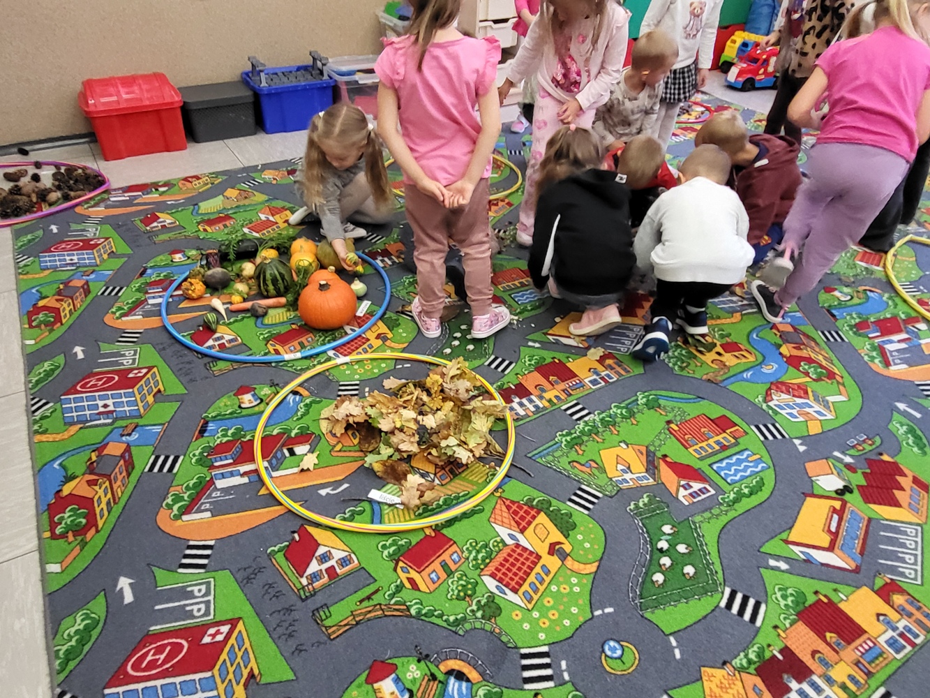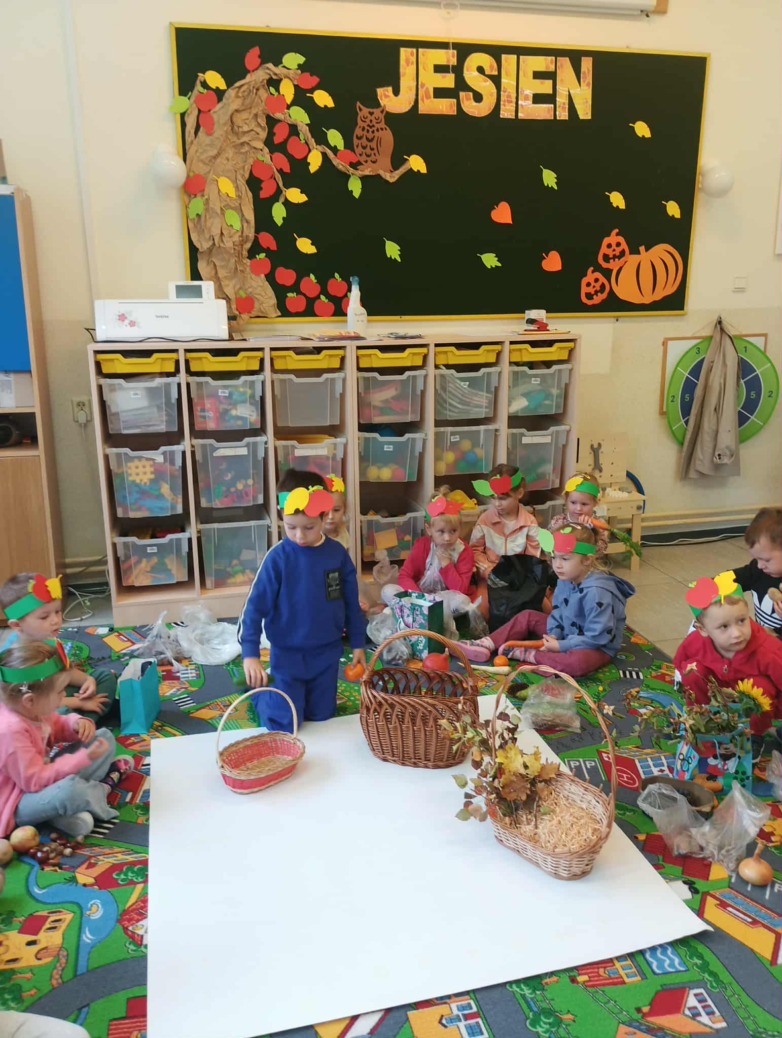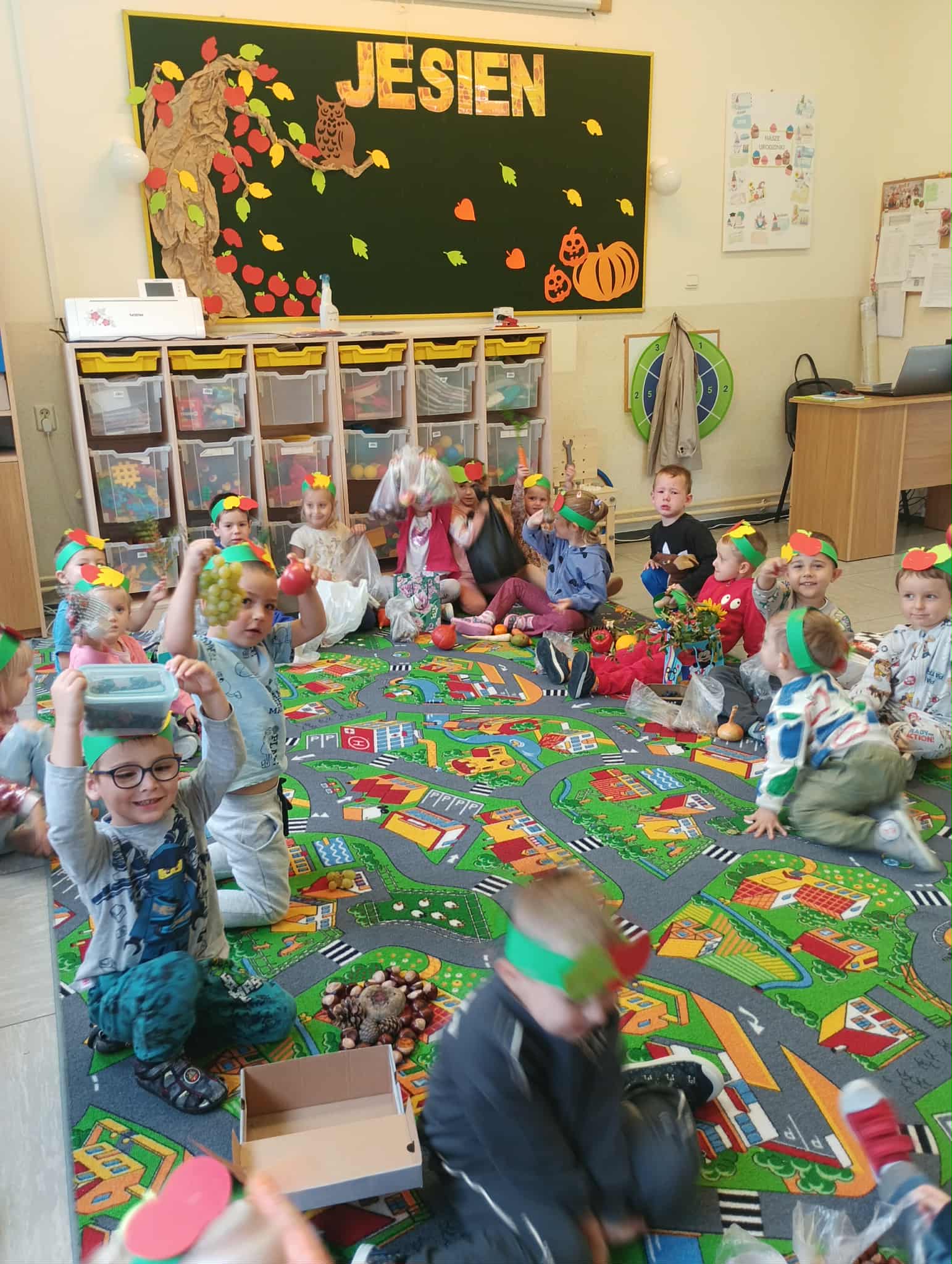 23 września to wyjątkowy dzień - Pierwszy Dzień Jesieni. To kolorowa i urokliwa pora roku. Tego dnia towarzyszyły nam kolory: żółty, brązowy, pomarańczowy, czerwony. Aby lepiej poznać tę porę roku przedszkolaki z wielkim zaciekawieniem oglądały dary od samej Pani Jesieni: kolorowe liście, czerwone jarzębiny, soczyste owoce oraz pachnące warzywa.