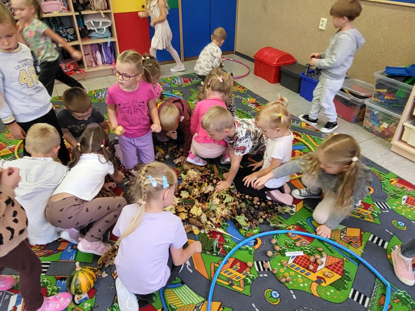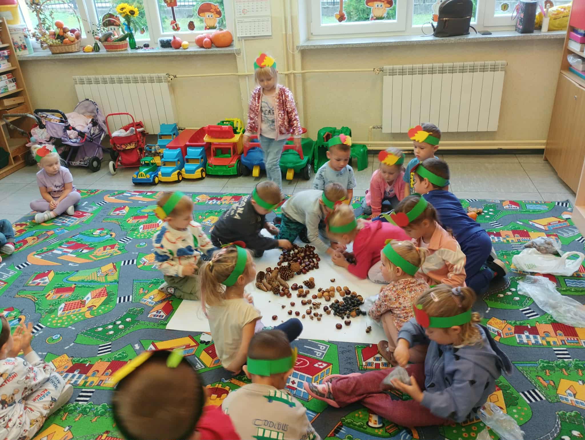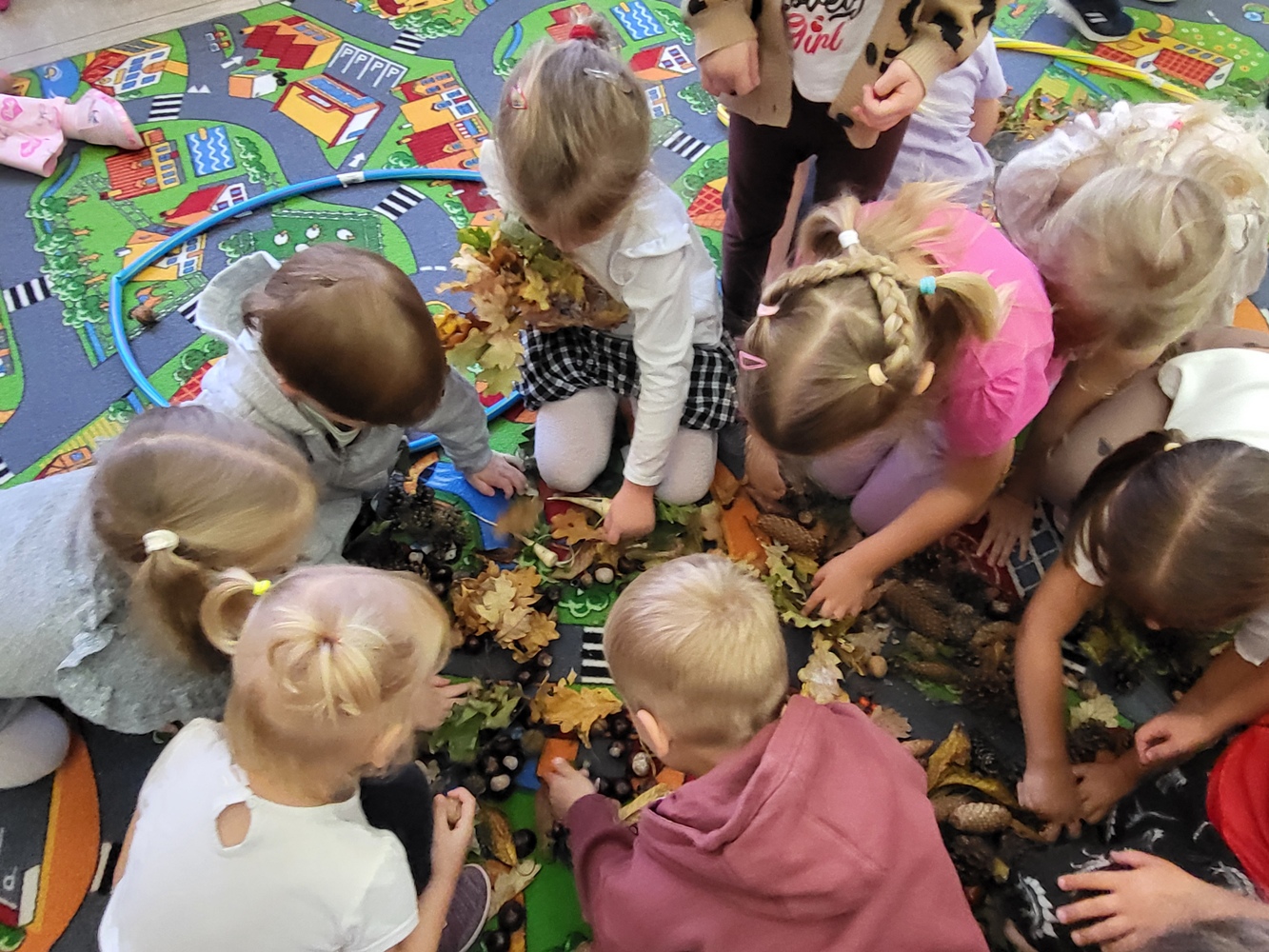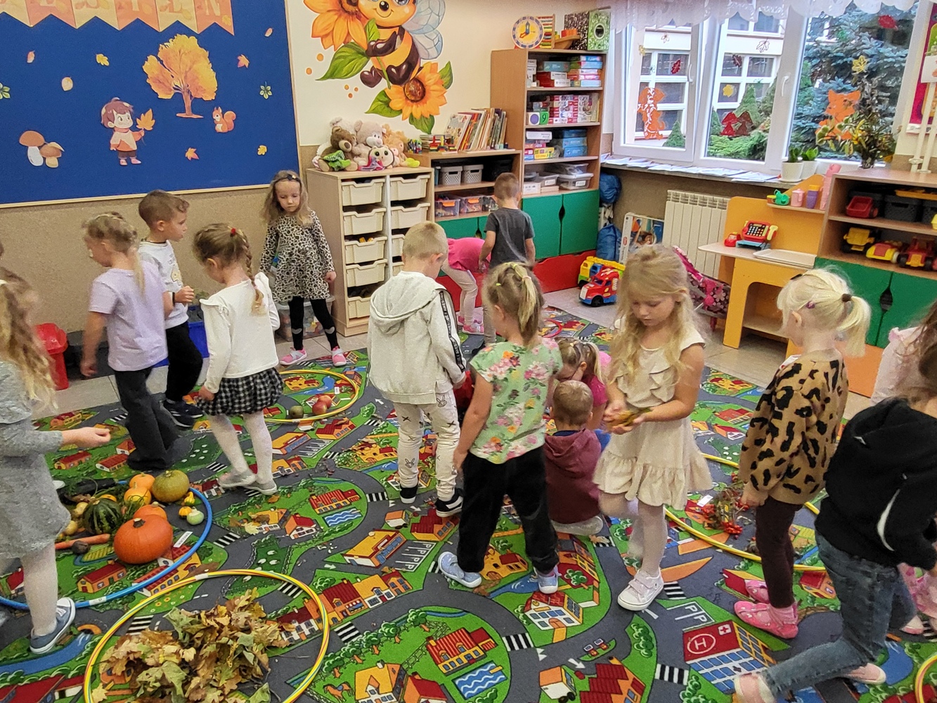23 września to wyjątkowy dzień - Pierwszy Dzień Jesieni. To kolorowa i urokliwa pora roku. Tego dnia towarzyszyły nam kolory: żółty, brązowy, pomarańczowy, czerwony. Aby lepiej poznać tę porę roku przedszkolaki z wielkim zaciekawieniem oglądały dary od samej Pani Jesieni: kolorowe liście, czerwone jarzębiny, soczyste owoce oraz pachnące warzywa.