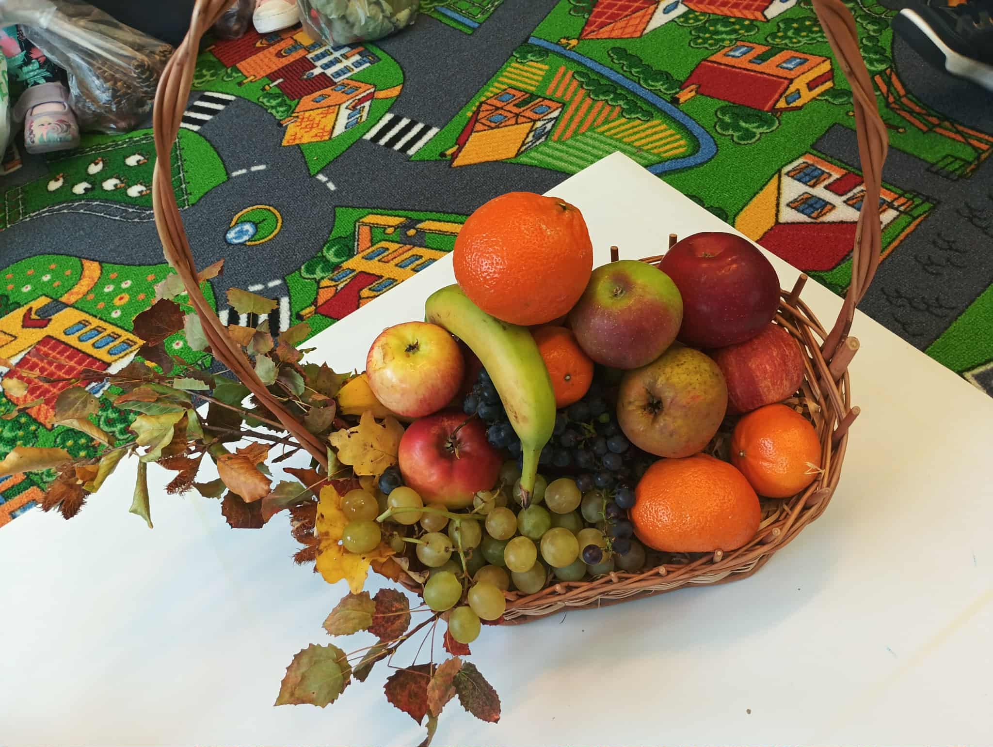 Przedszkolaki segregowały, uczyły się nazw owoców i warzyw. Dzieci mogły dotknąć, powąchać, a nawet degustować wybrane owoce i warzywa.