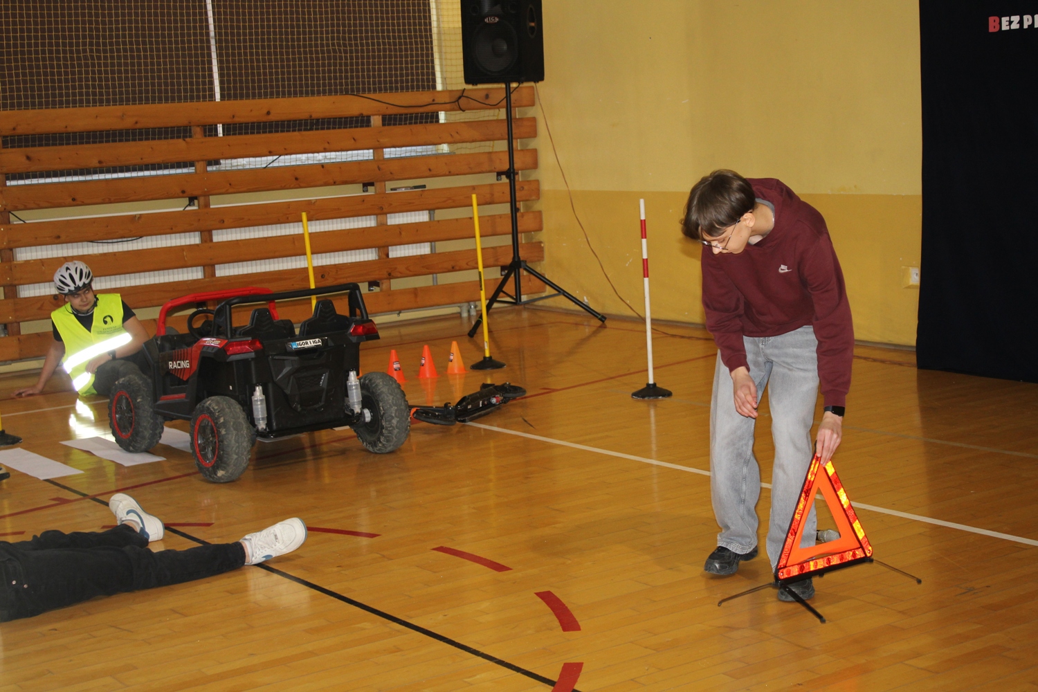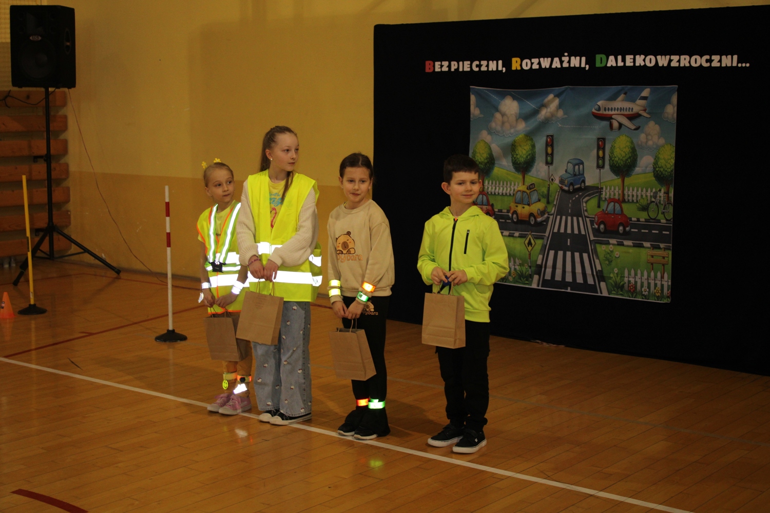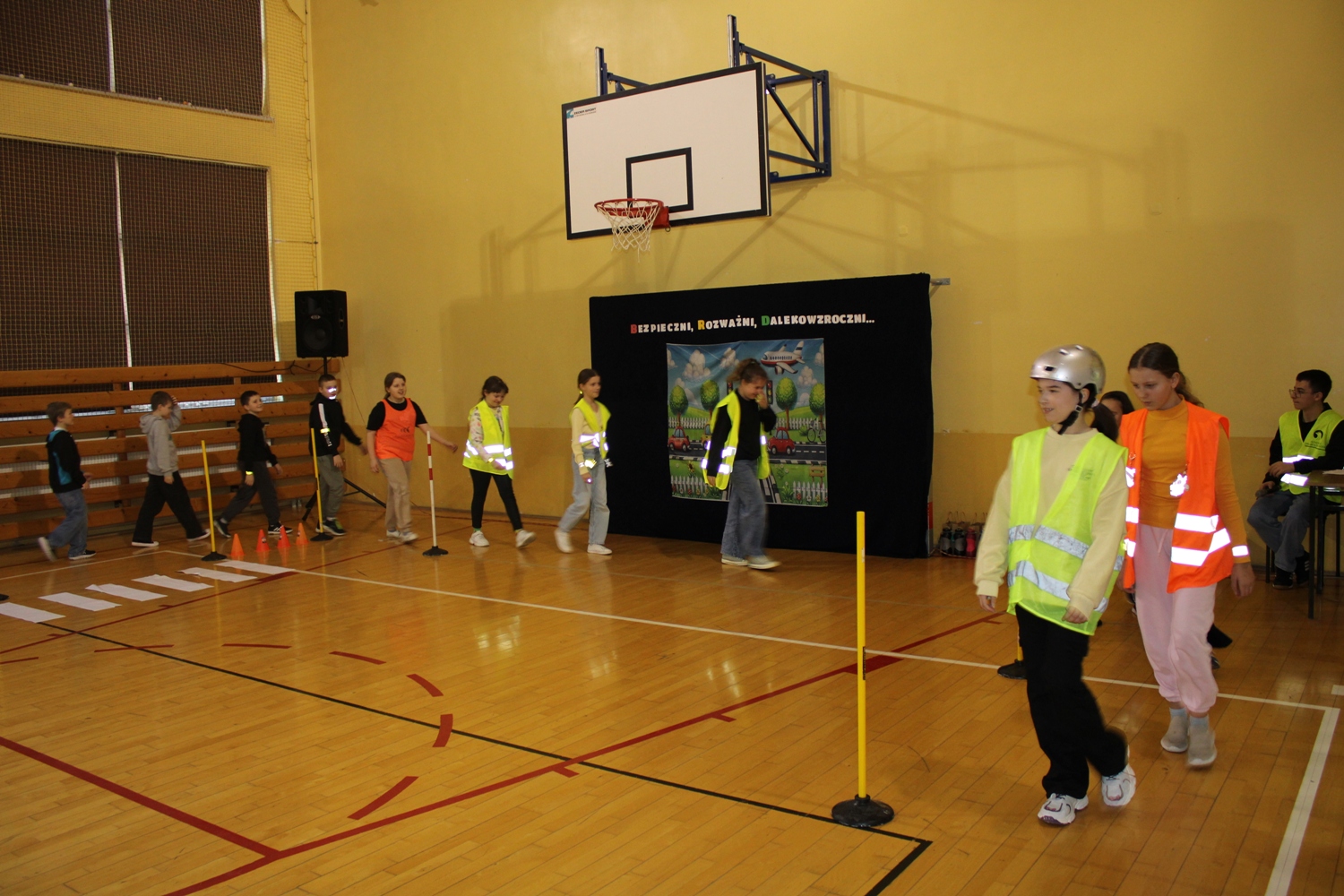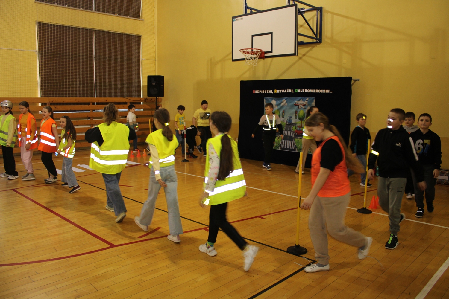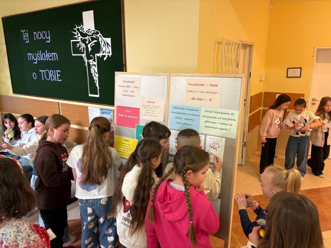 W ramach tygodnia bezpieczeństwa przygotowano wiele atrakcyjnych działań i konkursów dostosowanych do wieku uczniów. Najmłodsi uczniowie klas I–III uczestniczyli w quizach i zabawach edukacyjnych dotyczących znaków drogowych, zasad przechodzenia przez jezdnię oraz bezpiecznego zachowania się na drodze. Dużym zainteresowaniem cieszyły się rebusy o tematyce drogowej, które w ciekawy sposób utrwalały wiedzę dzieci. Odbył się również konkurs plastyczny pt. „Jestem widoczny, jestem bezpieczny”.
