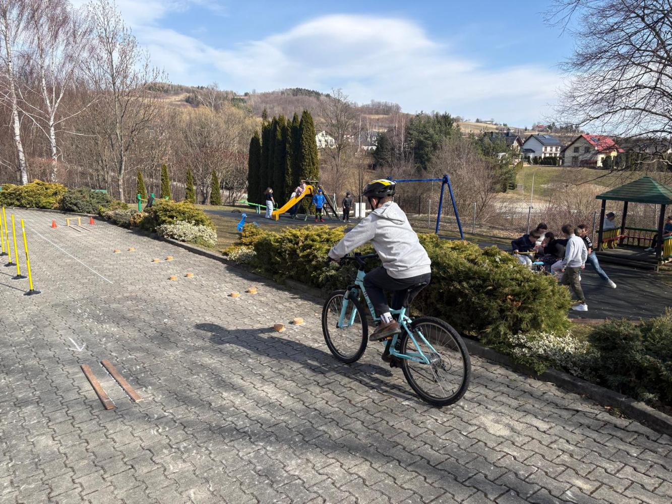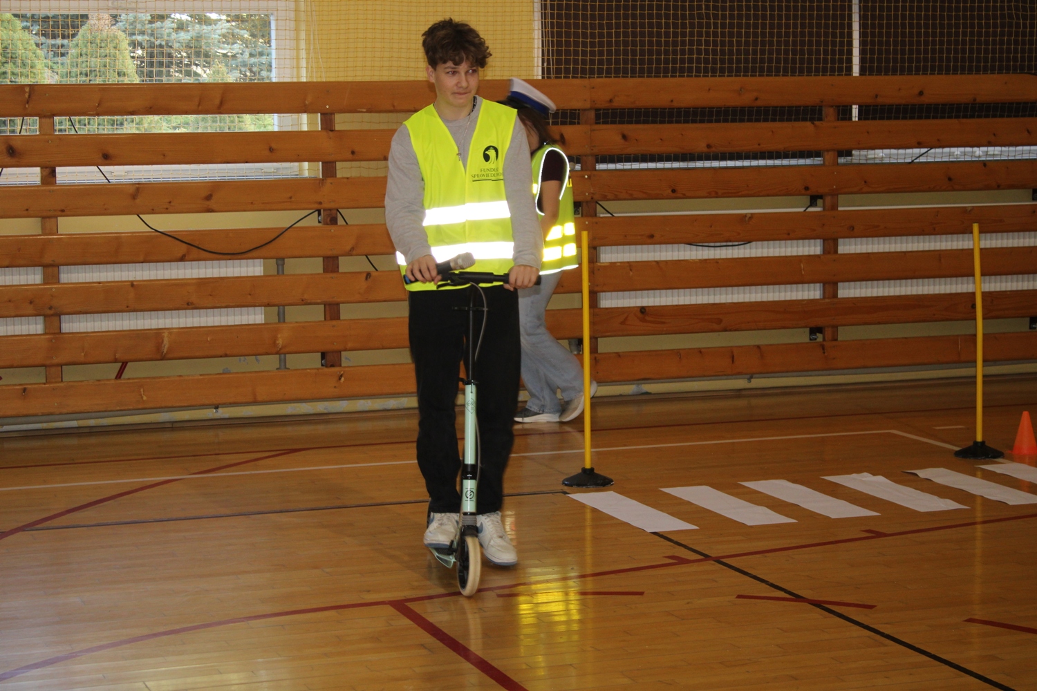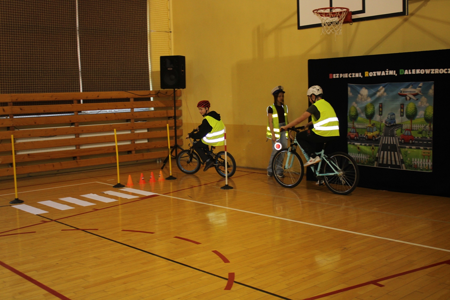 Uczniowie starszych klas brali udział w konkursach wiedzy o ruchu drogowym, rozwiązywali testy oraz zadania sprawdzające znajomość przepisów. Dodatkowo pokazywali swoje umiejętności z jazdy na rowerze na specjalnie przygotowanej trasie z przeszkodami. Zorganizowano także konkurs plastyczny, w którym uczniowie mogli przedstawić swoje pomysły na bezpieczne zachowanie na drodze oraz przygotować grę planszową o ruchu drogowym.