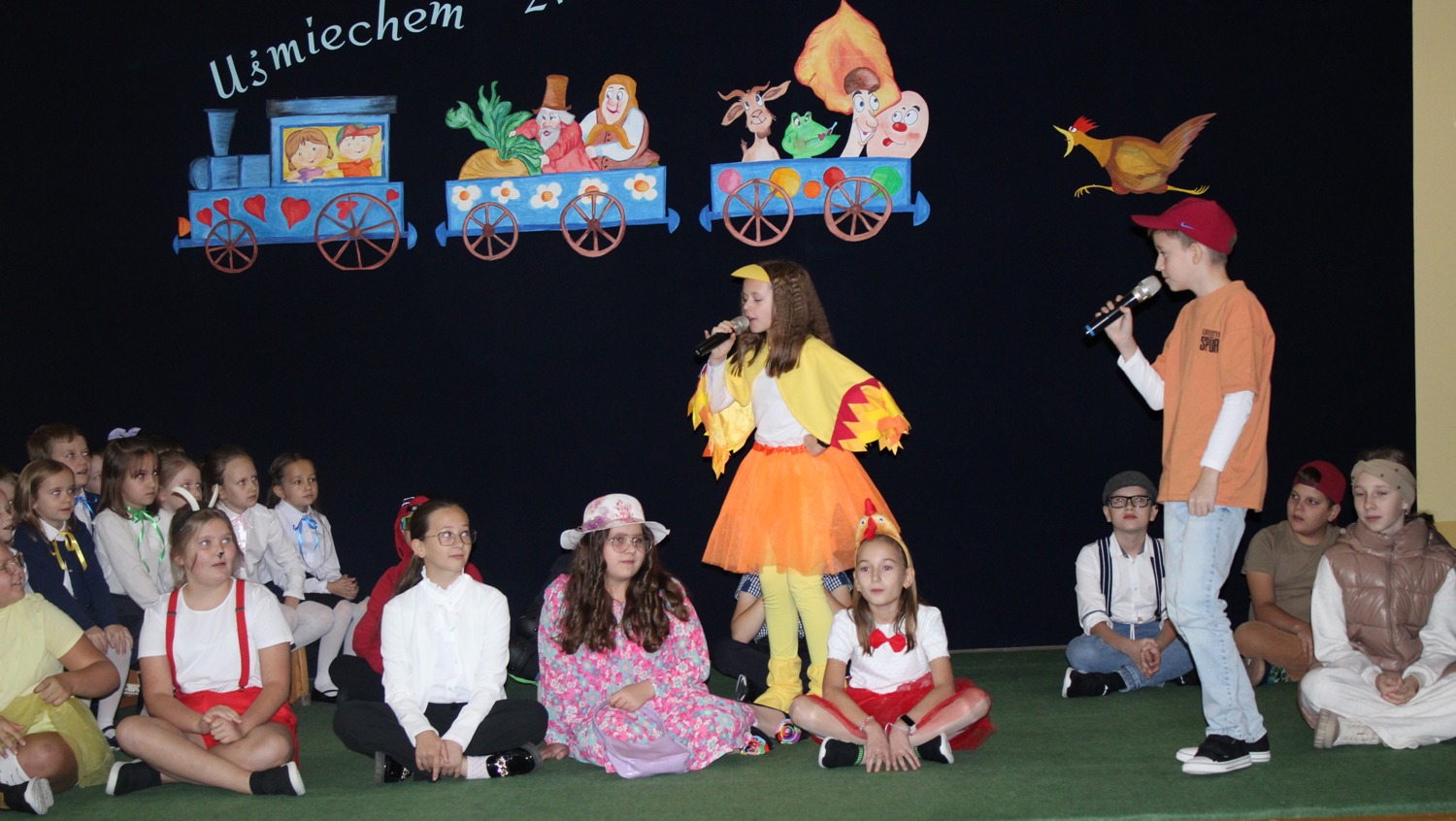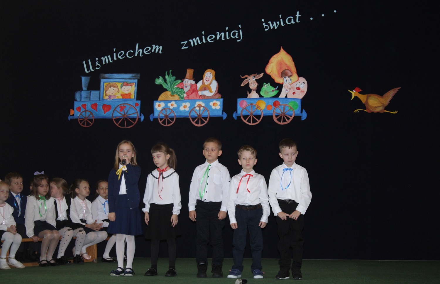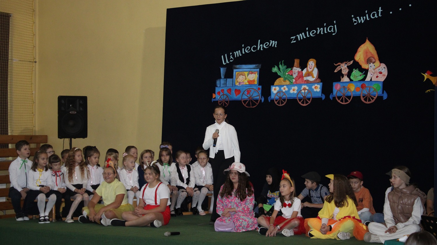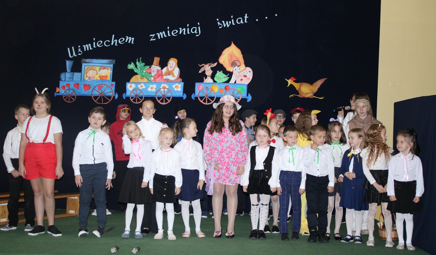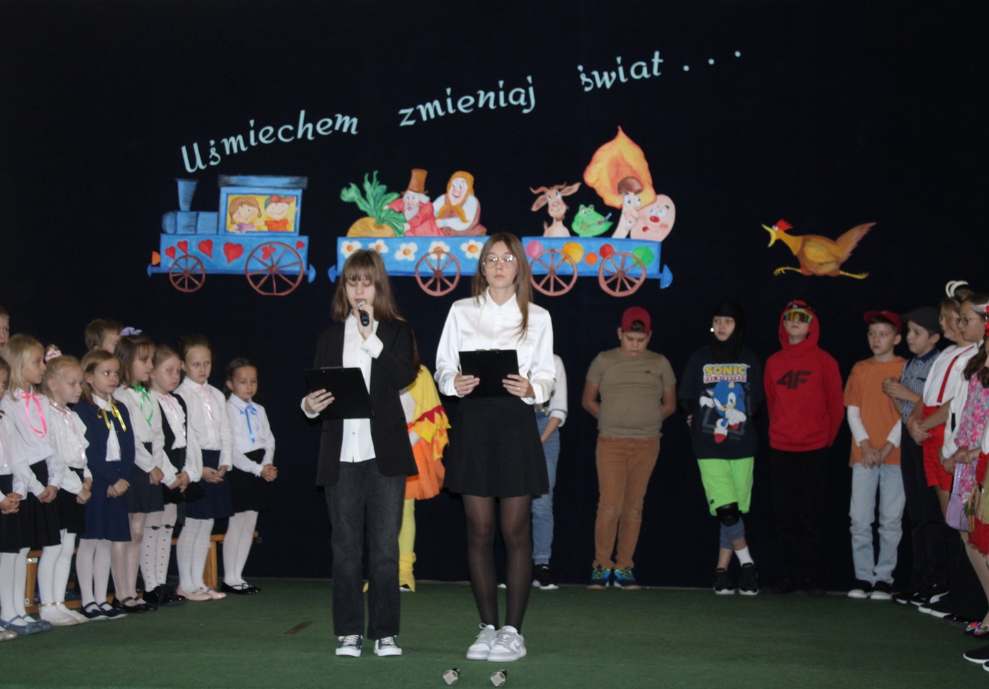 Na scenie wystąpili uczniowie klasy piątej i ósmej. Wprowadzili zebranych w cudowny, fantastyczny świat baśni i bajek. Udowodnili, że warto marzyć, mieć plany na przyszłość, rozwijać swoje talenty, a czytanie książek, to sposób na pobudzanie wyobraźni. Przypomnieli twórczość Jana Brzechwy.