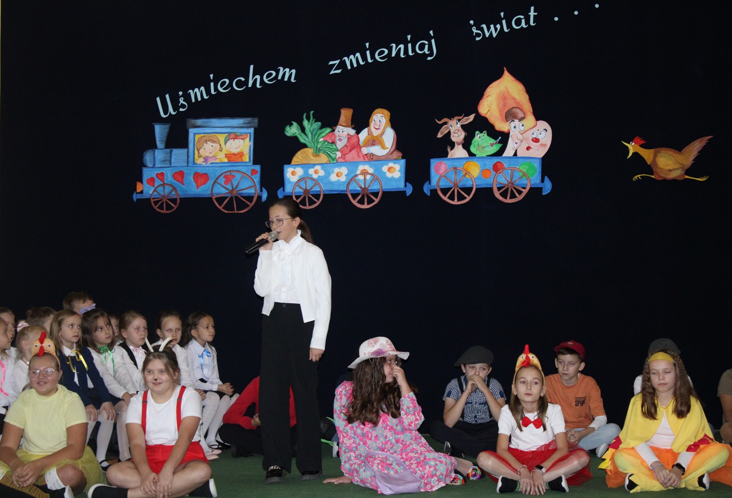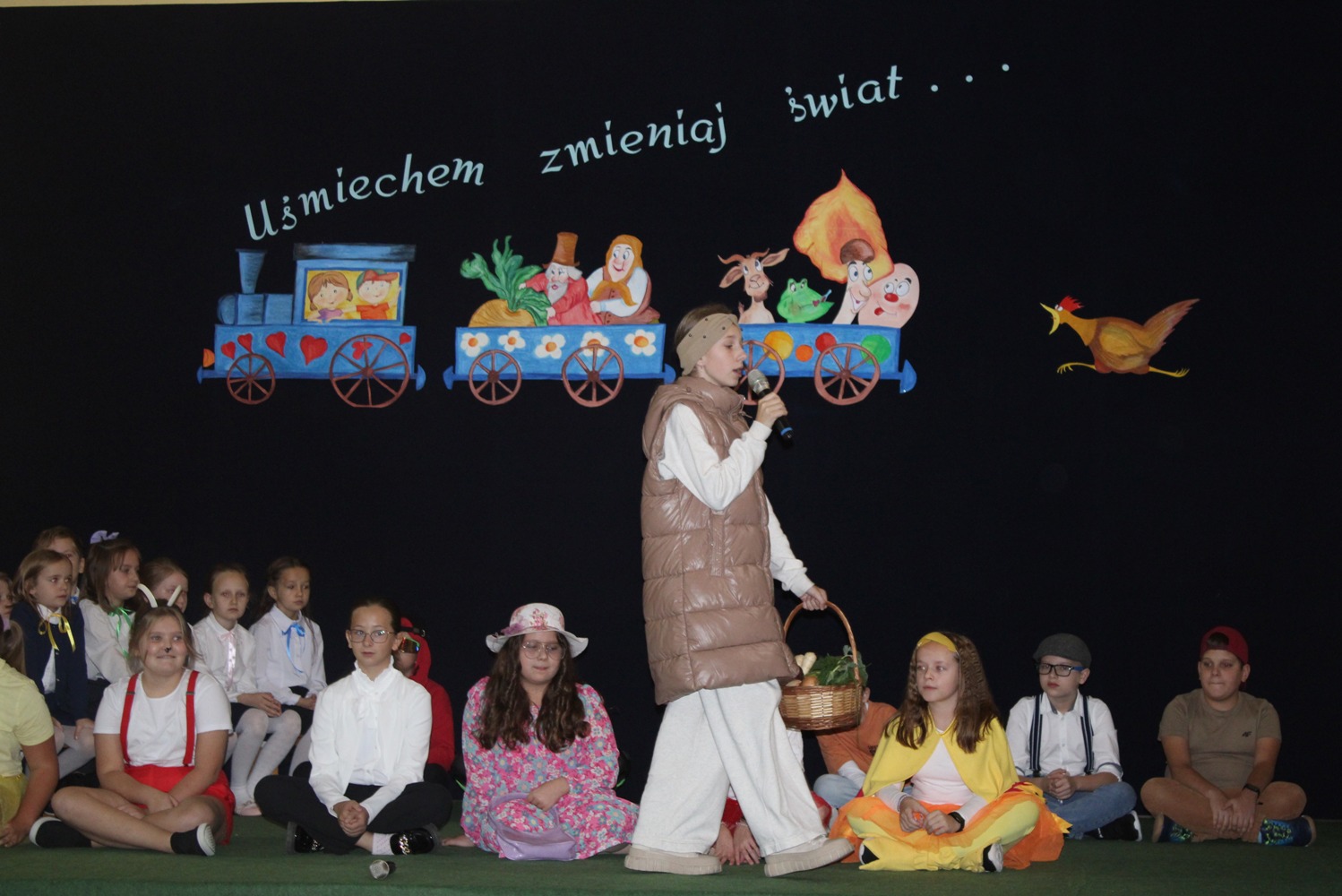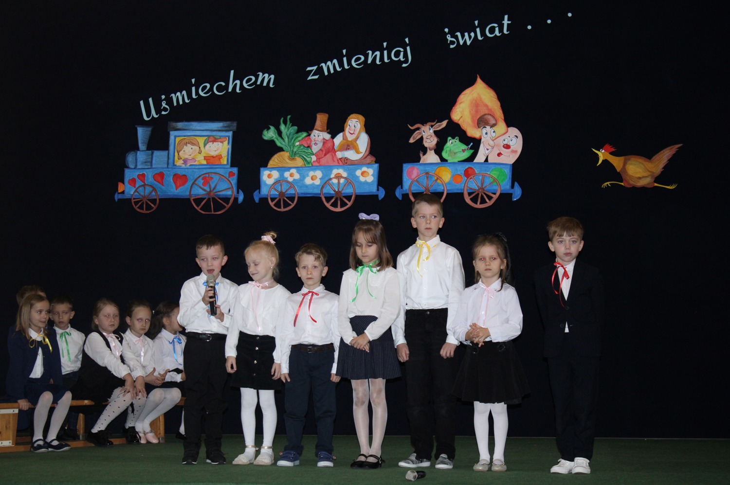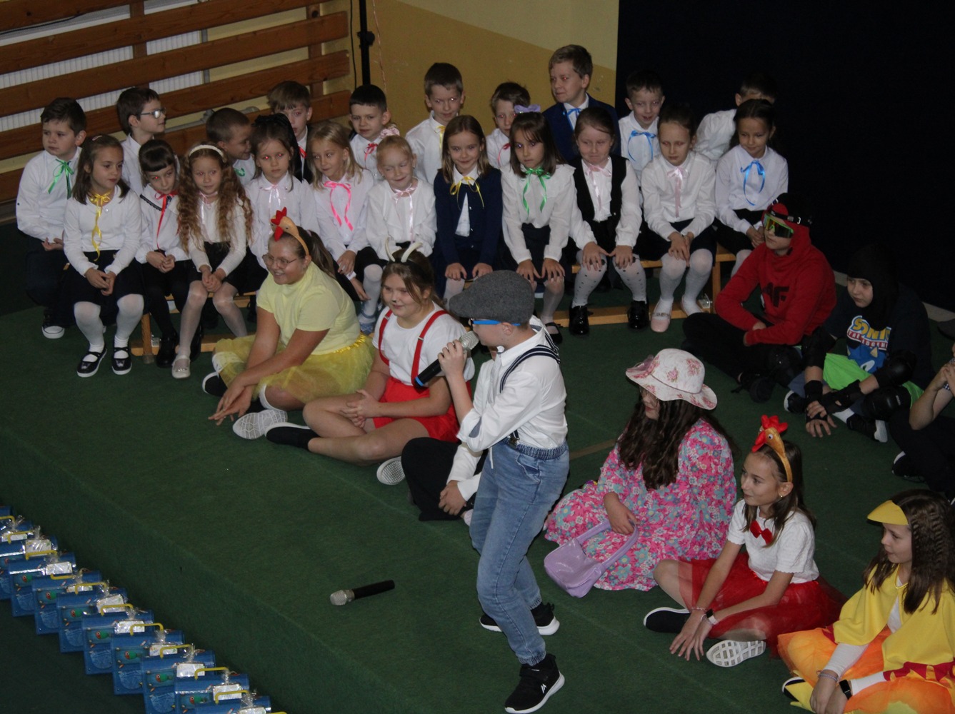 Na scenie wystąpili uczniowie klasy piątej i ósmej. Wprowadzili zebranych w cudowny, fantastyczny świat baśni i bajek. Udowodnili, że warto marzyć, mieć plany na przyszłość, rozwijać swoje talenty, a czytanie książek, to sposób na pobudzanie wyobraźni. Przypomnieli twórczość Jana Brzechwy.