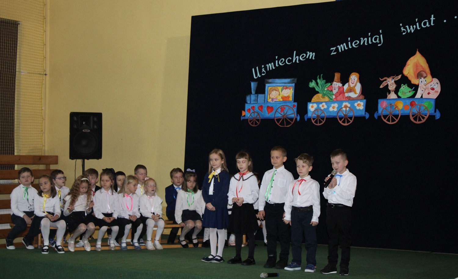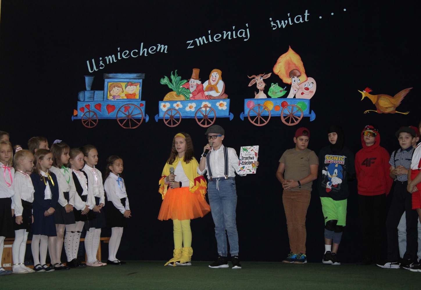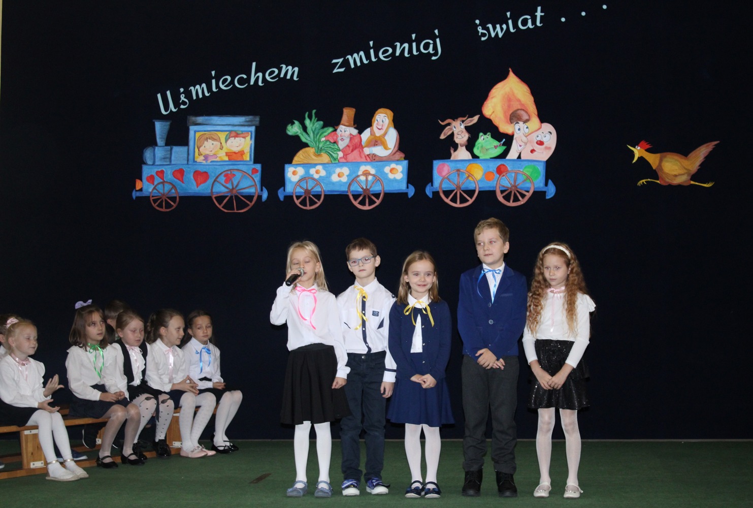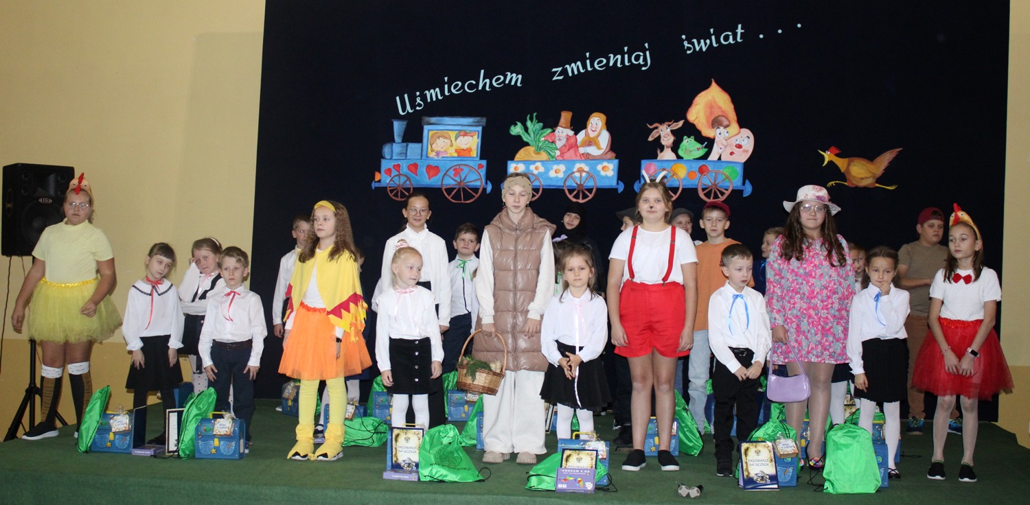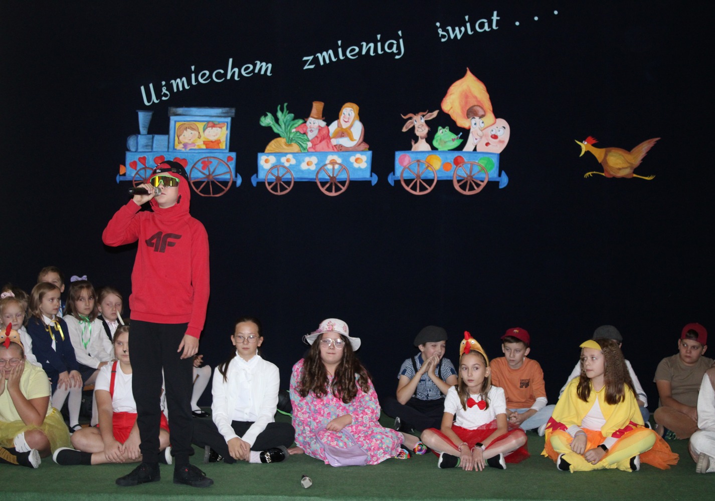 Na scenie wystąpili uczniowie klasy piątej i ósmej. Wprowadzili zebranych w cudowny, fantastyczny świat baśni i bajek. Udowodnili, że warto marzyć, mieć plany na przyszłość, rozwijać swoje talenty, a czytanie książek, to sposób na pobudzanie wyobraźni. Przypomnieli twórczość Jana Brzechwy.