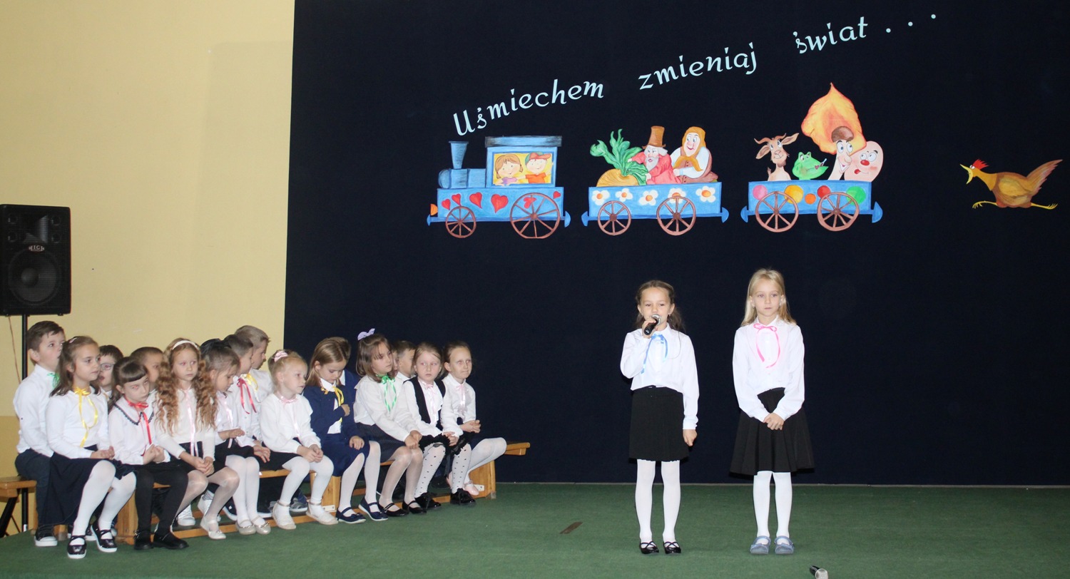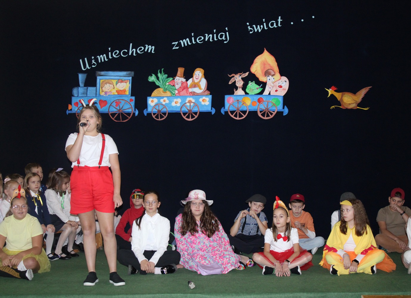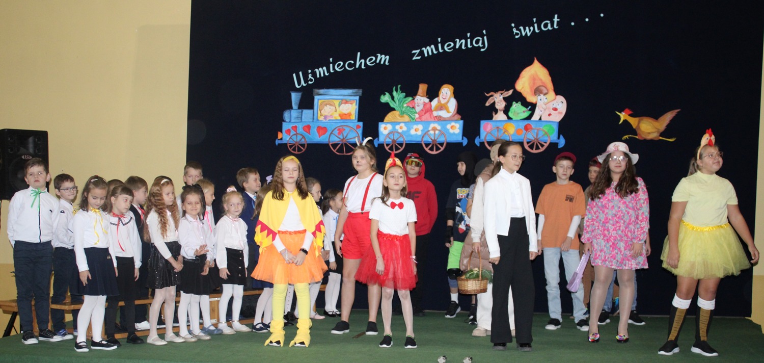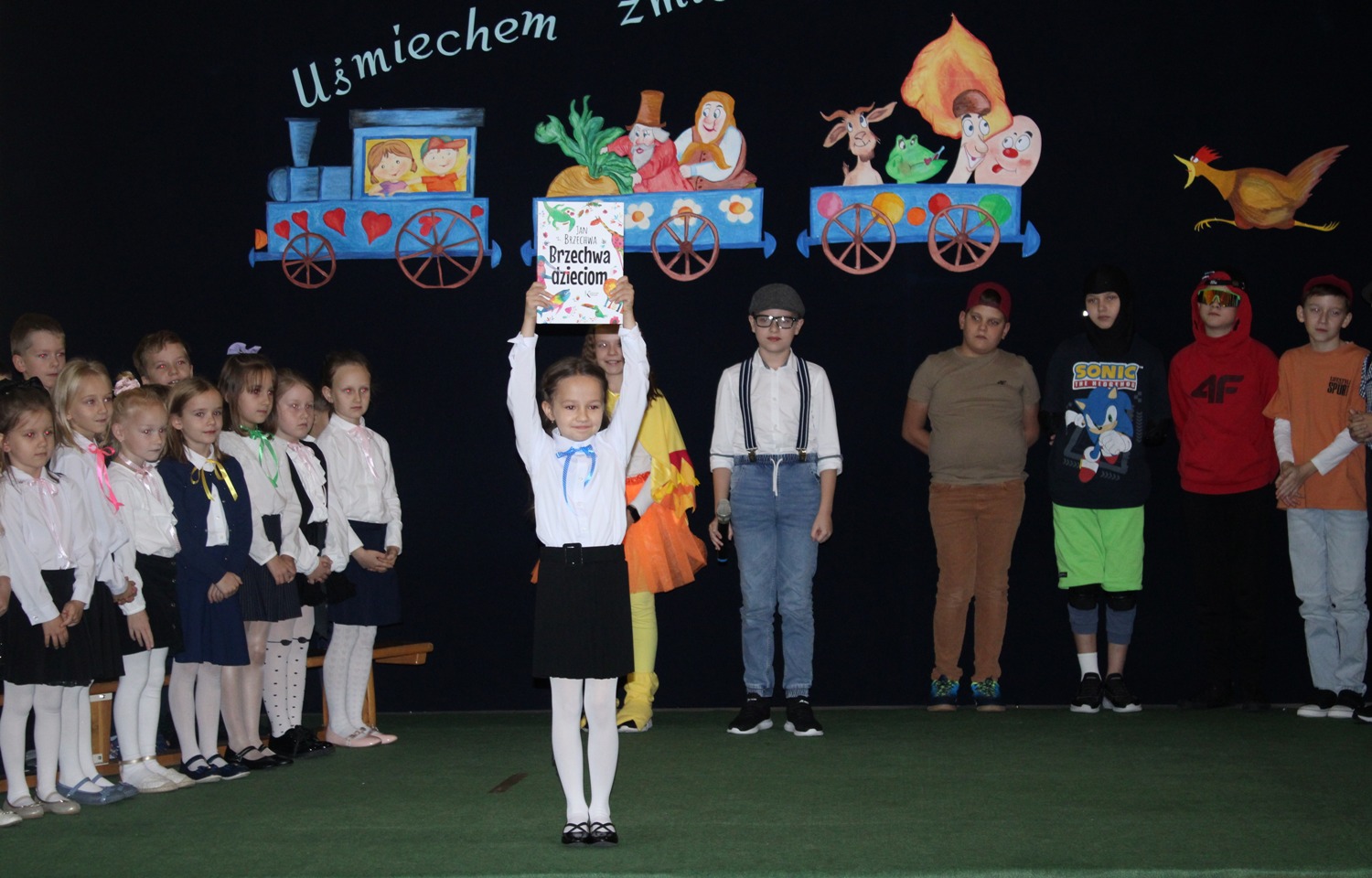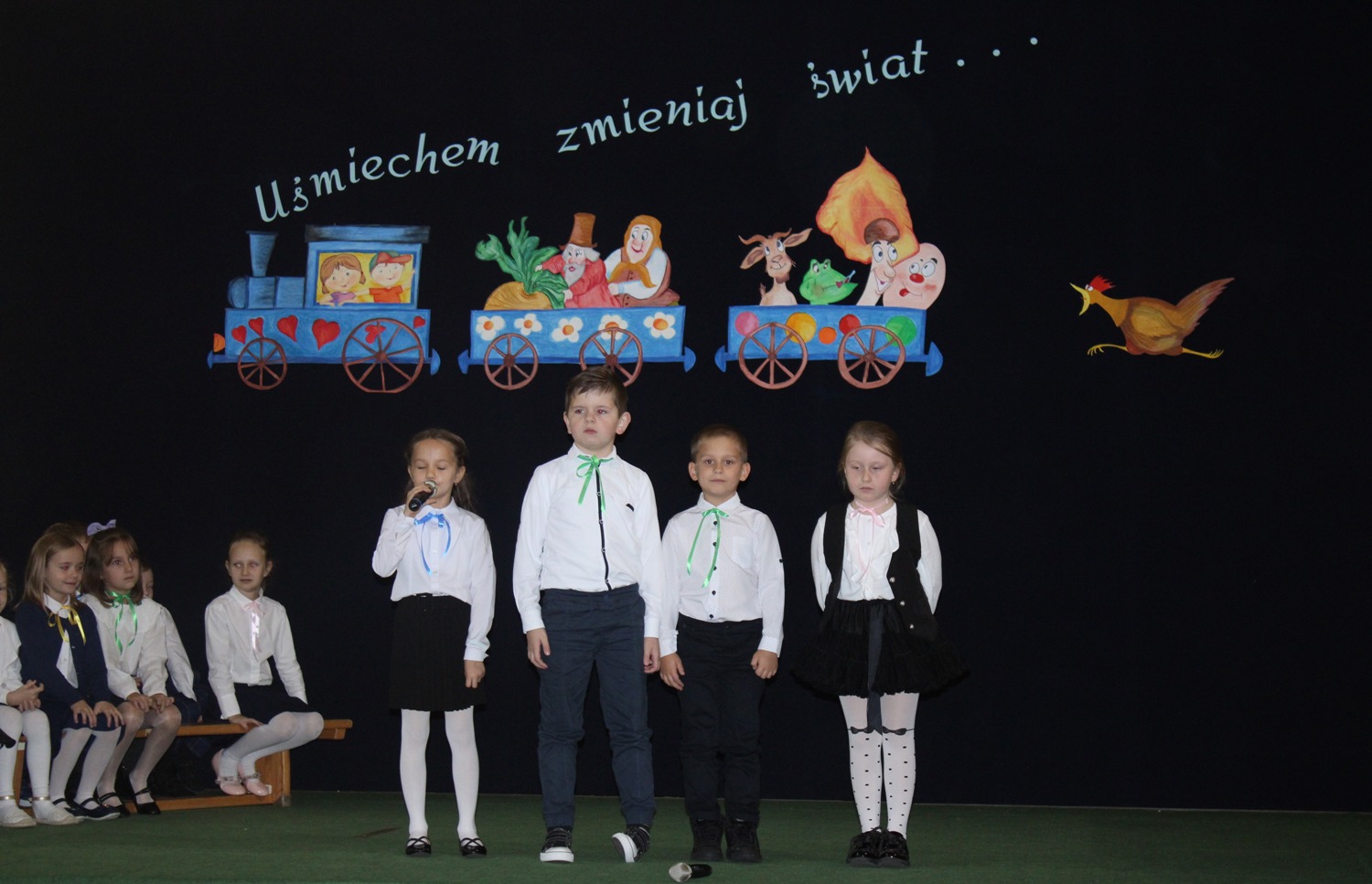 Na scenie wystąpili uczniowie klasy piątej i ósmej. Wprowadzili zebranych w cudowny, fantastyczny świat baśni i bajek. Udowodnili, że warto marzyć, mieć plany na przyszłość, rozwijać swoje talenty, a czytanie książek, to sposób na pobudzanie wyobraźni. Przypomnieli twórczość Jana Brzechwy.