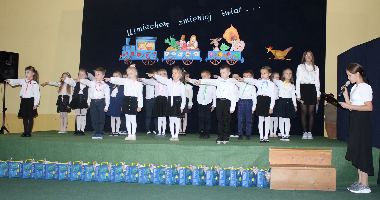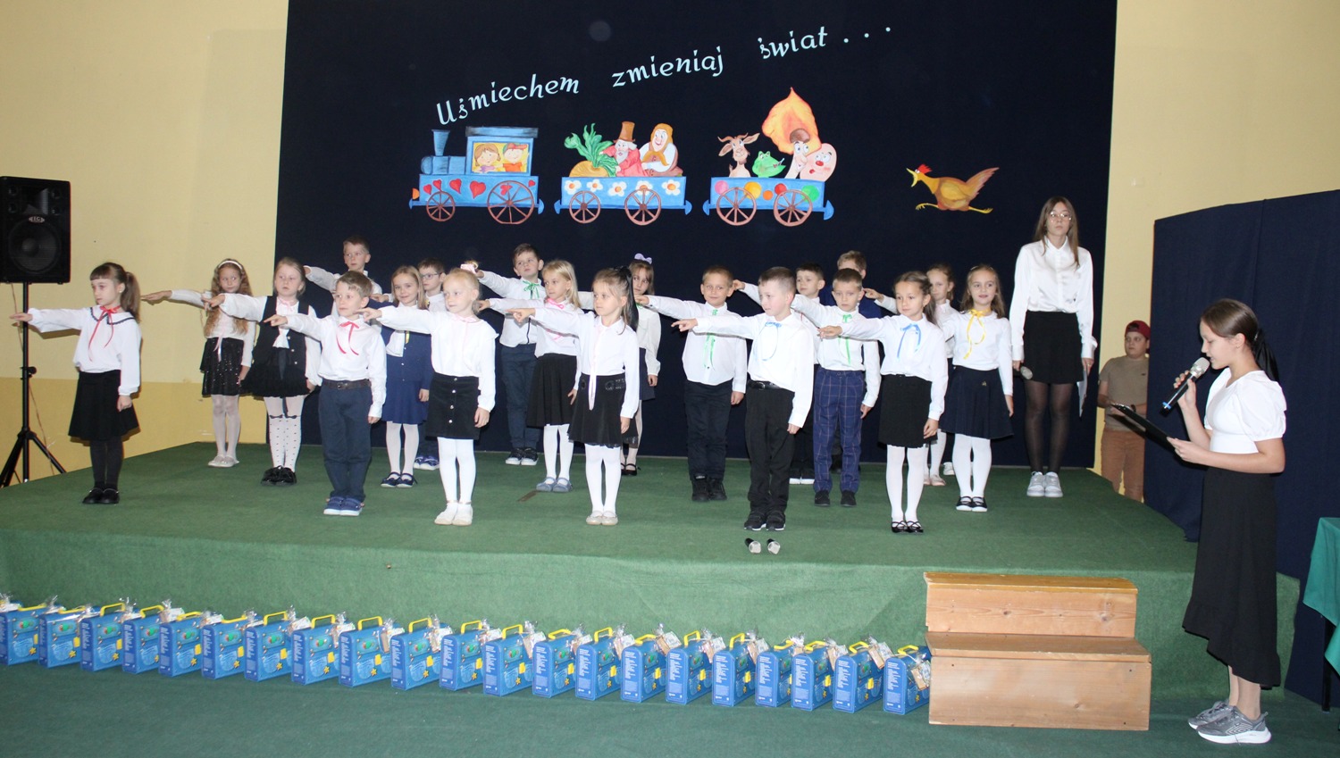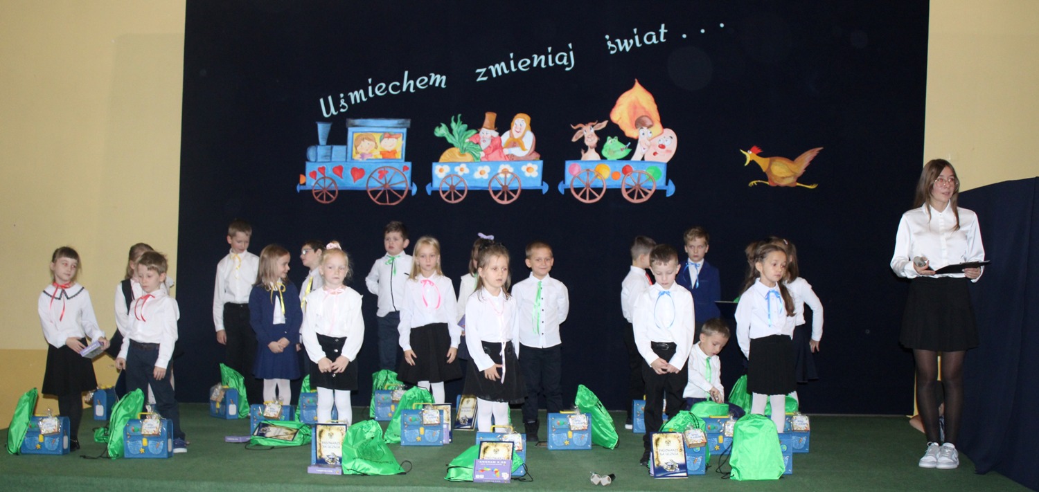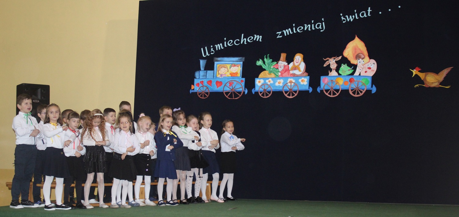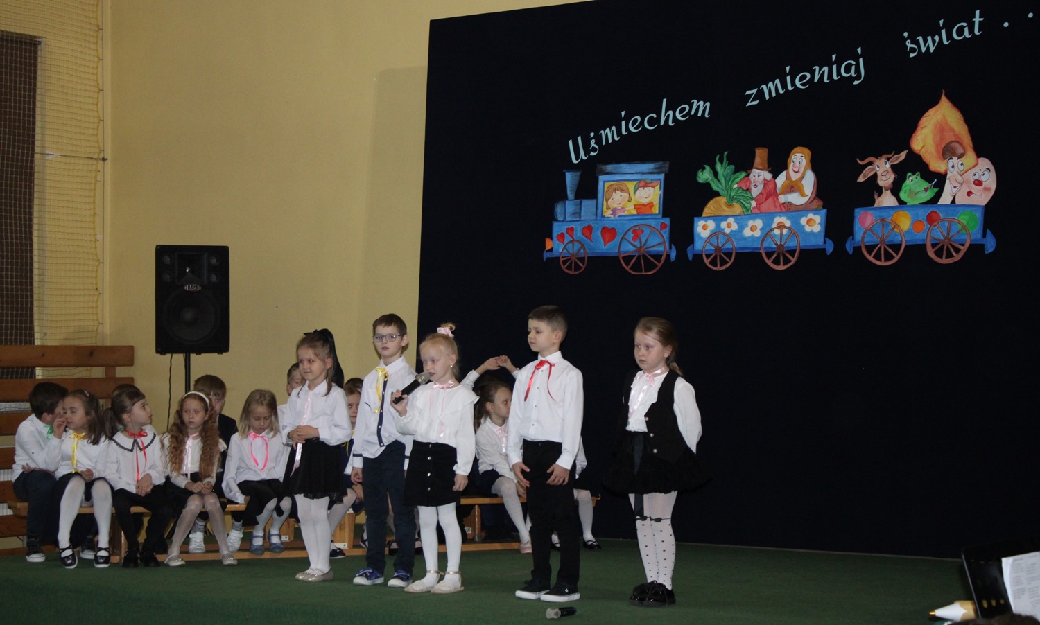 Na scenie wystąpili uczniowie klasy piątej i ósmej. Wprowadzili zebranych w cudowny, fantastyczny świat baśni i bajek. Udowodnili, że warto marzyć, mieć plany na przyszłość, rozwijać swoje talenty, a czytanie książek, to sposób na pobudzanie wyobraźni. Przypomnieli twórczość Jana Brzechwy.