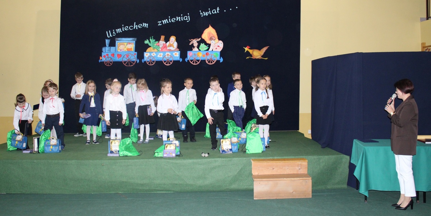 Wszystkie pierwszaki otrzymały dyplomy oraz upominki od Pana Wójta, Pani wychowawczyni i rodziców.