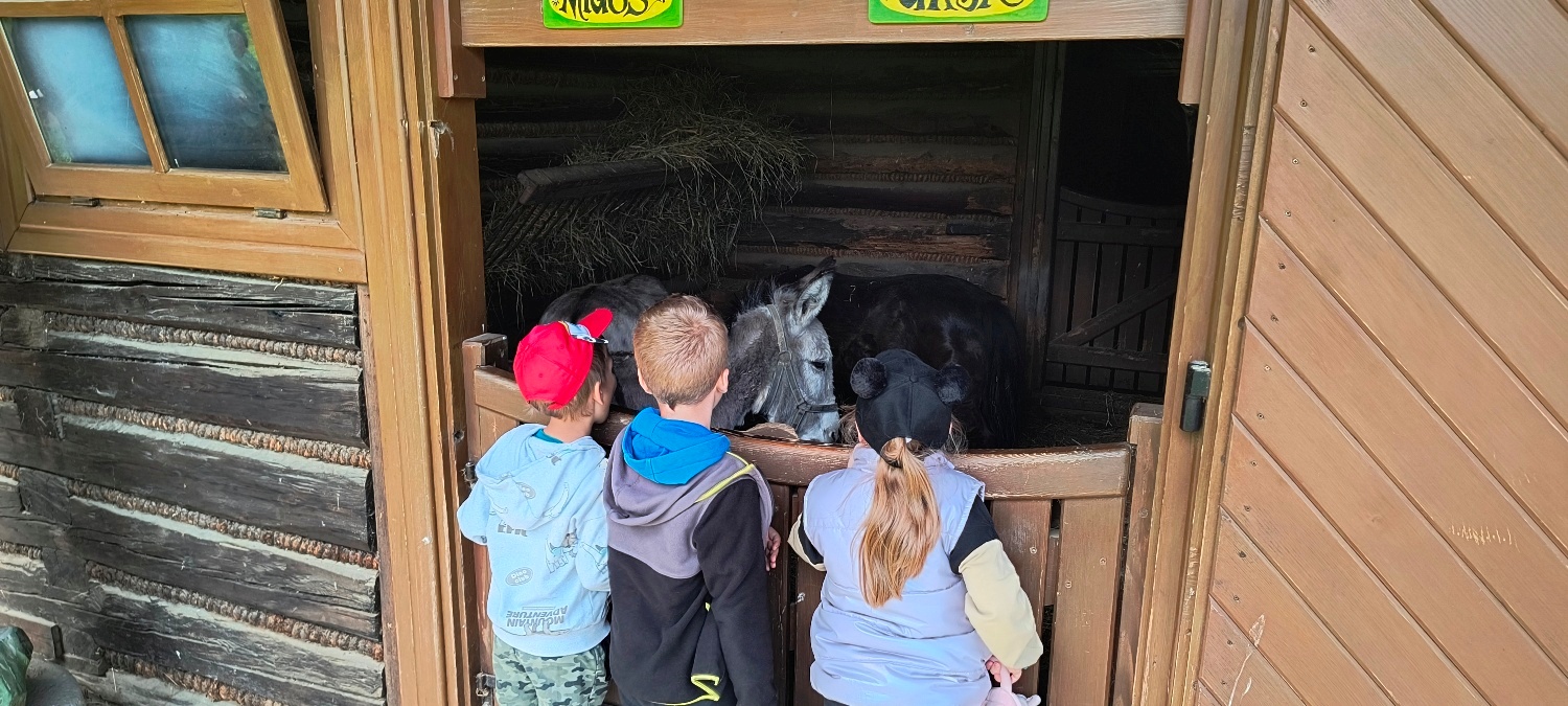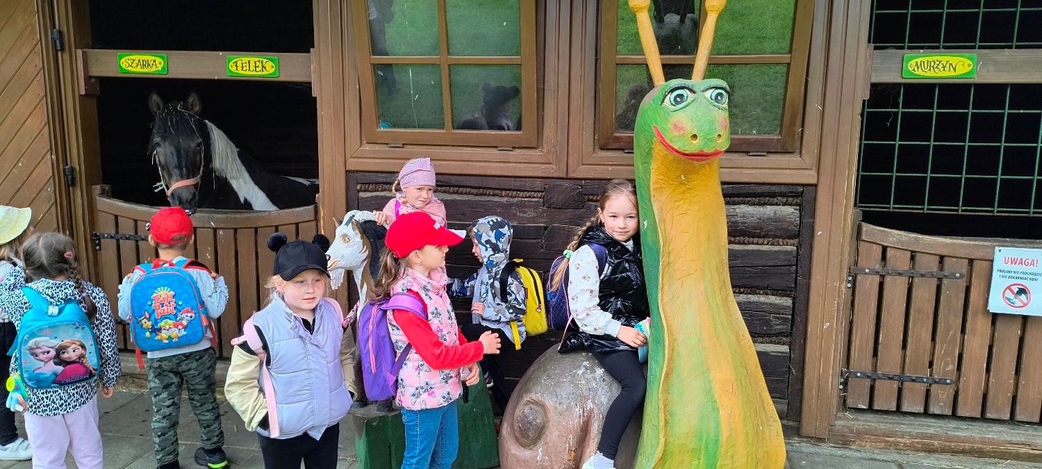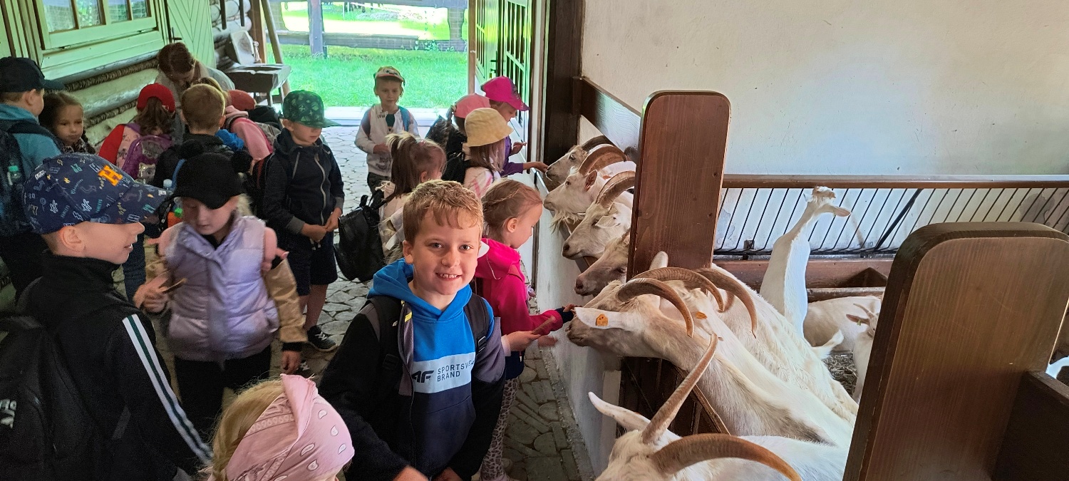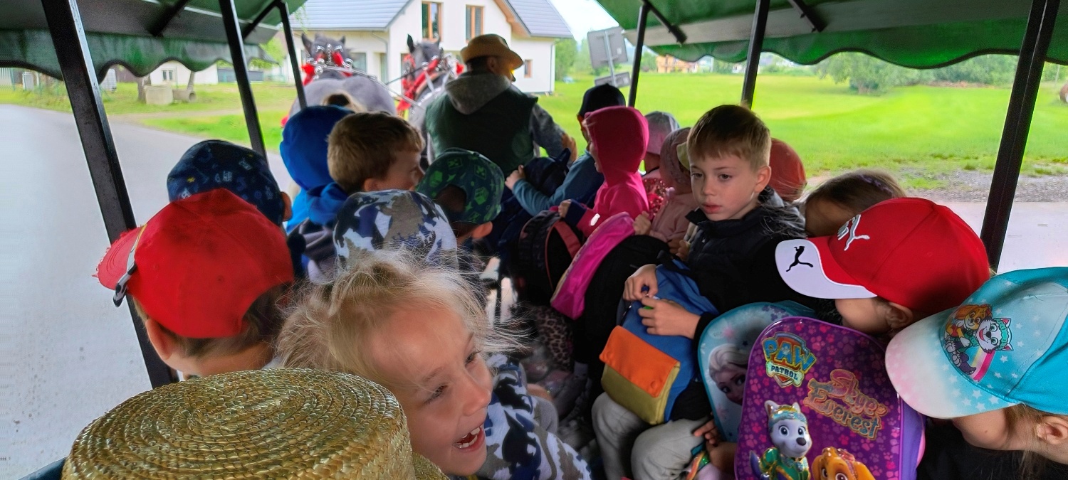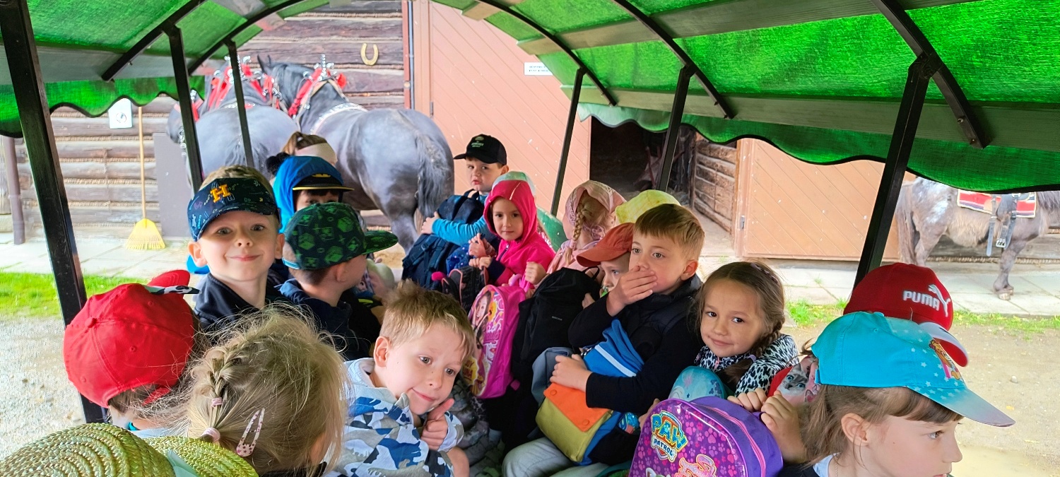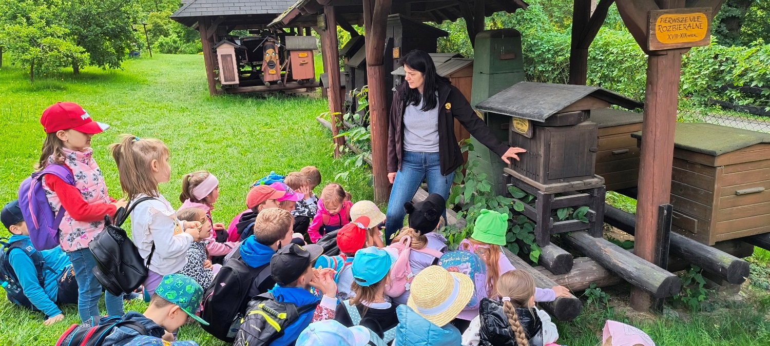 9 maja dzieci z oddziału przedszkolnego „0” udały się na wycieczkę do „Sądeckiego Bartnika” w Stróżach. Tam czekała na nich moc atrakcji! Na początku dzieci odbyły przejażdżkę bryczką konną po najbliższej okolicy, a następnie każdy mógł indywidualnie jeździć na bardzo przyjaznym kucyku. Dla wielu dzieci było to pierwsze spotkanie z konikami. Następnie przedszkolaki karmiły zwierzęta, które znajdują się na terenie Gospodarstwa Pasiecznego oraz oglądały ciekawe okazy domowego ptactwa. Dużą atrakcją było karmienie olbrzymiego stada kóz. Dzieci miały także możliwość skosztowania pysznego sera koziego. Kolejno przedszkolaki obejrzały ciekawy teatrzyk, w którym przybliżono życie pszczół, a następie udały się na spacer z przewodnikiem. Podczas niego przedszkolaki poznały legendę o św. Ambrożym, zobaczyły jak pracują pszczółki oraz kto ma jakie miejsce w ulu, a także miały możliwość zobaczenia uli z dawnych lat. W muzeum została omówiona praca pszczelarza, każdy mógł zobaczyć sprzęty jakimi się on posługuje oraz dowiedzieć się wielu ciekawostek na temat miodu i pszczół. Kolejnym punktem były zakupy pamiątek i miodowych słodkości w sklepiku, a na koniec przyszedł czas na zasłużoną zabawę na placu zabaw. Dzieci pełne nowych wrażeń i doznań wróciły do przedszkola. Polecamy każdemu odwiedzenie „Sądeckiego Bartnika”, bowiem można tam miło, przyjemnie i aktywnie spędzić czas.