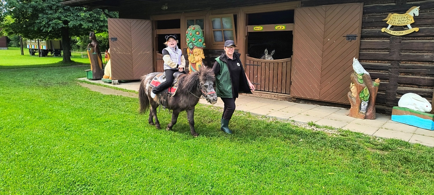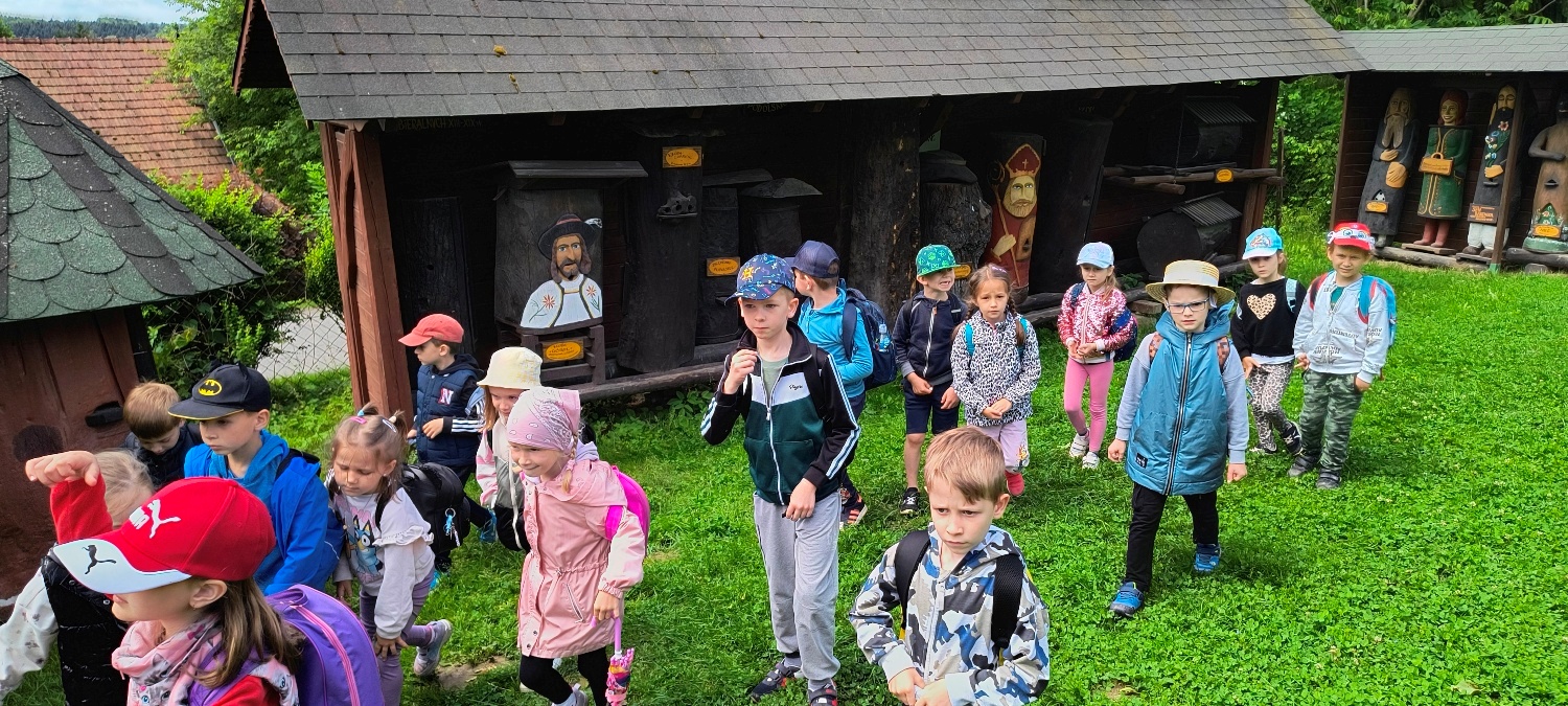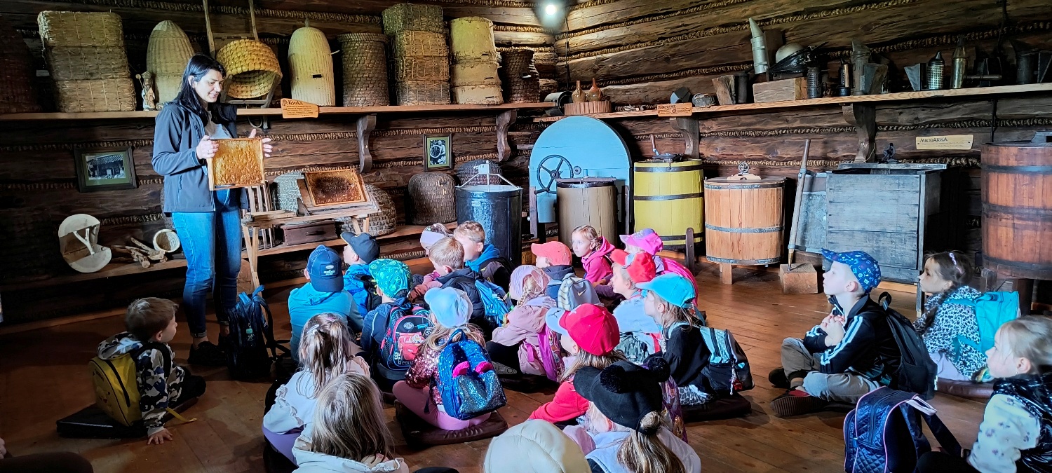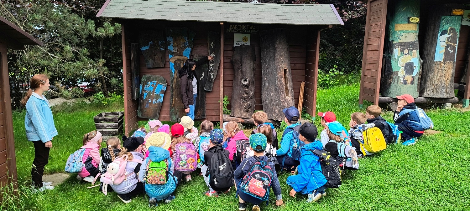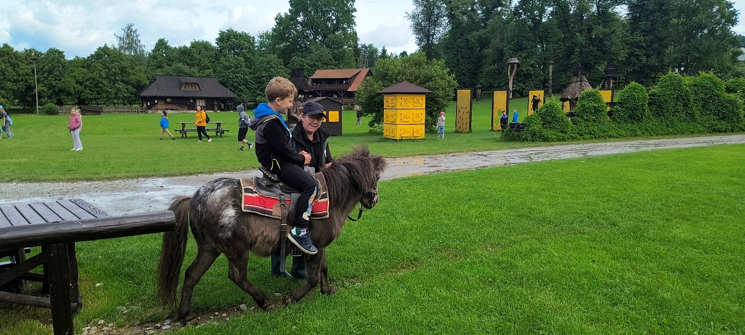 9 maja dzieci z oddziału przedszkolnego „0” udały się na wycieczkę do „Sądeckiego Bartnika” w Stróżach. Tam czekała na nich moc atrakcji! Na początku dzieci odbyły przejażdżkę bryczką konną po najbliższej okolicy, a następnie każdy mógł indywidualnie jeździć na bardzo przyjaznym kucyku. Dla wielu dzieci było to pierwsze spotkanie z konikami. Następnie przedszkolaki karmiły zwierzęta, które znajdują się na terenie Gospodarstwa Pasiecznego oraz oglądały ciekawe okazy domowego ptactwa. Dużą atrakcją było karmienie olbrzymiego stada kóz. Dzieci miały także możliwość skosztowania pysznego sera koziego. Kolejno przedszkolaki obejrzały ciekawy teatrzyk, w którym przybliżono życie pszczół, a następie udały się na spacer z przewodnikiem. Podczas niego przedszkolaki poznały legendę o św. Ambrożym, zobaczyły jak pracują pszczółki oraz kto ma jakie miejsce w ulu, a także miały możliwość zobaczenia uli z dawnych lat. W muzeum została omówiona praca pszczelarza, każdy mógł zobaczyć sprzęty jakimi się on posługuje oraz dowiedzieć się wielu ciekawostek na temat miodu i pszczół. Kolejnym punktem były zakupy pamiątek i miodowych słodkości w sklepiku, a na koniec przyszedł czas na zasłużoną zabawę na placu zabaw. Dzieci pełne nowych wrażeń i doznań wróciły do przedszkola. Polecamy każdemu odwiedzenie „Sądeckiego Bartnika”, bowiem można tam miło, przyjemnie i aktywnie spędzić czas.