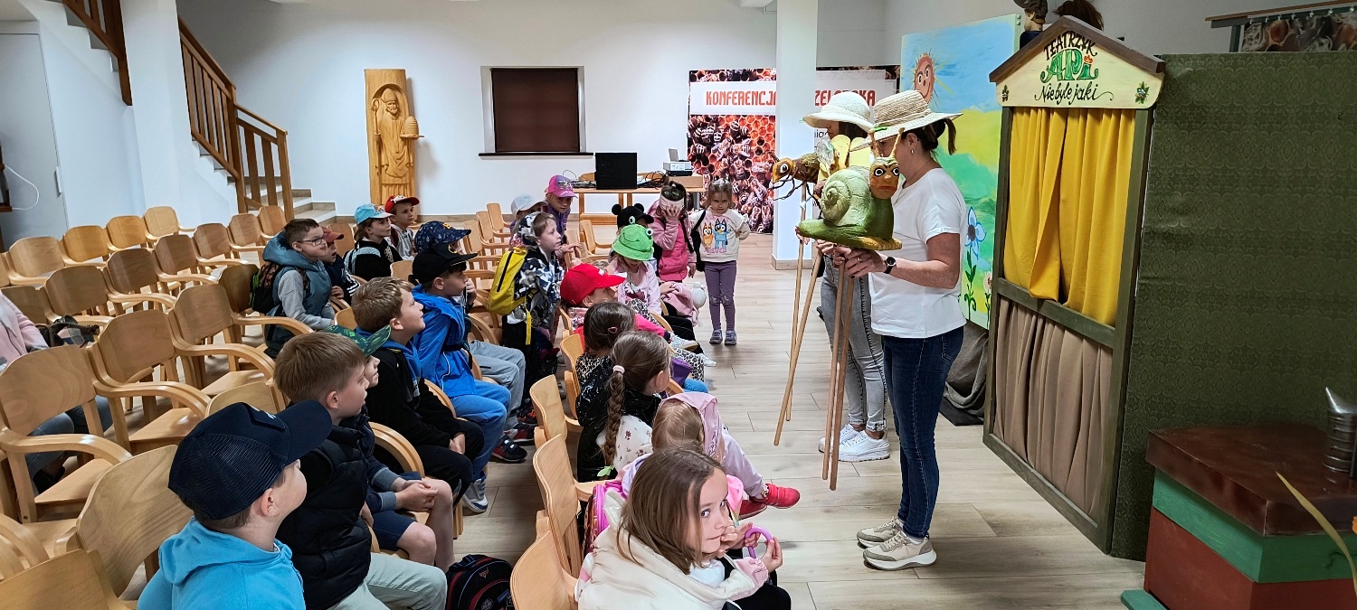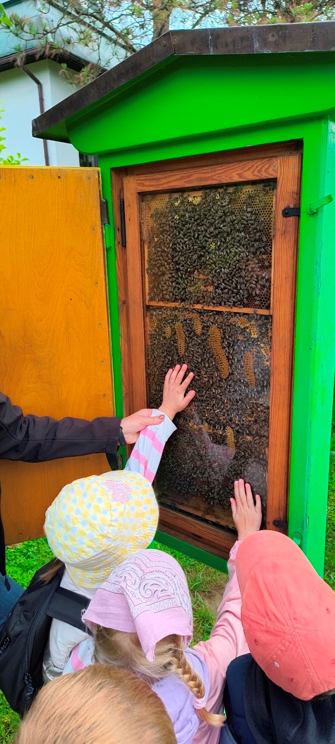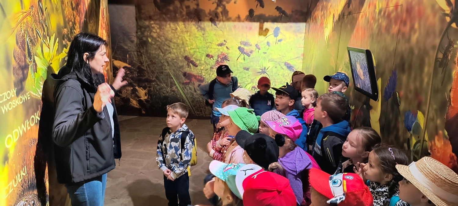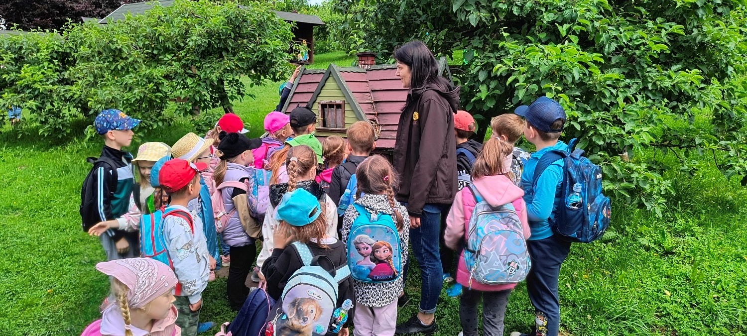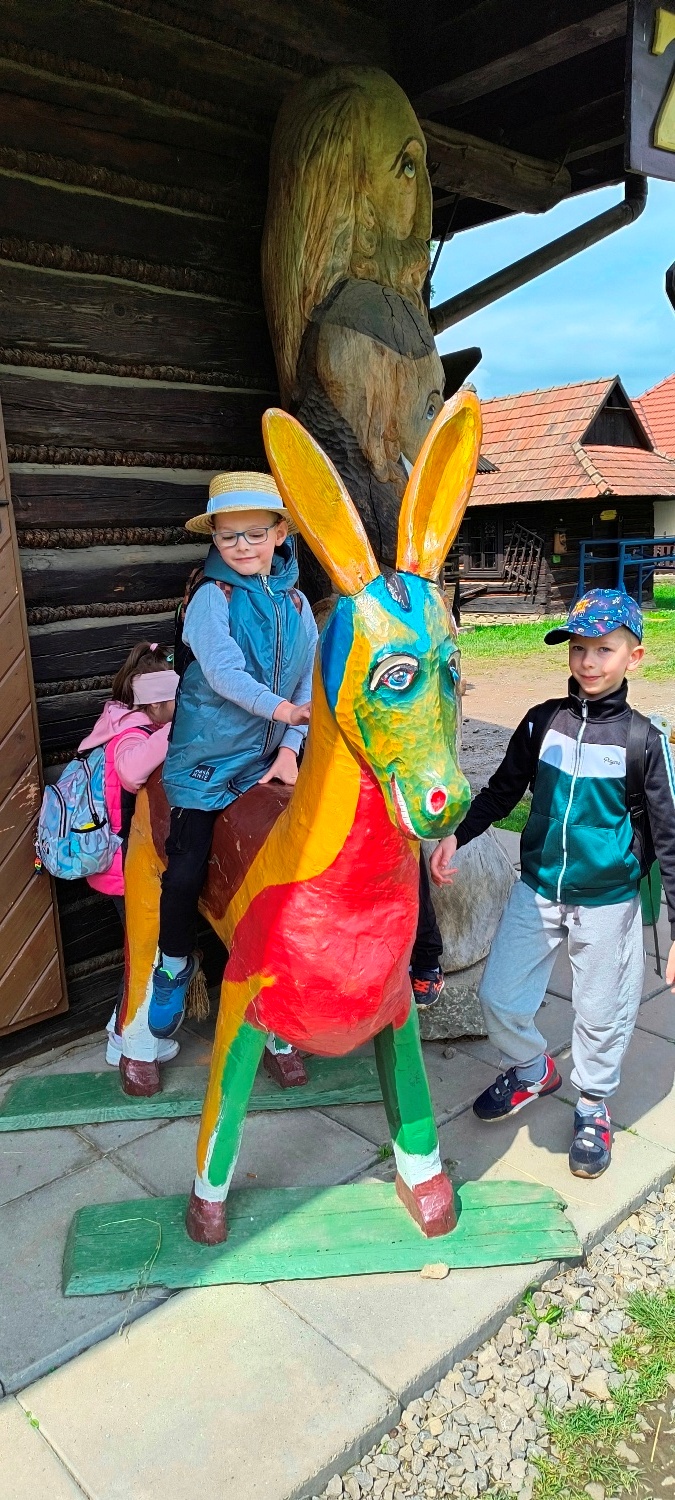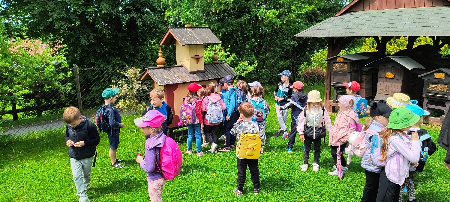 9 maja dzieci z oddziału przedszkolnego „0” udały się na wycieczkę do „Sądeckiego Bartnika” w Stróżach. Tam czekała na nich moc atrakcji! Na początku dzieci odbyły przejażdżkę bryczką konną po najbliższej okolicy, a następnie każdy mógł indywidualnie jeździć na bardzo przyjaznym kucyku. Dla wielu dzieci było to pierwsze spotkanie z konikami. Następnie przedszkolaki karmiły zwierzęta, które znajdują się na terenie Gospodarstwa Pasiecznego oraz oglądały ciekawe okazy domowego ptactwa. Dużą atrakcją było karmienie olbrzymiego stada kóz. Dzieci miały także możliwość skosztowania pysznego sera koziego. Kolejno przedszkolaki obejrzały ciekawy teatrzyk, w którym przybliżono życie pszczół, a następie udały się na spacer z przewodnikiem. Podczas niego przedszkolaki poznały legendę o św. Ambrożym, zobaczyły jak pracują pszczółki oraz kto ma jakie miejsce w ulu, a także miały możliwość zobaczenia uli z dawnych lat. W muzeum została omówiona praca pszczelarza, każdy mógł zobaczyć sprzęty jakimi się on posługuje oraz dowiedzieć się wielu ciekawostek na temat miodu i pszczół. Kolejnym punktem były zakupy pamiątek i miodowych słodkości w sklepiku, a na koniec przyszedł czas na zasłużoną zabawę na placu zabaw. Dzieci pełne nowych wrażeń i doznań wróciły do przedszkola. Polecamy każdemu odwiedzenie „Sądeckiego Bartnika”, bowiem można tam miło, przyjemnie i aktywnie spędzić czas.