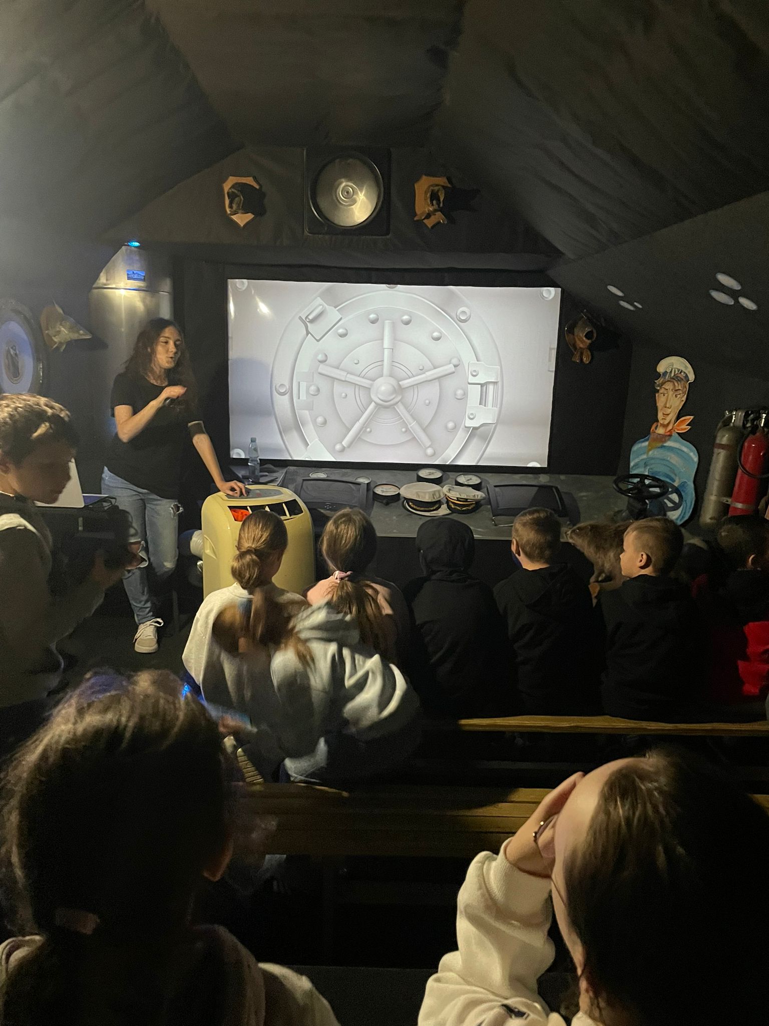Odwiedzili Muzeum Przyrodnicze, które jest ciekawą, nowoczesną, interaktywną formą przekazu informacji na temat gatunków zwierząt i roślin zamieszkujących region Pogórza Karpackiego. Znajduje się tutaj również ekspozycja ornitologiczna, pogórzańska łąka, batystaf, modele dużych drapieżników. Czwartoklasiści wykazali się ogromną wiedzą i zainteresowaniami przyrodniczymi. Chętnie brali udział w doświadczeniach i eksperymentach.