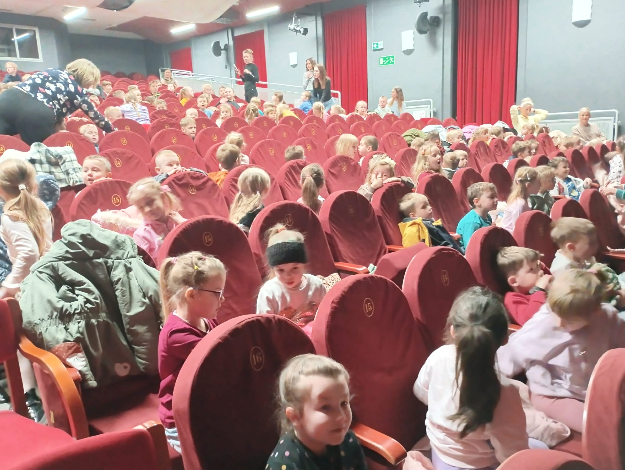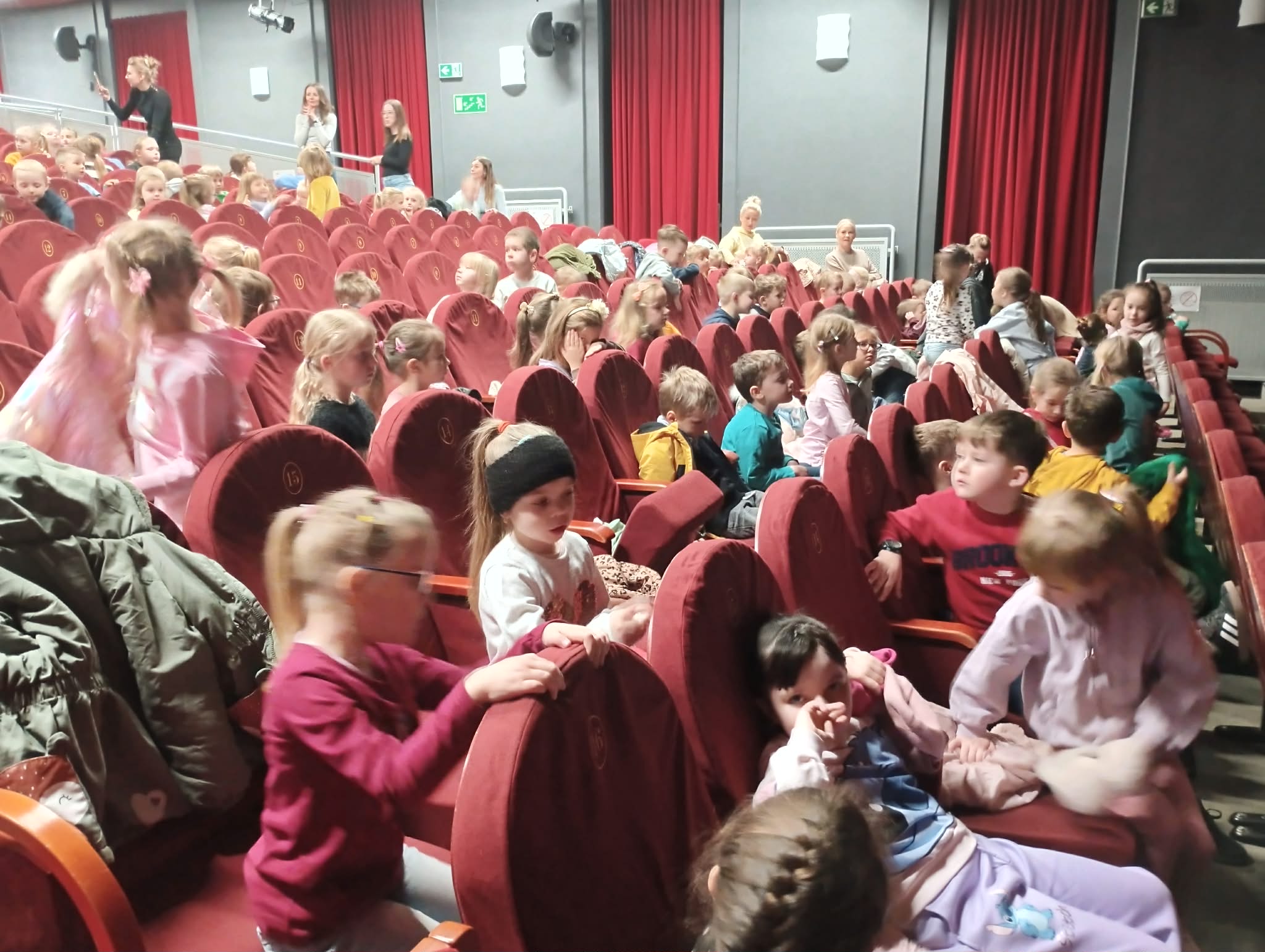26 marca nasze przedszkolaki wybrały się na spektakl teatralny wystawiany przez Katolicki Teatr Edukacji Pokolenie JP2 z Krakowa. Dzieci obejrzały adaptację książki C. Collodi „Pinokio”. Opowieść o lekkomyślnym pajacyku, wystruganym z drewna, który po przeżyciu wielu niezwykłych, często dramatycznych przygód zamienia się w mądrego i gotowego do poświęceń chłopca bardzo spodobała się młodym widzom. Baśniowa opowieść została przepełniona muzyką, piosenkami, humorem i dowcipem. Zarówno starsze jak i młodsze dzieci zaprzyjaźniły się z drewnianym pajacem, który jak nikt dotąd poddał próbie swoją lojalność i uczciwość w walce o to, by stać się prawdziwym chłopcem. Przekonał się w końcu, że starszym należy się szacunek, kłamstwo nie popłaca, a miłość czyni cuda. Pełna zabawnych przygód historia Pinokia z pewnością przyniosła naszym przedszkolakom wiele ponadczasowych wartości i nauki oraz niezapomnianych wrażeń.